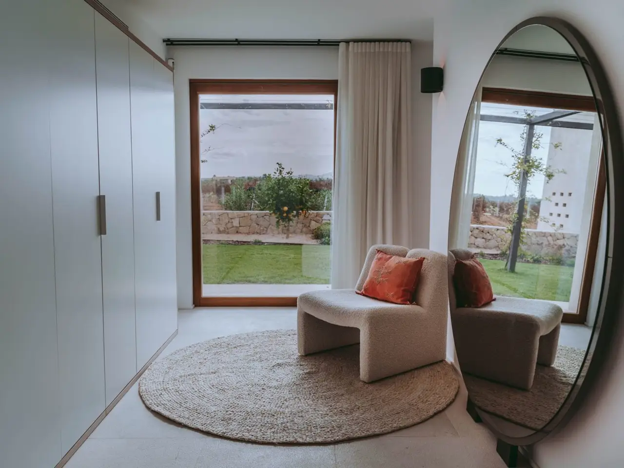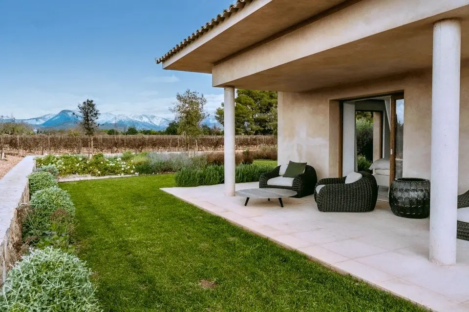 This impressive country estate is currently under construction and is located just five minutes drive from Binissalem and around twenty minutes from Palma, in Mallorca's most famous wine region. The property offers a great location with privacy and panoramic views of the Sierra de Tramuntana and the wine fields. The property features a wine cellar, a spacious living area with high ceilings and beams, a fully equipped kitchen with island, a guest toilet and four spacious bedrooms, each with its own bathroom and fitted wardrobes. The large windows lead outside where you can enjoy the saltwater pool and the various terraces, some of which are covered and all facing different directions to take advantage of the sun at any time of the day. The property includes a private well, water tanks, an air heat system, solar panels, home automation controls, electricity supply, an automatic pool cleaning system and an alarm system. The landscaping and traditional stone wall give the property a welcoming atmosphere. A unique opportunity for wine lovers to purchase this special estate.