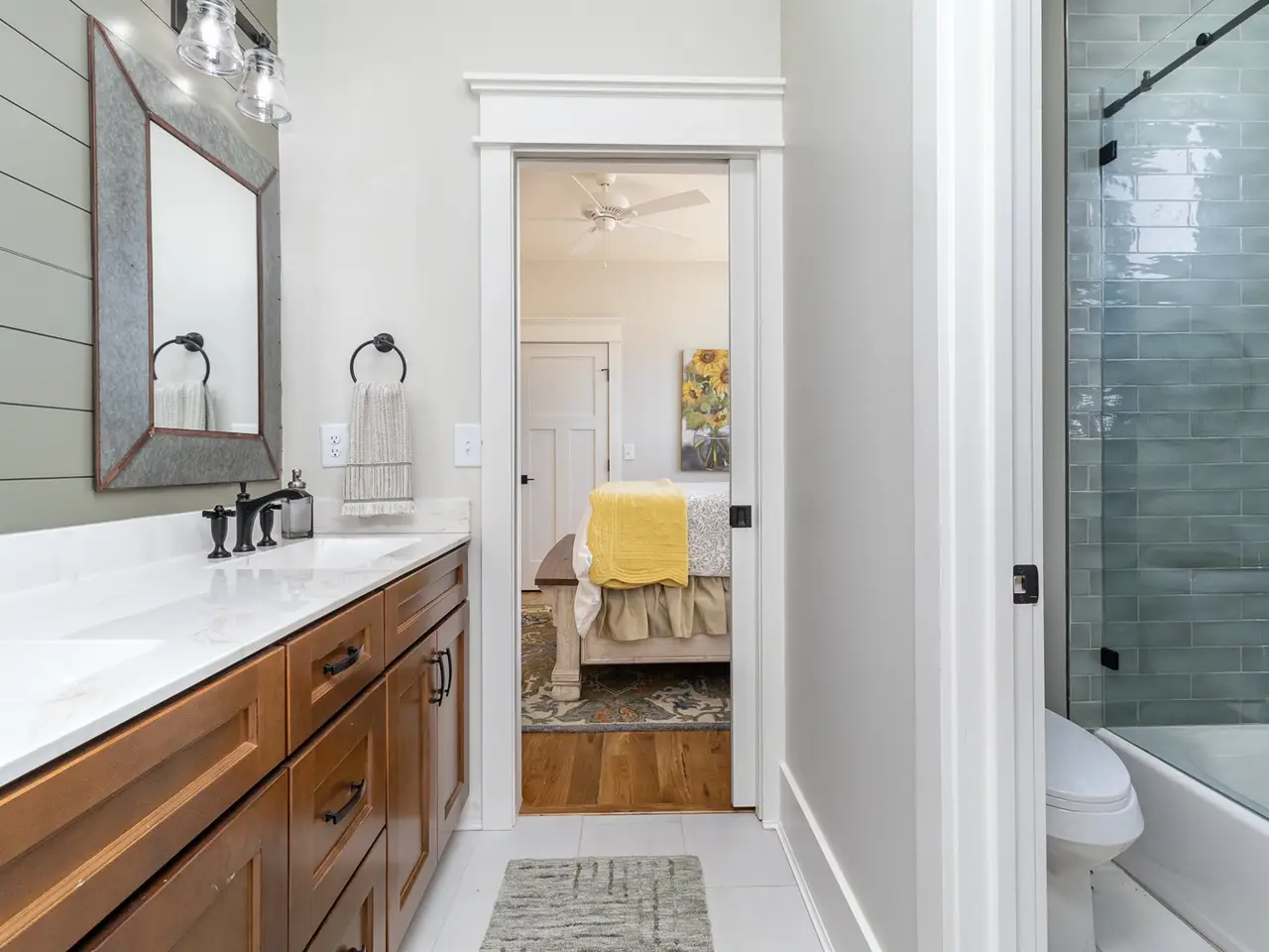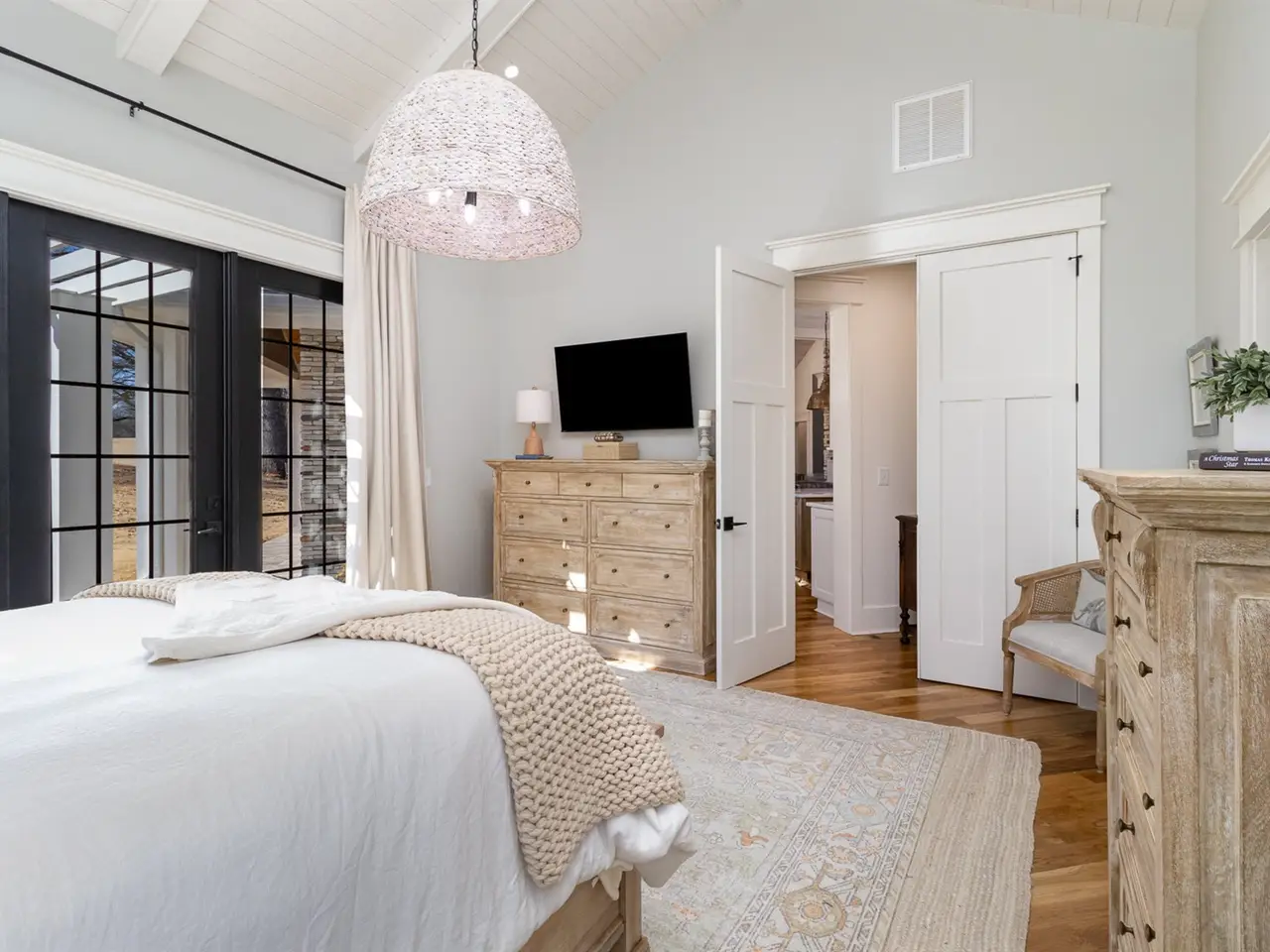 Exquisite Golf Course Estate with Unrivaled Views and Refined Luxury. Discover the pinnacle of luxury living in this nearly-new masterpiece, perfectly positioned on the 7th green of a celebrated Pete Dye-designed golf course. This remarkable home showcases front-facing views of the serene pond on the 8th hole and sweeping fairway vistas from the rear, offering a truly breathtaking backdrop from every angle. Designed for those who appreciate elegance and lifestyle, this sophisticated residence features 4 expansive bedrooms, 3.5 impeccably designed bathrooms, and a flexible second-floor bonus room perfect for a media space, home office, or guest retreat. The luxurious primary suite is a private oasis, where panoramic golf course views, a spa-inspired bath, and a custom walk-in closet with pass-through access to the laundry room combine for everyday indulgence. At the heart of the home, a chef's kitchen awaits - crafted to impress with gleaming white quartz countertops, a designer farm sink, and a tasteful blend of natural wood and white cabinetry. Vaulted tongue-and-groove ceilings elevate the open-concept living area, creating a warm yet airy ambiance ideal for entertaining or relaxing in style. Seamlessly blending indoor elegance with outdoor charm, this home offers multiple gathering spaces. Savor your morning coffee on the spacious front porch as the sun rises over the pond, or host unforgettable evenings on the covered back patio, complete with a dramatic stone wood-burning fireplace - perfect for intimate dinners or festive celebrations. Exceptional Features Include: A spacious three-car garage with soaring ceilings and a built-in indoor basketball court Meticulous craftsmanship and high-end finishes throughout ALL FURNISHINGS NEGOTIABLE with an accepted offer, offering a turnkey opportunity for the discerning buyer This is more than a home? - t's an invitation to experience a lifestyle of serenity, sophistication, and recreational elegance. With every detail thoughtfully curated, this golf course estate redefines luxury living.