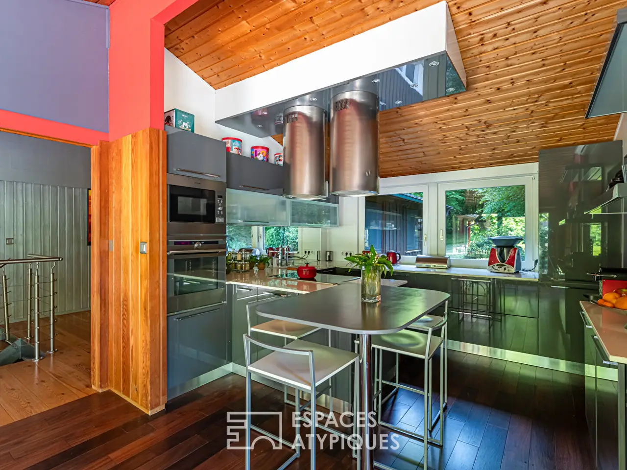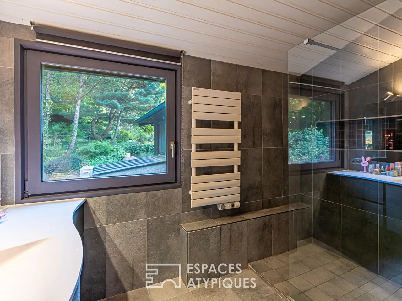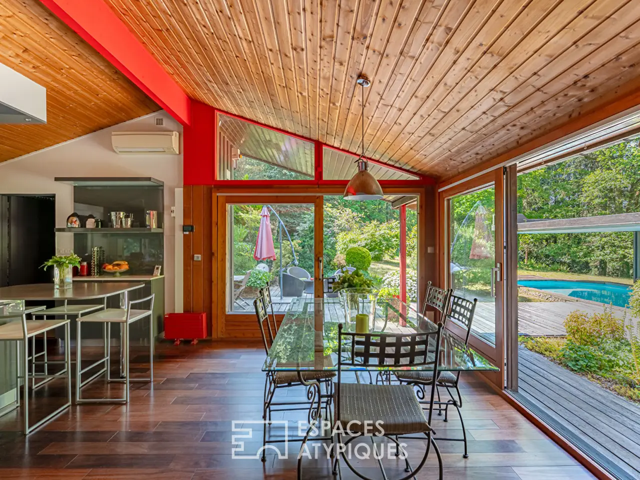 A stone's throw from Dampierre in Yvelines, in the Chevreuse Valley, this superb contemporary wooden house, fully renovated, welcomes you in an idyllic setting. Nestled on a wooded plot of 7040 sqm, in the heart of the Yvelines countryside, this property of approximately 284 sqm offers a generous volume and a remarkable natural environment. Behind the gate, a long driveway leads to the house, with several parking spaces available. On the garden level, a large entrance hall is organized around a bedroom, a shower room, a toilet, a home cinema, a multipurpose room ideal for an office or independent profession, a sauna, a shoe closet, a storeroom and a technical room and a double garage. The main level includes a large fitted kitchen with a central island, a dining area and a welcoming living room with a fireplace, bathed in light thanks to large bay windows offering a 360° view of the garden and opening onto the superb wooden terrace. The master bedroom consists of a dressing room, a bathroom with shower/hammam and a bathtub. Two other bedrooms with a bathroom, Italian shower and suspended toilet complete this level. Outside, a covered wooden swimming pool heated by a heat pump prolongs the pleasures. An 18 sqm workshop, a 24 sqm cellar, an outdoor garage for one car, a technical room and a woodshed complete this rare property. Technical: Electric heating (electric radiators on the ground floor and reversible air conditioning on the 1st level and electric radiators) Nursery school 2 km away / Primary school in the center of Bourg (400m) / Middle school 5 km away RER B station St Remy les Chevreuse 15 min towards Paris Transilien station 10 km Main roads, forests Shops in Cernay la Ville (supermarket, bakery, pastry shop, butchers, restaurants) Energy class D 214 Climate class B7 / Estimated average amount of annual energy expenditure for standard use, established from 2021 prices: EUR3,865 and EUR5,229 REF. 11037 Additional information * 7 rooms * 4 bedrooms * 1 bathroom * 2 shower rooms * Outdoor space : 7040 SQM * Parking : 5 parking spaces * Property tax : 2 872 € Energy Performance Certificate Primary energy consumption d : 214 kWh/m2.year High performance housing