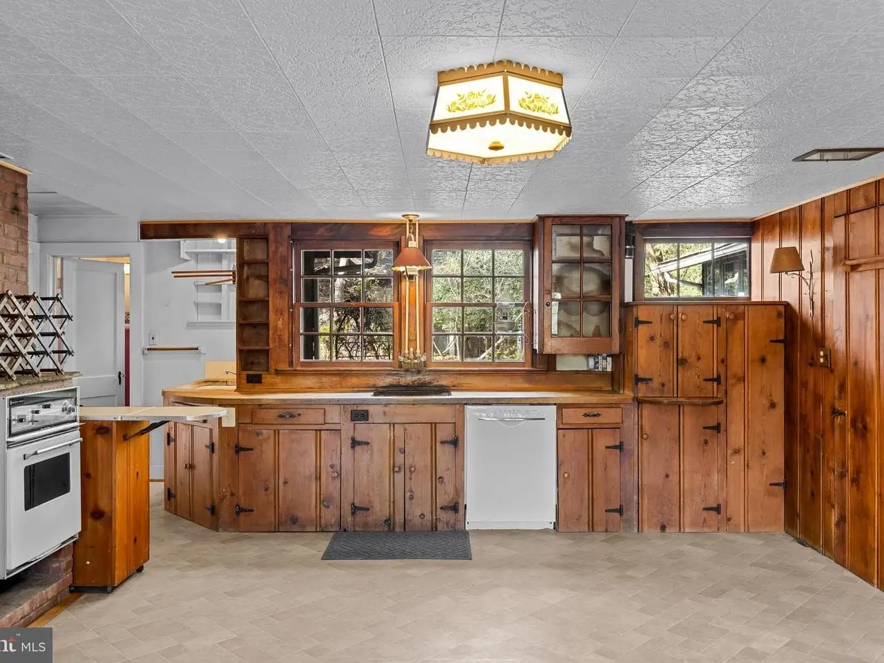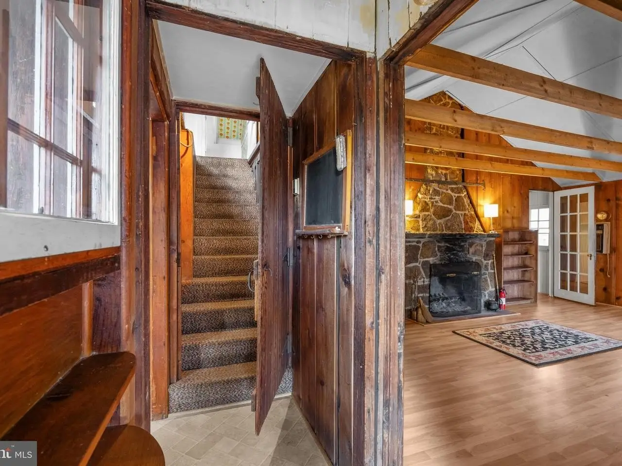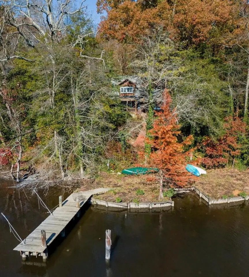*WELCOME TO HOPTOAD HOUSE* a charming and unique waterfront home brimming with unmatched charm, character and available for the first time in over 4 decades. This stunning property offers a perfect blend of classic and contemporary features, making it an ideal haven for those seeking a cozy and inviting retreat. The main level boasts a large eat-in kitchen, complete with butcher block counters, an antique coal stove, and knotty pine cabinets, providing a warm and rustic feel. The formal dining room with a brick fireplace is a highlight, featuring a dramatic six-foot circular window framed into a custom, handcrafted wood accent wall, creating a stunning architectural focal point that showcases exceptional craftmanship and timeless design. The spacious family room, with its fireplace and built-in bookcases, provides a perfect spot for relaxation. Adjacent to the family room is a bright sunroom that leads to a large deck, partially covered, perfect for outdoor entertaining. This level also includes two charming bedrooms. The owners suite offers a sitting room and a spacious closet. The other bedroom features a cozy fireplace and a custom built-in canopy bed, adding an extra touch of uniqueness. Additionally, there is one full and one-half bath on this floor, ensuring convenience for residents and guests alike. The upper level has two separate sections that do not connect, ensuring privacy and separation between the different areas. This thoughtful design enhances the functionality of the space and provides distinct areas for different needs and guests. In one section, you'll find two bedrooms and a full bath, providing ample space for family and guests. Additionally, in the second area you will find a in-law suite with 2-bedrooms a full bath, cozy kitchen complete with stove, refrigerator, sink and ample storage space. This suite has a separate entrance from inside the home and another exit that leads down a stairwell outside the home, offering privacy and flexibility for extended family or guests. The outdoor space of HopToad House is just as impressive. The property includes a pier with electric nearby and a brick-paved patio area near the water, which can easily be transformed into an outdoor kitchen. Brick walkways wind around the house, adding to its charm. A small boat ramp leads to double doors that open into the unfinished basement, which houses a woodburning fireplace and a storage room that could be a wine cellar-perfect for future customization and expansion. A very large detached garage with electric provides endless possibilities for the car or boat buff. The upper level of the garage provides ample space for an artist's studio, workspace, or flex space, catering to various needs and activities. According to an old newspaper article, the previous owner built a 37-foot sailboat in this garage, showcasing its impressive size and versatility. HopToad House is not just a home; it's a lifestyle. With its distinctive features and prime waterfront location, it offers endless possibilities for comfortable living and entertaining. Don't miss the chance to own this one-of-a-kind property. This charming and amazing home is waiting for someone to give it the love and TLC it needs and bring it back to its former glory. Schedule your visit today and experience all that HopToad House has to offer! Home sold As Is. Amount of Waterfront feet was obtained from plat. Buyer to verify all information PUBLIC WATER AND SEWER RECENTLY HOOKED UP! IMPORTANT-DO NOT DRIVE ON OR ENTER PROPERTY WITHOUT PERMISSION!! YOU CAN NOT SEE THE HOUSE FROM THE ROAD. DO NOT ENTER WITH OUT A REALTOR AND YOUR REALTOR SCHEDULING AN APPOINTMENT. NO SIGN ON PROPERTY