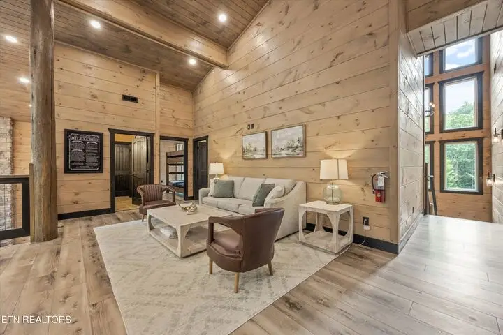 Discover your perfect creek side mountain retreat. Stunning two-story Modern new construction home. Located just moments from the parkway, this property offers convenient access to Sevierville, Pigeon Forge, Gatlinburg, and the world-renowned Dollywood, making it ideal for both full-time living and vacation getaways. Key Features: •Spacious Living: 4,350 Sq' 4 well-appointed bedrooms and 4 full bathrooms provide ample space and comfort for family and guests. . Comfortable accommodations: the home is designed to sleep 16 to 18 guests comfortably perfect for large families or vacation rental. •Entertainment Paradise: Enjoy movie nights in your private theater room, perfect for creating unforgettable experiences. An indoor pool allows for year round enjoyment. •Chef's Dream Kitchen: An oversized kitchen with modern appliances and abundant counter space ensures cooking and entertaining are a joy. •Cozy Ambiance: Gather around the inviting fireplace that serves as the focal point of the main living area. •Natural Beauty: A serene creek borders the subdivision, offering a peaceful outdoor experience and beautiful views and walking trails. •Low Maintenance: Built with durable hand hewn looking concrete siding. This home ensures easy upkeep for years to come. This property seamlessly combines luxury, convenience, and natural beauty. Don't miss this opportunity to make it your own and enjoy all that the Smoky Mountain area has to offer!