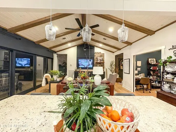 Stunning Custom Home on 5 Private Wooded Acres in Irwin Acres Subdivision Tucked away in the peaceful and highly sought-after Irwin Acres Subdivision, this beautifully crafted 4-bedroom, 3-bath home offers the perfect balance of luxury, comfort, and privacy. Set on 5 wooded acres, this property provides a serene, secluded setting with exceptional attention to detail throughout. From the moment you arrive, quality construction and thoughtful design are evident. The exterior showcases a blend of brick, stone, and fiber cement siding with board-and-batten, lap, and shingle finishes. Stamped concrete front and back porches feature tongue-and-groove ceilings, and the oversized 3-car garage offers 720 sq. ft. of space with 11-ft ceilings. Inside, vaulted and tray ceilings add architectural interest, accented by tongue-and-groove woodwork and custom beams. The open living area features a built-in entertainment center with a tiled accent wall and upgraded 15-ft sliding French doors that lead to the expanded 20x20 lanai—ideal for relaxing or entertaining. The kitchen is a showstopper, boasting a custom island with seating for four, granite countertops, a built-in coffee bar, porcelain farmhouse sink, pot-filler faucet, tile backsplash, and new Samsung Bespoke refrigerator (2025) along with a built-in drawer microwave. The primary suite offers a tranquil retreat with a shiplap accent wall, custom sliding barn door, two walk-in closets, and a luxurious bath featuring a soaking tub, glass-enclosed tiled shower, and accent vanity wall. Additional highlights include a home office with an antique 1800s mantel and electric fireplace, new hardwood flooring upstairs, and LVP in the primary suite. The finished basement adds even more versatility with a living room and stone accent wall, wet bar, electric fireplace, and a mother-in-law suite with its own private entrance and garage—perfect for guests or potential rental income. Outdoor spaces were designed for relaxation and function, with a wood-fenced side yard, fire pit area, and wood columns crafted from timber harvested on the property. The land even features a natural spring that feeds the neighbor's pond. Additional features include: Gas heating and cooking Two HVAC units for upper and lower levels Zip system sheathing and Advantech subfloor for enhanced durability. This remarkable home combines craftsmanship, comfort, and timeless design in a truly private setting.