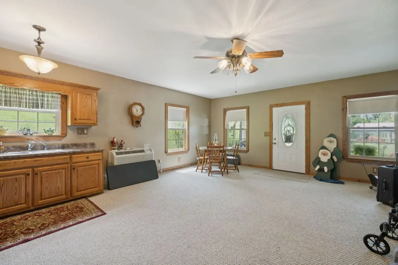 Welcome to your country paradise! Beautiful 18 acre property complete with a natural spring and a pond and 2,800-plus square foot gorgeous brick three bedroom, 2.5 bath home w/Bonus/Rec room on 2nd level, as well as walk-in attic storage or expansion area! This home built in 2014 has covered front and back porches (8x38 and 8x40) to watch the wildlife and enjoy the peaceful serenity, attached two-car garage and detached 24x26 carport on concrete pad. There is also a detached building that houses a 600-plus square foot apartment/guest house, built in 2007, with covered front patio, kitchen (Stove and Refrigerator remain), full bath and combo living/dining/bedroom area attached to a three-car garage/shop w/concrete pad, cabinets, electricity and water! You wind your way from the entrance with an open gate, up the wooded hillside to the property at the top of hill! The main home is mostly on one level with large Owner Suite, spacious open Kitchen/Dining/Eat-In and Living Room w/stacked rock propane fireplace and beautiful finished wood flooring! Kitchen has granite counters, walk-in pantry, counter bar and all kitchen appliances remain (GE Stove, Dishwasher, Microwave and Refrigerator). An outbuilding with lean-to also remains. This home is a wonderful oasis with woods, acreage, pond, natural spring and privacy!