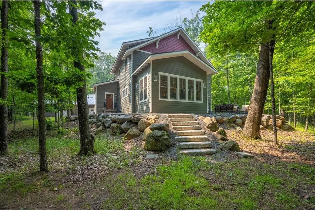 Stunning Craftsman Lake Home on Shell Lake – 150' of Sandy Frontage Discover the perfect blend of timeless design and modern luxury in this exceptional Craftsman-style home, newly built in 2021 and nestled on 1.7 wooded acres with 150 feet of pristine, sandy shoreline on crystal-clear Shell Lake. This exquisite home welcomes you with its charming covered porch, classic gabled rooflines, and rich architectural detail. Inside, every inch showcases thoughtful craftsmanship and premium materials, including custom-built cabinetry, marble and travertine finishes, and top-of-the-line appliances that elevate the gourmet kitchen. Designed for both comfort and style, the open-concept living spaces are filled with natural light and serene wooded views, making it ideal for everyday living or entertaining lakeside. Step outside and enjoy the large, shady backyard — a peaceful retreat that gently slopes toward the lake, creating a perfect setting for outdoor dining, campfires, and easy lake access. Additional features include: Detached garage with ample storage; Unfinished bunkroom above the garage – perfect potential for a guest suite, studio, or rec space. The quiet, wooded setting offering privacy and a true up-north retreat feel. Set on Shell Lake’s 2,580-acre crystal-clear waters, this property is a gateway to year-round recreation. Enjoy swimming, boating, and fishing in the summer, with access to snowmobile and ATV routes connecting to Wisconsin’s extensive trail system in the winter. All just 100 miles from the Twin Cities metro area, making it an easy weekend escape or a full-time haven.