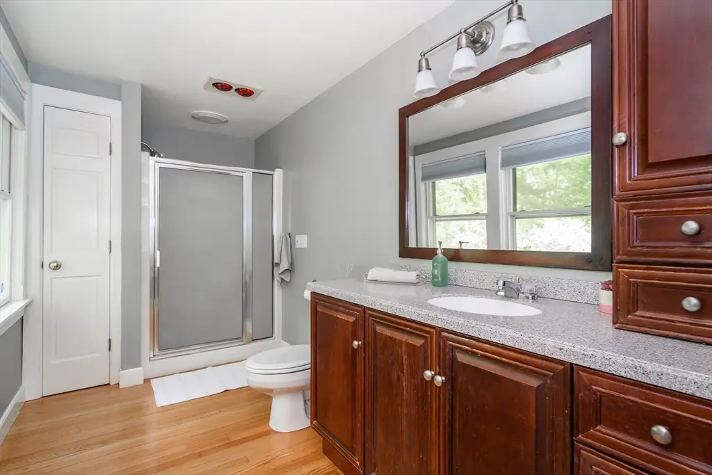 Set on 1.4 acres, this distinctive single-level ranch blends modern updates with a prime Sherborn location. The vaulted kitchen features granite counters, pantry, double ovens, built-in window seat, and china cabinets, opening to the living and dining rooms with fireplace, custom built-ins, and French doors to a spacious deck and patio. The grand primary suite offers vaulted ceilings, double closets, a renovated en-suite bath, French doors to a private office, and slider access to the expansive deck. A renovated powder room and open, flexible layout enhance everyday living. The finished lower level adds a large rec room, office, mudroom, and generous storage. Additional highlights include a two-car garage, newer 4-bedroom septic, and level yard with shed. Convenient to Sherborn Center, Farm Pond, and the townÆs award-winning schools.