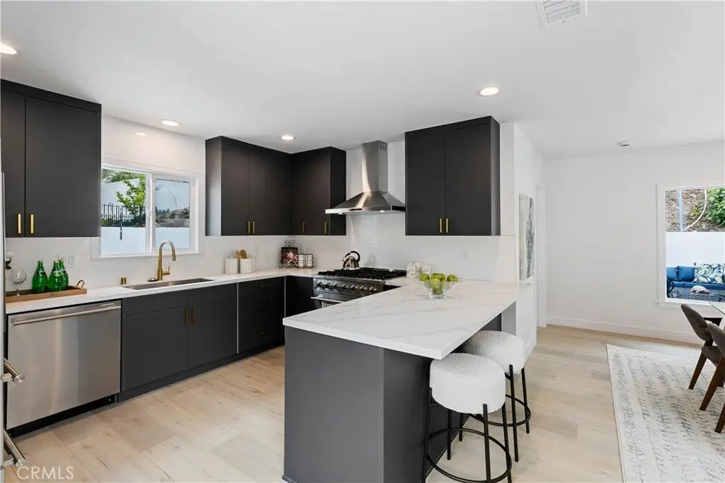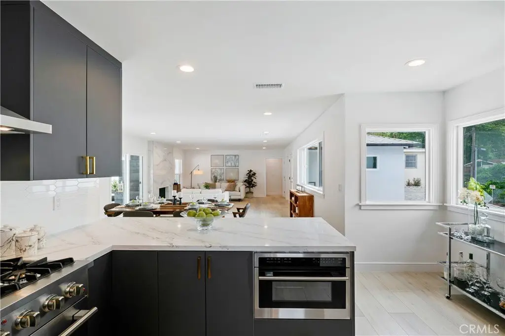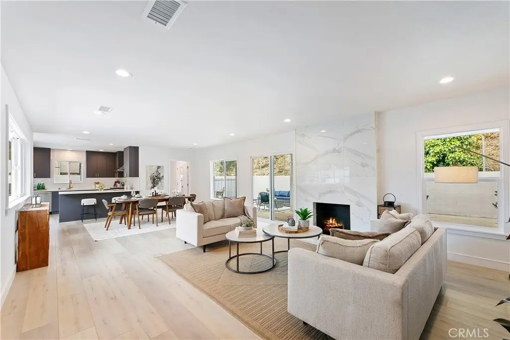 Welcome to your dream home, South of the Boulevard in Sherman Oaks! This beautifully just completed modern residence offers three spacious bedrooms and four luxurious baths, all enhanced by high-end finishes. Step inside to discover an open floor plan adorned with elegant laminate flooring, seamlessly connecting the living, dining, and kitchen areas. The en suite primary bedroom provides a serene retreat with its sophisticated design and ample closet space. Enjoy the convenience of an attached direct entry garage and an oversized circular driveway, making parking a breeze. Relax and entertain in your private oasis featuring a sparkling pool and a cozy fireplace in the living room and outside on the patio. Laundry on the main floor adds to the home's practical charm. Nestled in a walkable neighborhood, you're just moments away from premier shopping and dining options. Plus, with easy access to the 101 freeway, your commute will be a breeze. This stunning home is a perfect blend of modern luxury and everyday convenience. Don't miss out on this exceptional opportunity!