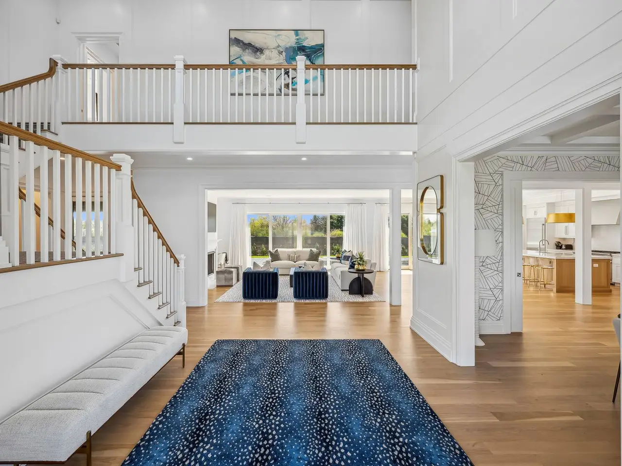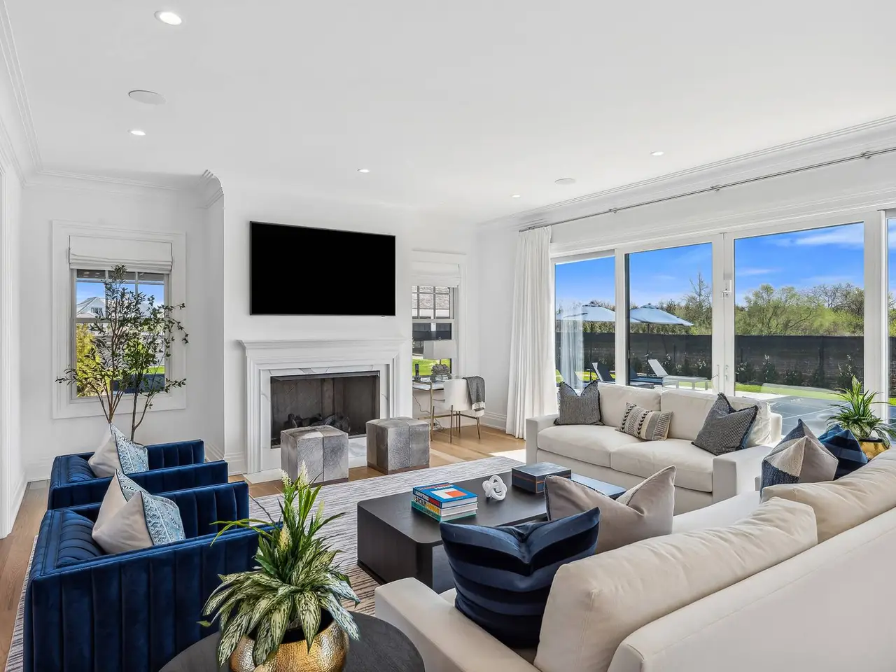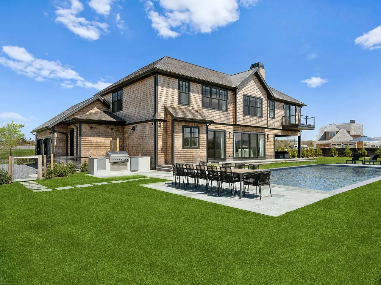RP#240238. This new Southampton rental represents the zenith of the Hamptons lifestyle with a touch of resort-like elegance where every detail signifies the ultimate in custom luxury and sophistication. Conceptualized and decorated by a renowned interior designer, the remarkable brand new 4400 sq.ft , 6 bedroom, 7.5 bath custom transitional home is a true embodiment of Hamptons elegance and timelessness. This gorgeous 3 story haven, offers a luxurious and peaceful living experience. The grand double-height foyer, with its stunning custom lighting installation above floating stairs, welcomes you into a space of opulence. The home's open layout features 10' ceilings and a gas fireplace in the great room, ensuring a warm atmosphere for social events. The custom eat-in kitchen boasts exquisite custom made cabinetry, a center island and high-end appliances alongside a chic formal dining room. The main level also hosts an ensuite junior primary bedroom with a walk-in closet and a double vanity bathroom. The upper floor reveals a lavish primary suite with a private entrance, elegant bath, spacious walk-in closet and balcony, ideal for peaceful mornings or unwinding in the evenings. Three additional ensuite spacious bedrooms and a laundry room complete this floor. The lower level has and additional 2000 sq.ft of living space with a media/living room with ping pong table and bar area, movie theater, powder room, office and gym. Outdoor living is reimagined with a covered porch, with outdoor fireplace and TV, a 50-foot heated gunite pool with a bluestone patio, an outdoor kitchen with a custom grill and an outdoor shower. Residents have access to The Fields community amenities, including tennis courts, a sports court and a 12-acre reserve with a walking trail. This Southampton rental stands as a testament to exceptional craftsmanship and luxurious living. Located near Southampton Village and close to pristine beaches, this home is perfectly positioned for those desiring a Hamptons retreat. Listing ID: 911255