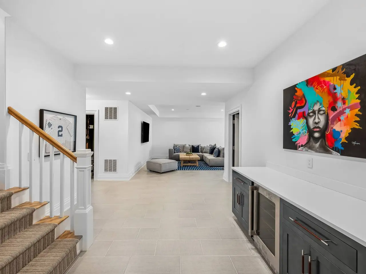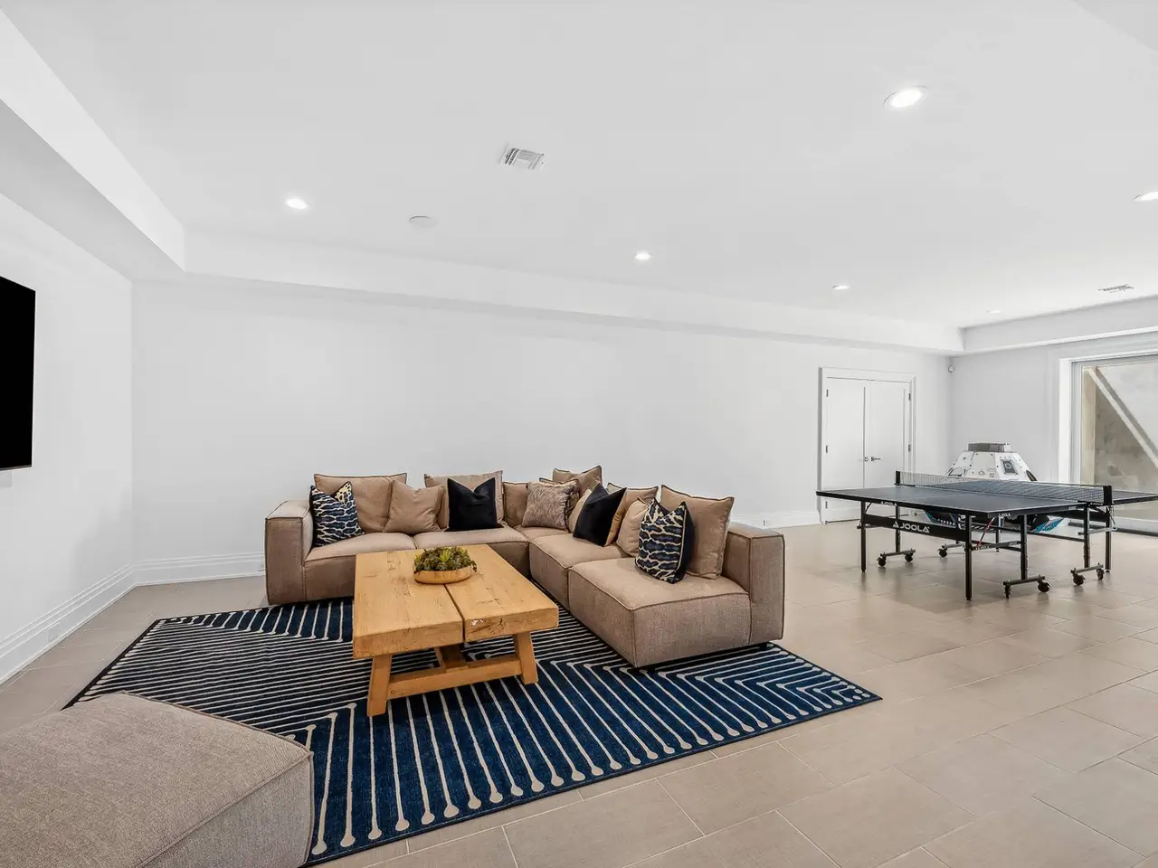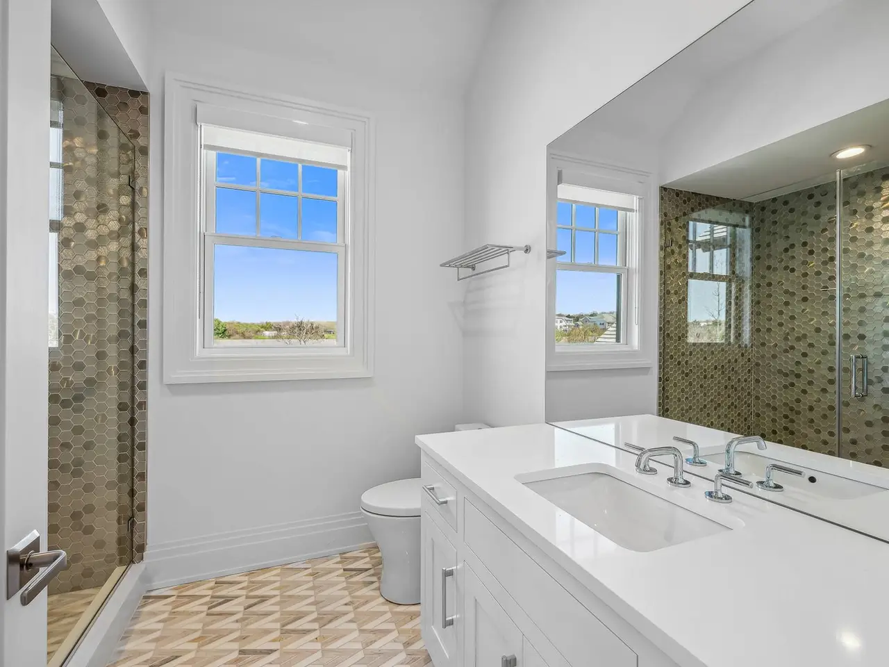RP#240238. This new Southampton rental represents the zenith of the Hamptons lifestyle with a touch of resort-like elegance where every detail signifies the ultimate in custom luxury and sophistication. Conceptualized and decorated by a renowned interior designer, the remarkable brand new 4400 sq.ft , 6 bedroom, 7.5 bath custom transitional home is a true embodiment of Hamptons elegance and timelessness. This gorgeous 3 story haven, offers a luxurious and peaceful living experience. The grand double-height foyer, with its stunning custom lighting installation above floating stairs, welcomes you into a space of opulence. The home's open layout features 10' ceilings and a gas fireplace in the great room, ensuring a warm atmosphere for social events. The custom eat-in kitchen boasts exquisite custom made cabinetry, a center island and high-end appliances alongside a chic formal dining room. The main level also hosts an ensuite junior primary bedroom with a walk-in closet and a double vanity bathroom. The upper floor reveals a lavish primary suite with a private entrance, elegant bath, spacious walk-in closet and balcony, ideal for peaceful mornings or unwinding in the evenings. Three additional ensuite spacious bedrooms and a laundry room complete this floor. The lower level has and additional 2000 sq.ft of living space with a media/living room with ping pong table and bar area, movie theater, powder room, office and gym. Outdoor living is reimagined with a covered porch, with outdoor fireplace and TV, a 50-foot heated gunite pool with a bluestone patio, an outdoor kitchen with a custom grill and an outdoor shower. Residents have access to The Fields community amenities, including tennis courts, a sports court and a 12-acre reserve with a walking trail. This Southampton rental stands as a testament to exceptional craftsmanship and luxurious living. Located near Southampton Village and close to pristine beaches, this home is perfectly positioned for those desiring a Hamptons retreat. Listing ID: 911255