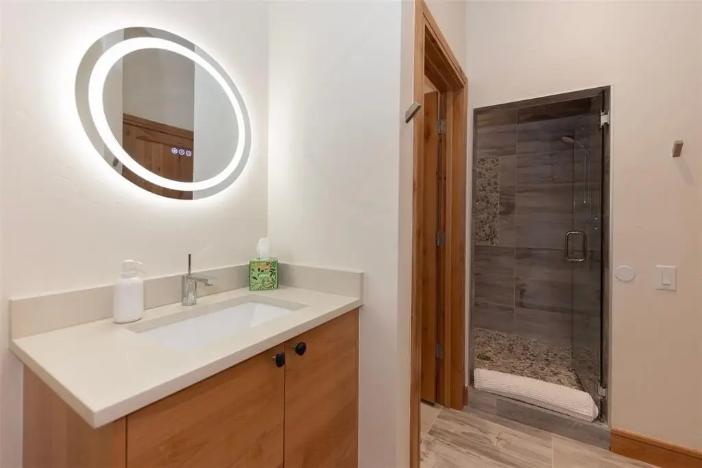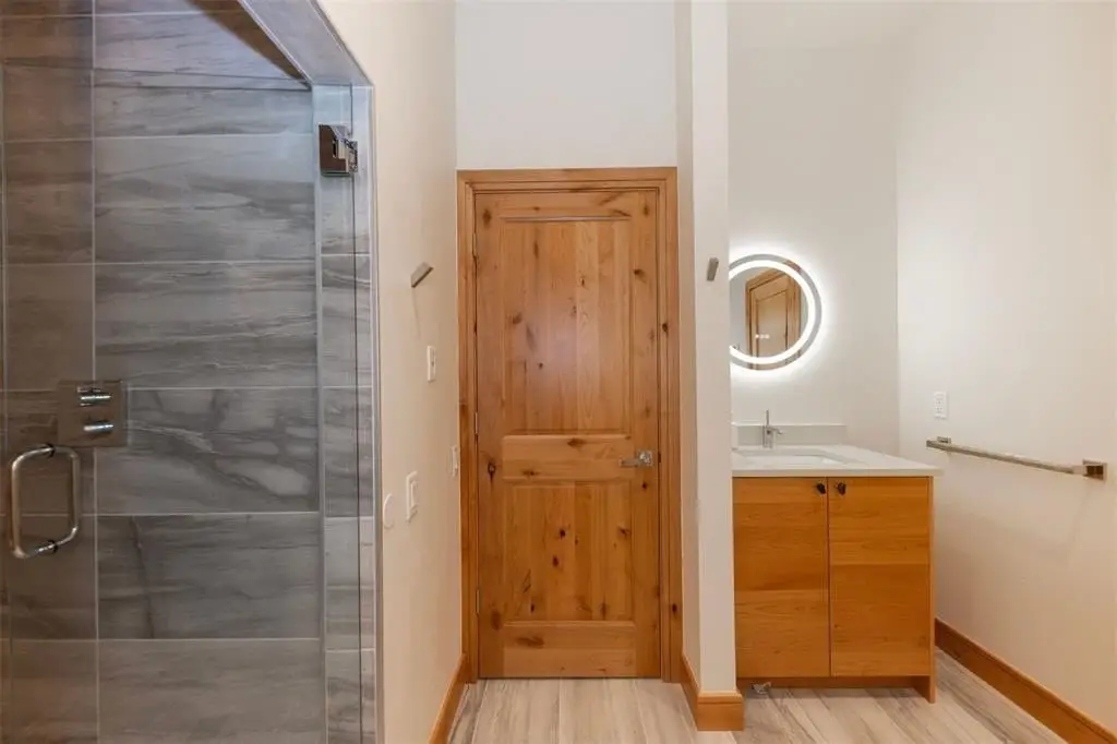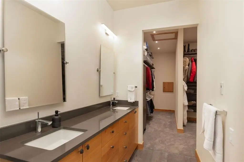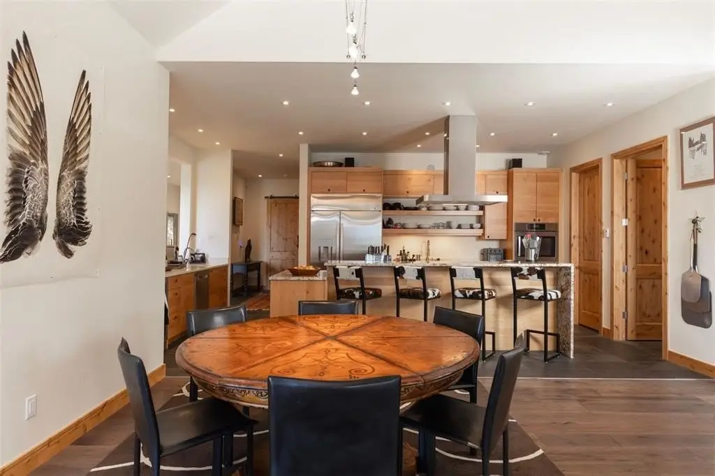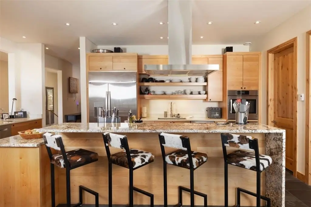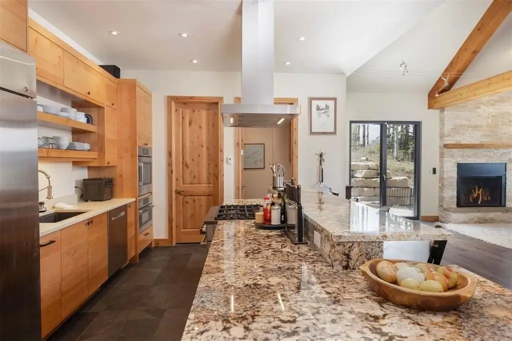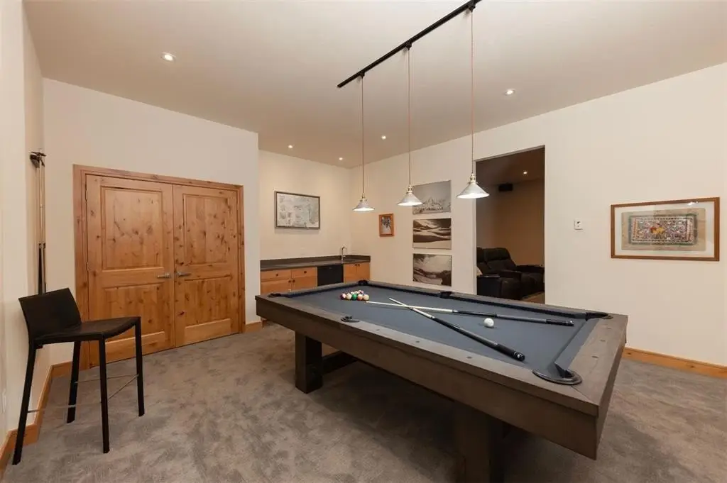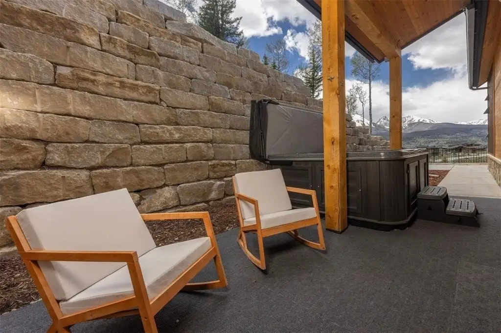 Tucked above Angler Mountain Ranch and backed by forested open space, this custom Silverthorne home offers privacy, soaring Gore Range views, and a smart mix of modern design with mountain character. Stunning Douglas fir beams and the large windows bring the outdoors inside, while an 8.6 kW owned solar array, triple-pane European windows, and high-performance thermal upgrades keep the home comfortable and efficient through all seasons. The cook's kitchen is built for real living and entertaining—featuring Bosch and GE Café appliances, dual ovens, two dishwashers, wine fridge, and a wet bar with extra beverage storage. The kitchen overlooks the vaulted great room and out through a folding glass wall onto a west-facing covered deck, where you can soak in sunset views after a day exploring Summit County in any season. Downstairs is a space to unwind and gather, with a home theater equipped with stadium seating recliners, pool table, a second wet bar for convenience, and private bedrooms that offer quiet spots for friends and family. This home is loaded with smart home technology to include whole-house automation, security, and a zoned sound system with controls in every room. The oversized 4 car garage has room for a workshop or extra gear — ready for whatever mountain adventures come your way. Functional, efficient, and built for mountain life—this home offers space, comfort, and a connection to the outdoors.