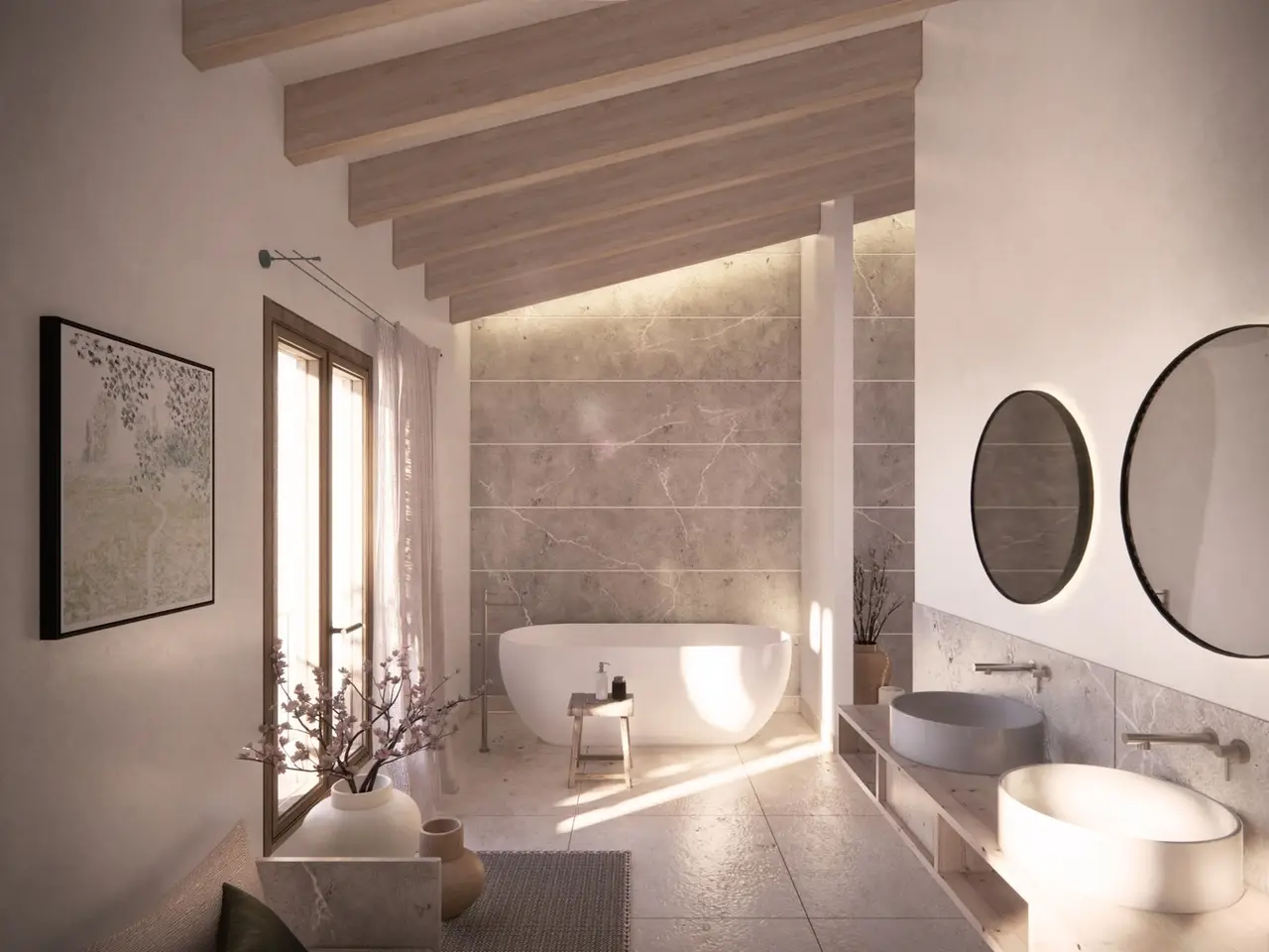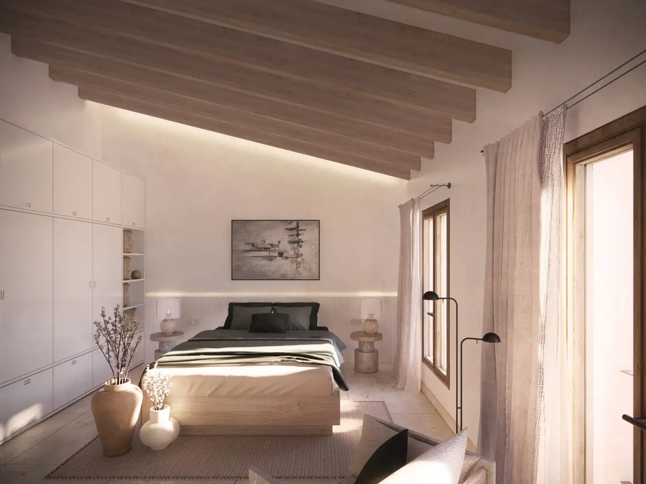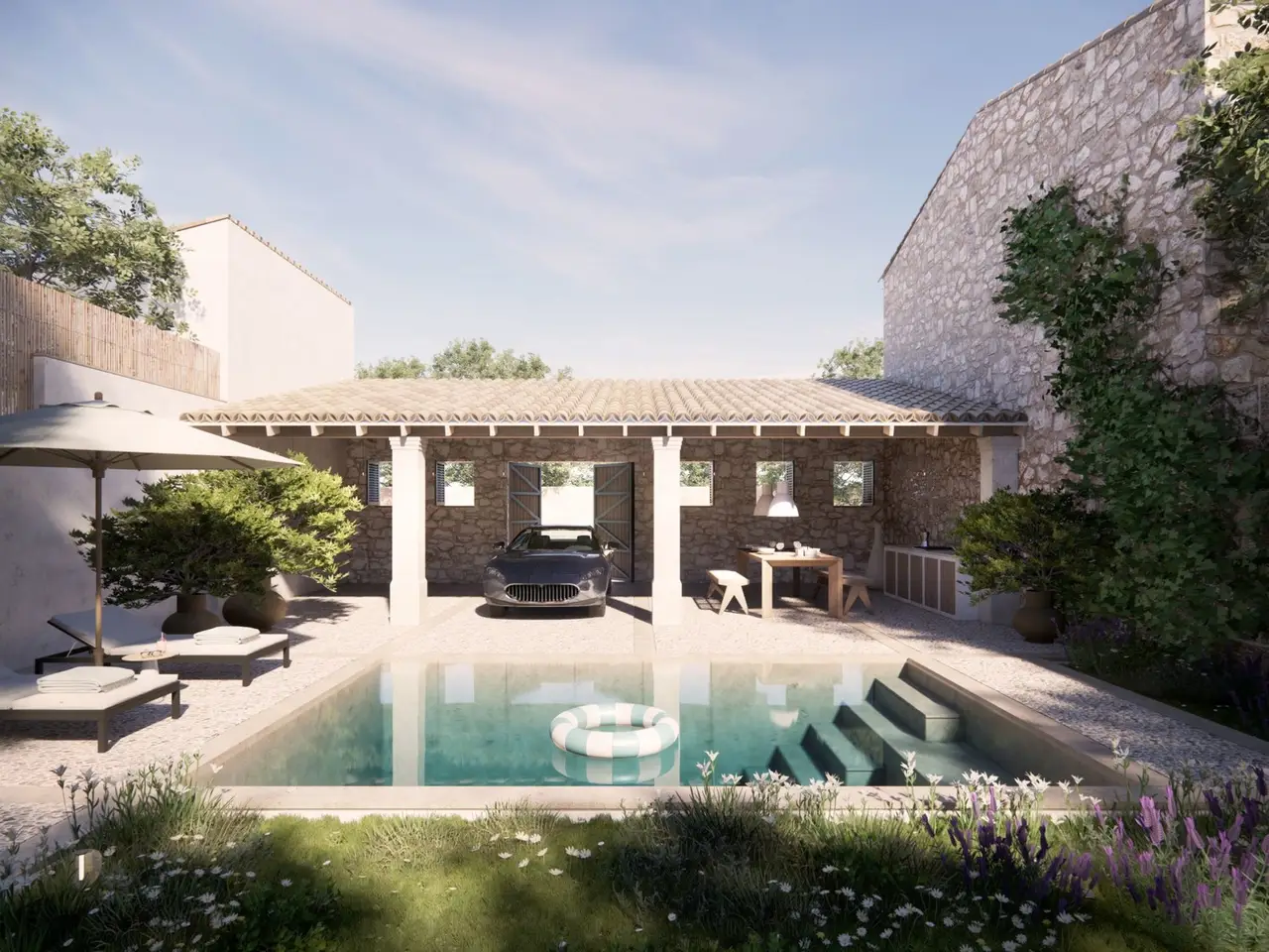 The fully renovated townhouse in Sineu on Mallorca offers modern, upscale living comfort on approx. 215 m² of living space and a plot of approx. 309 m². With three bedrooms and three bathrooms, it is ideal for families or couples looking for a stylish property in a central location. The house impresses with high-quality fittings and is being completely modernized. Underfloor heating provides cozy warmth, while air conditioning ensures pleasant coolness in summer. The pool in the garden invites you to relax and the garage offers enough space for vehicles. The easy accessibility of Playa de Muro and Palma makes the location particularly attractive. There is also the option of building an optional studio, ideal as a home office or guest room. Overall, the property offers a modern and stylish living experience. The high-quality fittings and good room layout make the townhouse suitable for both families and couples. Arrange a viewing today and see for yourself the advantages of this inviting property. Position Sineu, a picturesque village in the centre of Mallorca, enchants with its rich history, cultural diversity and idyllic landscapes. Known for its traditional charm and lively weekly market, Sineu is an attractive location for property buyers seeking authenticity and tranquillity. The centrepiece of Sineu is the impressive parish church of Santa Maria, which towers over the village. The weekly market, which takes place on Wednesdays, is one of the oldest in Mallorca. Here, local farmers offer fresh produce, handicrafts and culinary specialities, giving the village a lively atmosphere. For sports enthusiasts, Sineu offers numerous options. The surrounding rural paths and hills are ideal for walking and cycling. Sineu also offers cultural attractions such as the Convento de las Monjas monastery, which has a rich history and architectural beauty. The village museum, housed in the old hospital, offers insights into local history and traditions. Sineu's central location means that the island's most beautiful beaches and the vibrant capital of Palma can be reached in less than 30 minutes.