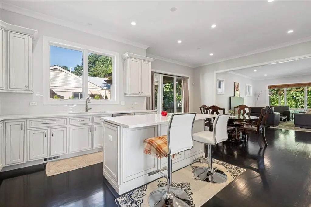 This immaculate 5 bedroom, 4.1 bath residence is perfectly set on a large corner lot at the end of a quiet, tree-lined street. Every detail of this 5200 SQFT home has been meticulously designed and thoughtfully planned, sparing no expense on impeccable materials and finishes. Brand new in 2019, this home was rarely lived-in over the tenure of ownership. As a result, this home in excellent shape and practically new condition. Enter this spacious, prairie-style home with pristine ebony-stained Tigerwood hardwood floors. The well-designed floor plan provides ample space and opportunity for hosting anything from dinner parties and large events to more intimate affairs and quiet nights at home. Abundant natural light flows from large windows throughout every floor of the residence. Awaiting you upon entry is a spacious formal living room and a separate, intimate formal dining room with a convenient butler's pantry, leading to the kitchen. An elegantly appointed powder room is conveniently located off the entry foyer. The stunning eat-in kitchen features custom cabinetry, stainless steel Kitchenaid appliances, quartz countertops, subway tile backsplash, center island with breakfast bar, and an informal dining space. A large sliding glass door leads to a brick paver patio covered by a pergola and the spacious backyard. The spacious kitchen flows seamlessly into a family room with substantial windows and a wood burning fireplace. Conveniently located off the attached 2-car garage is a mudroom outfitted with a bench and ample storage space. Upstairs, the expansive primary suite ensures comfort at every turn. The vaulted ceilings, in combination with sizable windows, create a welcoming space. Stepping into the primary bath, the dual vanities, walk-in shower, and separate soaking tub create the ultimate place to relax and unwind. Three additional generously sized bedrooms, two full baths, and a laundry room occupy the remainder of the second level. The fully finished lower level features a huge recreation room, a 5th bedroom, and a full bathroom. This special home is ideally located within the Fairview South Elementary and Niles West High School Districts and in close proximity to Bryn Mawr Country Club and the expressway.