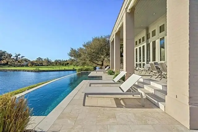 A breathtaking contemporary interpretation of Southern Louisiana vernacular architecture is the dramatic Coin du Lestin residence designed by Lee Ledbetter in collaboration with his acclaimed artist client. Sheltered behind a gated entry and perched on the high end of a peninsula, with unobstructed native Louisiana bayou views, this special offering includes a main home and two art studios/guest houses. The first time on the market, the imposing one-story home was designed to respond to the landscape, with seemingly limitless views of Bayou Bonfouca and the protected marshlands beyond. The commanding entry facade features large shuttered windows, yet the home is designed to be viewed from the rear, with its tall brick columns, deep porches and vanishing edge pool which merges with the bayou beyond. The simple yet dramatic interiors are comprised of a spacious living room with a soaring 21' ceiling, walls of glass, and a fireplace surround repurposed from a doorway in Mexico; a tidy kitchen; wet bar; and two bedroom suites, one currently being used as an office. The material palette was carefully selected of travertine, glass, wood, plaster and painted brick, maintaining a cohesive neutral backdrop for furnishings and art. There are two additional dwellings, both working studios of the former owner, one of which includes a kitchenette and a loft-style bed and bath. These provide endless opportunities for guest quarters, gym, family compound etc. Framing this remarkable estate are grounds and gardens lovingly cultivated by the owner with native cypress, palmettos, wild irises, lilies, magnolias, and of course moss-laden live oaks. There are two generators, two docks, and a new (2024) treatment plant. This is a truly exceptional opportunity to acquire an artist's legacy home within a quintessential Louisiana waterfront paradise, just a 15 minute boat ride to Lake Pontchartrain.