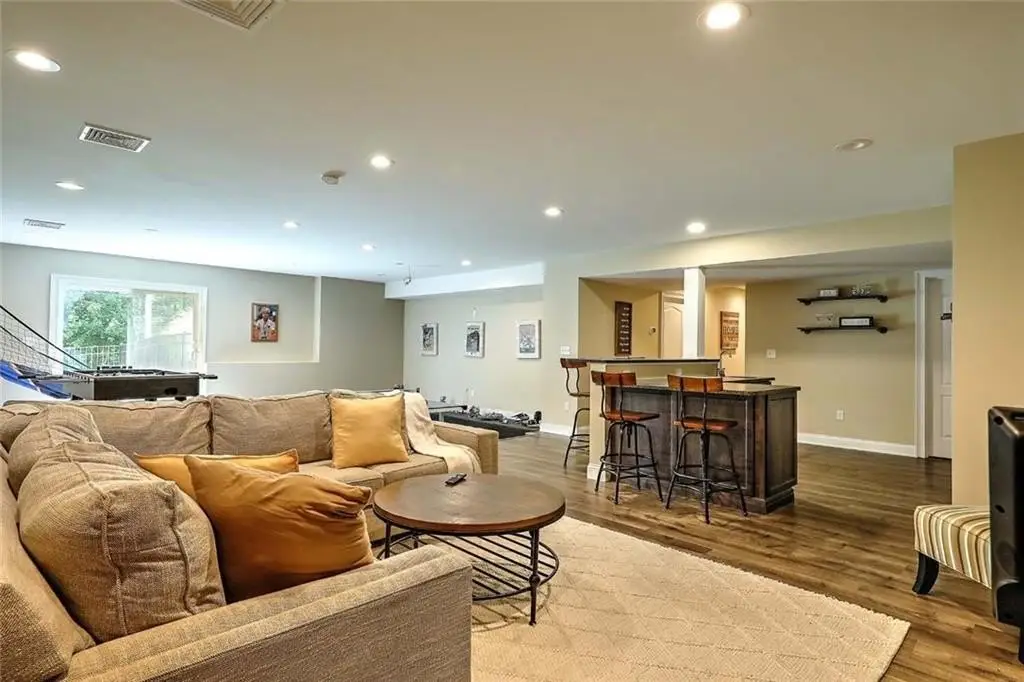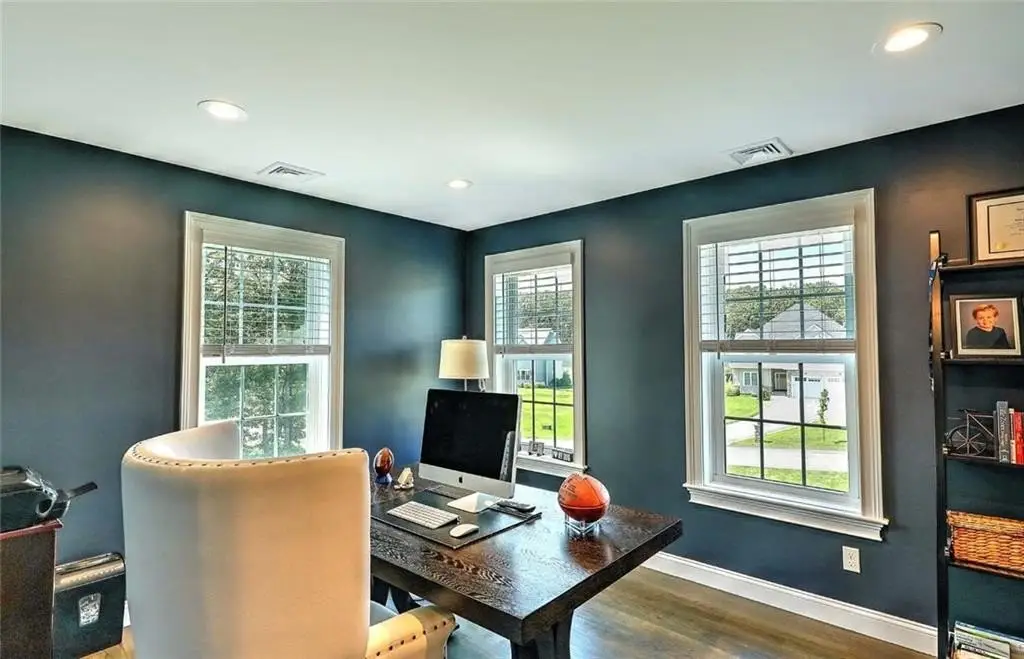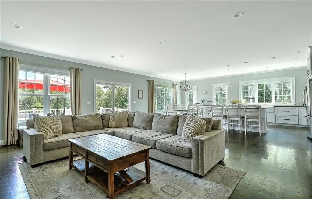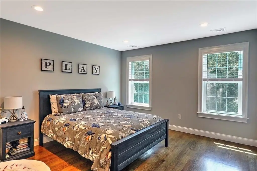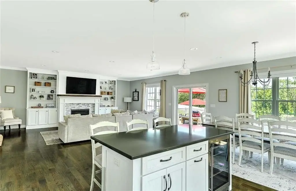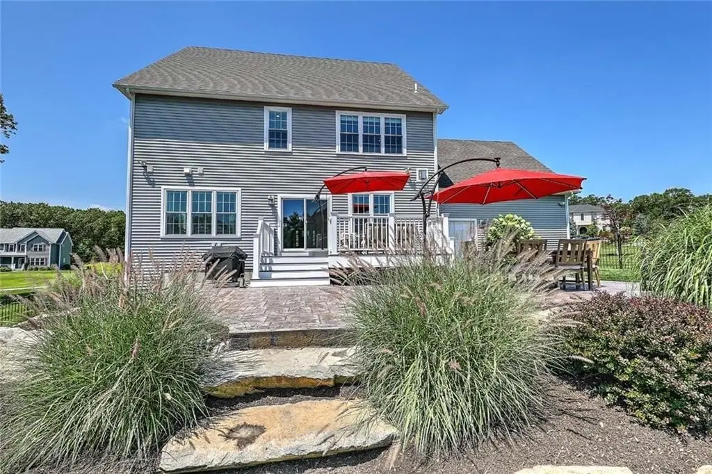 Ready to make this beautiful house your home, this modern Colonial in Smithfield is an end lot surrounded by 30+ acres of pristine conservation land. This 3-4-bedroom home, with potential to expand, was recently painted throughout and designed with an addition of an in-law apartment in mind. The main level features a bedroom and full bath, as well as an open-concept kitchen, open living and dining area. Custom built-in shelving frames the charming gas fireplace, walk-in pantry, beverage fridge, gas stove, farmers sink and sliders leading out to the deck and patio. From the garage, step into a spacious laundry/mudroom with ample cabinetry. Upstairs, you'll find an office, a bedroom with a walk-in closet & ensuite bath, plus an owner’s suite featuring a tiled glass shower and a custom walk-in closet. A large great room creates endless possibilities for a playroom, media room, or additional living space. The finished lower level includes a gym area, wet bar with fridge, and a half bath for entertaining a weekend crowd. Outside, added trees, additional landscaping, full fencing for pets completes this exceptional country abode. Laperche Elementary which is a state of Rhode Island Blue Ribbon School, Deerfield Park provides playgrounds, tennis courts, and trails. Close to the Crossings at Smithfield, Lincoln Mall, only 10 minutes away. Close proximity to highways for an easy commute to Boston or Providence. Contingent on finding suitable housing. Ask me about assumable VA at 2.25%