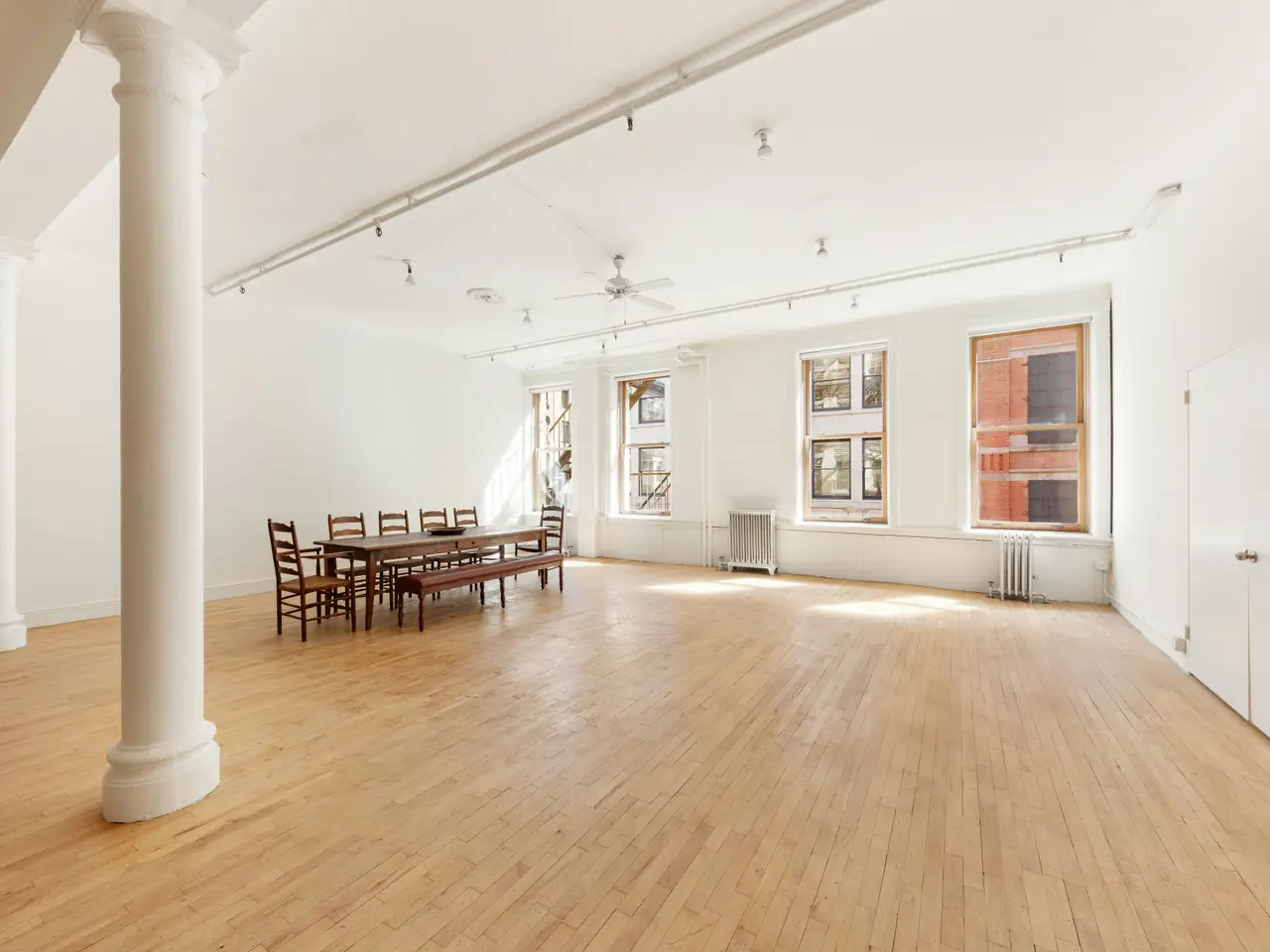 A True Soho Original Bring your architect and your creative vision to this classic 2,300SF artist loft located in a landmarked building right in the heart of Soho's historic Cast-iron District. Enter to an expansive 40-foot wide Great Room with 11-foot ceilings, original columns and bright east exposures from a wall of enormous oak-framed windows. The current layout features a large entertaining space with a set-back kitchen, a pin-drop quiet bedroom with floor-to-ceiling closets, two additional interior rooms and a full windowed bathroom with a washer-dryer. Whether you choose to move-in with the minimal amount of work, or completely gut renovate, this grand and flexible loft offers tremendous scale and an unmatched sense of peace and tranquility throughout. Built in 1896 and designed by G.A. Schellinger, the 6-story brick, terracotta and limestone building is part of an established 22-unit cooperative with a key-locked elevator, video intercom security system and private basement storage. The pet-friendly building is financially sound and responsibly managed. Pied-a-terre's and subletting are permitted. Best of all is the prime location, surrounded by historically significant architecture with great restaurants, cafes, world-class shopping and all modes of public transportation right at your doorstep. An ideal home for those who appreciate the real thing!