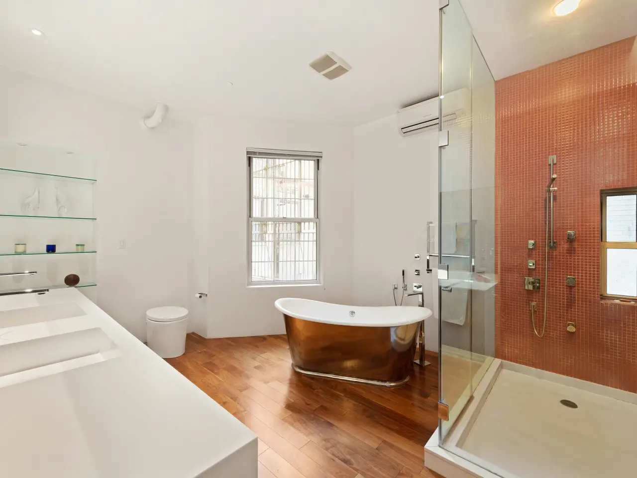 Owning this income producing co-op loft is an investment opportunity that does not come along often. Shareholders are paid very sizeable monthly distributions based on rental income from the building retail property they own. Maintenance for this floor is $500 per month. There is a healthy reserve fund, no building mortgage, no assessments and no flip tax. Live in the heart of the historic SoHo Cast Iron district on lovely cobblestone Mercer Street between Prince and Spring streets. This five story circa 1868 cast iron building was converted in 1975 by a group of artists. Cast Iron Court Corporation is professionally managed. Pets are allowed. Enter the 4th floor by a key-locked elevator to a spacious open living space with 11'+ ceilings, and walls of oversized windows and vast wall space for your art collection. The gross square footage is 3,422. Ownership of two private storage rooms totaling over 600sf is included in the sale. A multi-use room with a wall of tall storage cabinetry and a wall of windows is adjacent to the living area with tall steel sliding doors providing privacy. If you love to entertain this is the home for you with a very spacious open living area. The chef's kitchen boasts stainless steel appliances including a large Wolf range, large side-by-side fridge/freezer, wine fridge, dishwasher, two sink areas and a dining center island. There is an abundance of storage. A closet with full size washer and dryer is just off the kitchen area. Just past the kitchen you will find a serene and beautifully designed guest bath with a glass enclosed walk-in shower. There is also a freestanding wall of storage facing the guest bath. As you enter the primary suite just past the guest bathroom you are greeted with a large room that can be used in various ways. A freestanding wall is currently used for storage in addition to a wall of ceiling to floor custom designed closets. There are two oversized windows. Tall sliding steel doors provide privacy. As you enter the spa-like bath you will find a sculptural deep soaking tub and a very sizeable tall walk-in glass enclosed shower with multiple sprayers for relaxation. The long vanity has double sinks and excellent storage. SoHo is loved by many for the beautiful historic architecture. There are many wonderful restaurants, art galleries and boutique shopping.