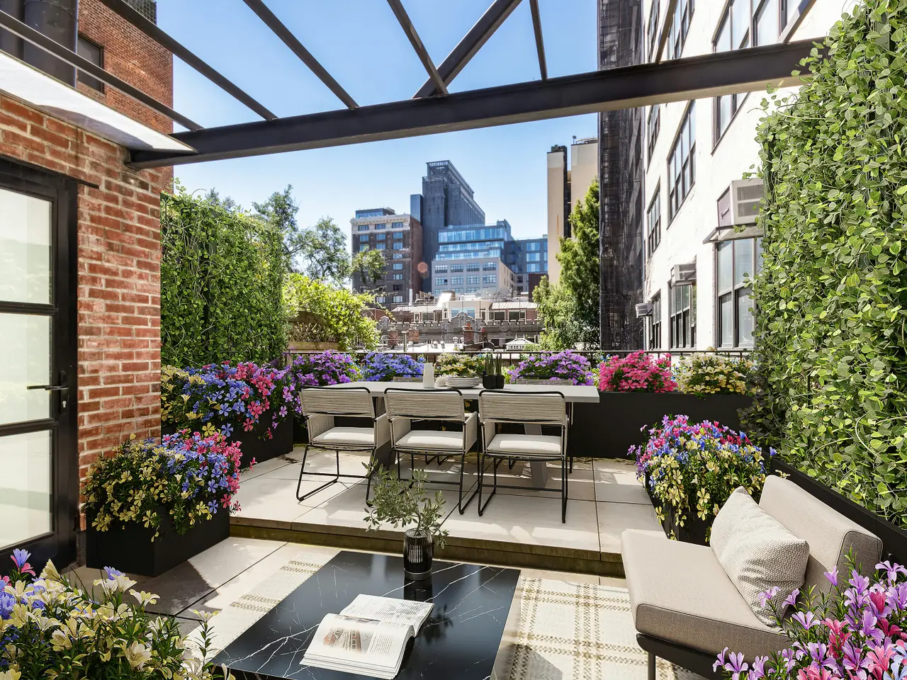 Spectacular Penthouse Upper Duplex Rental Where the West Village Meets West SoHo  Renovated and rarely available, this stunning 2-bedroom, 2.5-bathroom triple mint, upper duplex is set within a private 2-unit Federal-era brownstone on charming tree lined King Street. Offering approximately 1,880 SF of interior space and 930 SF of private outdoor space across three levels, this home combines timeless character with modern luxury in one of Manhattan's most coveted neighborhoods.   Soaring 11-foot ceilings, sleek modern finishes, and three decorative fireplaces.  The home's north and south exposures offer every room an abundance of natural light, creating an airy and inviting atmosphere. Both the kitchen/dining area and the primary bedroom open to private outdoor terraces-ideal for a morning coffee or intimate gatherings. The additional private rooftop deck provides expansive outdoor entertaining options while offering spectacular city views. Highlights include: -$24,995 / month -2 spacious bedrooms, 2.5 spa-like Calcutta marble bathrooms -Three private outdoor areas including an expansive private rooftop with spectacular city views -11 foot ceilings -Luxury suite of appliances include Liebherr refrigerator, Miele range over, Miele dishwasher -Bosch washer/dryer (in-unit) -Central air conditioning -Custom closets throughout -Architectural windows and hardwood flooring throughout -Northern exposures over tree lined King Street, Southern garden exposures -Abundance of natural light -Video security system -Approx. 1,880 SF interior and 930 SF exterior space -Located in a 2-unit classic brownstone  built in 1899 Close to all major transportation.  SoHo shopping, West Village restaurants, and the artsy charm of Tribeca.   Fee Disclosure: First Month's Rent, One Month's Security Deposit, Credit Check $21 Per Applicant  Contact listing agent for a private showing.  Available Immediately.