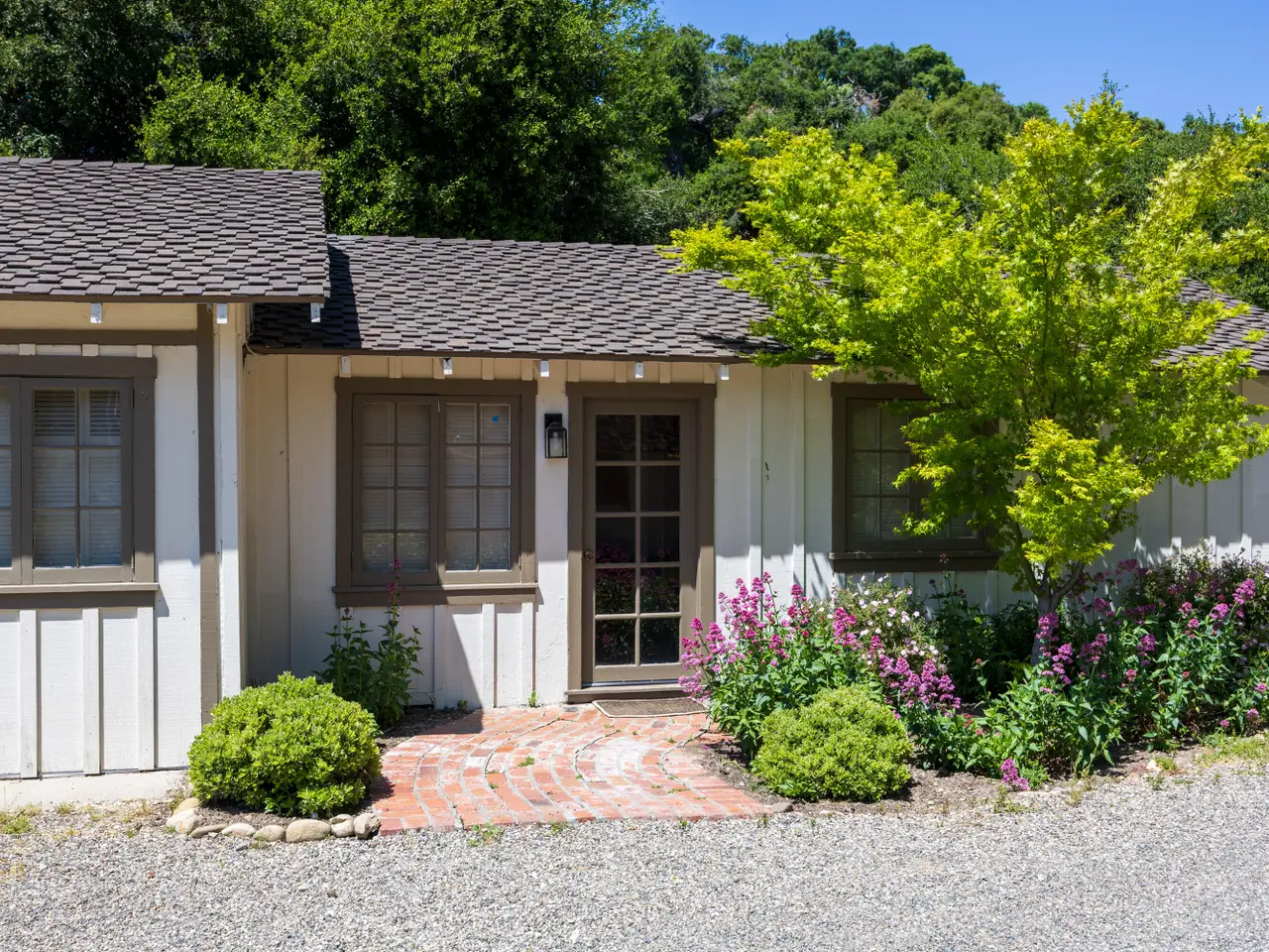 Nestled along the Alamo Pintado wine trail, this enchanting 37-plus-acre estate is located in the heart of Santa Ynez Valley, within the sought-after Ballard School District. This private retreat offers a sense of home and quality, evoking early Santa Ynez and California ranch living. The property's in-town location provides convenience, while its secluded setting among majestic old-growth oak trees ensures privacy. A gated entrance leads to a tree-lined driveway, flanked by antique stone pillars, winding over a bridge and through park-like grounds, creating a sanctuary-like atmosphere. The 1930s farmhouse is nestled amid mature trees and a seasonal creek. This classic California ranch house exudes warmth and charm, featuring a sun-filled living room with a large wood-burning fireplace... and a marvelous, screened sunroom. Over time, the home expanded to include 6 bedrooms, centered around a kitchen with a dual-sided fireplace and French doors opening to the patio and BBQ areas. A butler's pantry leads to a formal dining room and an additional screened porch, perfect for larger gatherings. The home retains much of its original charm, including hardwood floors, brick fireplaces, tongue-and-groove ceilings, and French doors, while blending old-world charm with modern comforts. The house is complete with a two-car garage, two additional covered car spaces, and an office. The estate also features a detached one-bedroom guest house, stables, barns, and two front pastures. Seventeen acres of land on the upper plateau offer opportunities for vines, pastures, or natural preservation. The outdoor amenities include a sparkling swimming pool, spa, tri-tip BBQ area, and tennis/pickleball court, all set against a backdrop of stunning natural beauty. Positioned at the forefront of the renowned wine trail, it's just a stone's throw from the beautiful areas of Ballard, Solvang, Santa Ynez, and Los Olivos. Conveniently close to schools, specialty grocery stores, award-winning bakeries, local coffee shops, boutiques, and prized restaurants, this property offers both tranquility and accessibility.