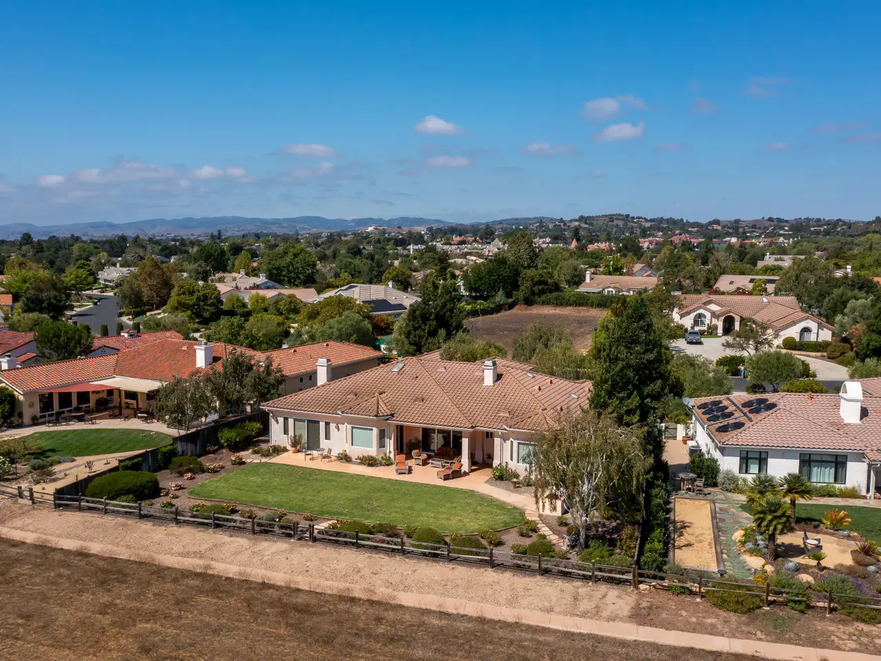 On a desirable perimeter location in the Village Collection, this spacious single-level home offers the perfect blend of comfort, design, and breathtaking scenery. With 4 bedrooms, 3 bathrooms, laundry room and 3-car garage, this home is suited for comfortable family living, entertaining, and restful retreats. From the moment you step inside, you'll be drawn to the expansive windows framing jaw-dropping panoramic views. The 10,000 acre Alisal Ranch's oak studded hills, grazing cattle, and wide-open skies create a backdrop that transforms everyday living into a serene sanctuary. The thoughtful floor plan flows easily between living spaces, with high ceilings, skylights and warm natural light filling the rooms. Whether preparing a meal in the kitchen, hosting family and friends, or enjoying a quiet evening by the fire, this home was designed for peaceful Valley living. Indoor/outdoor relaxation and entertaining is effortless with doors leading to the covered patio and backyard from living, family, kitchen and primary suite. Set on an estate-sized lot in a friendly neighborhood adjacent to the Alisal River Golf Course, you'll appreciate the wide streets, privacy, and easy access to downtown Solvang, where charming shops, dining, outdoor theater, and wine tasting are just minutes away. This home is more than just a place to live--it's a place to truly experience the beauty and tranquility of the Santa Ynez Valley.