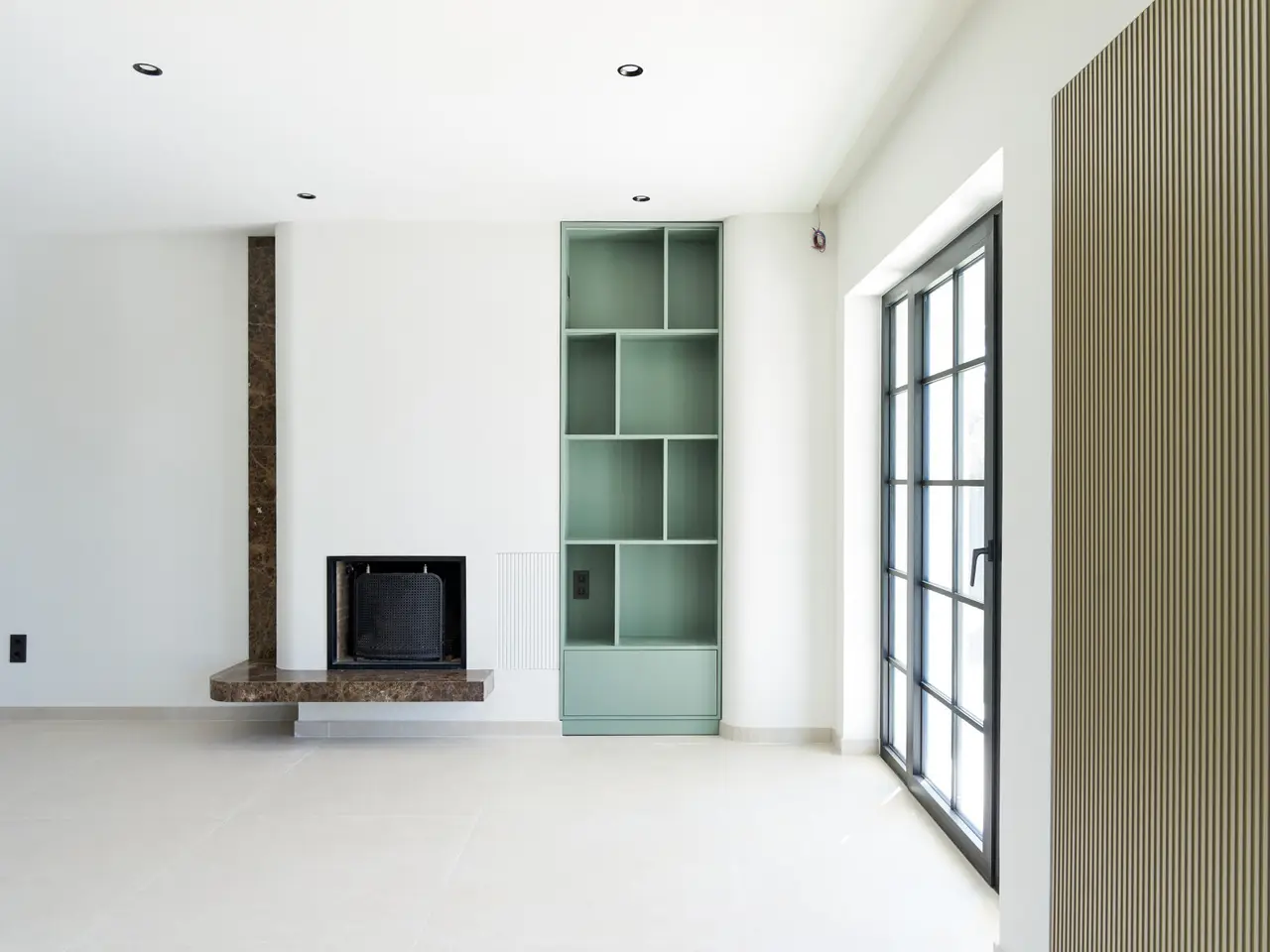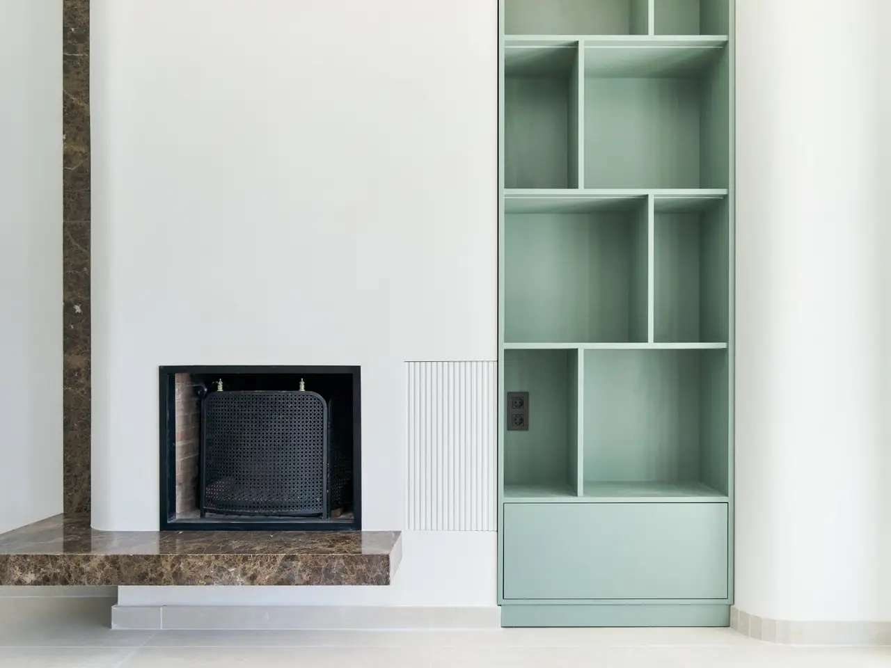 • Marble-clad fireplace