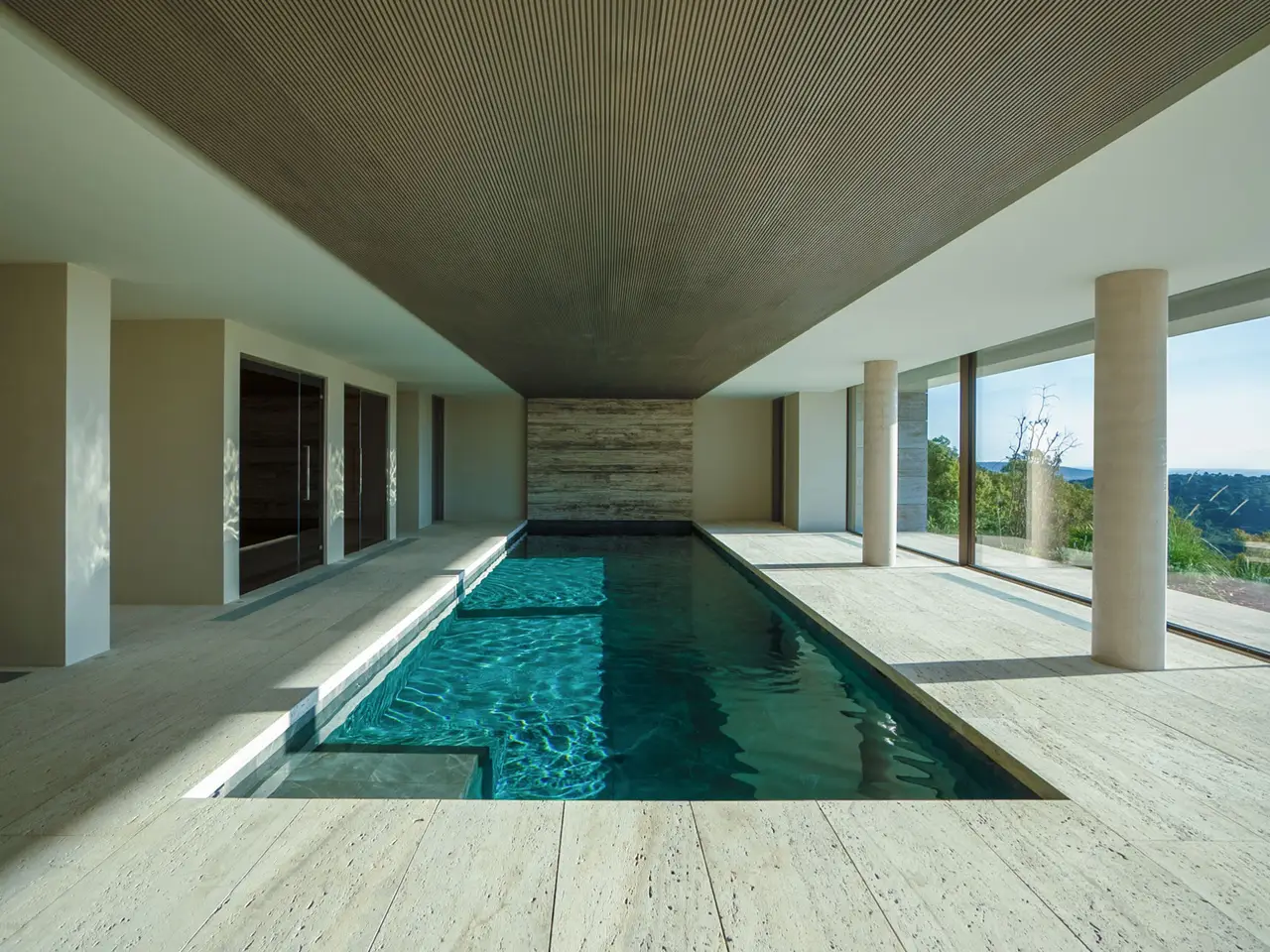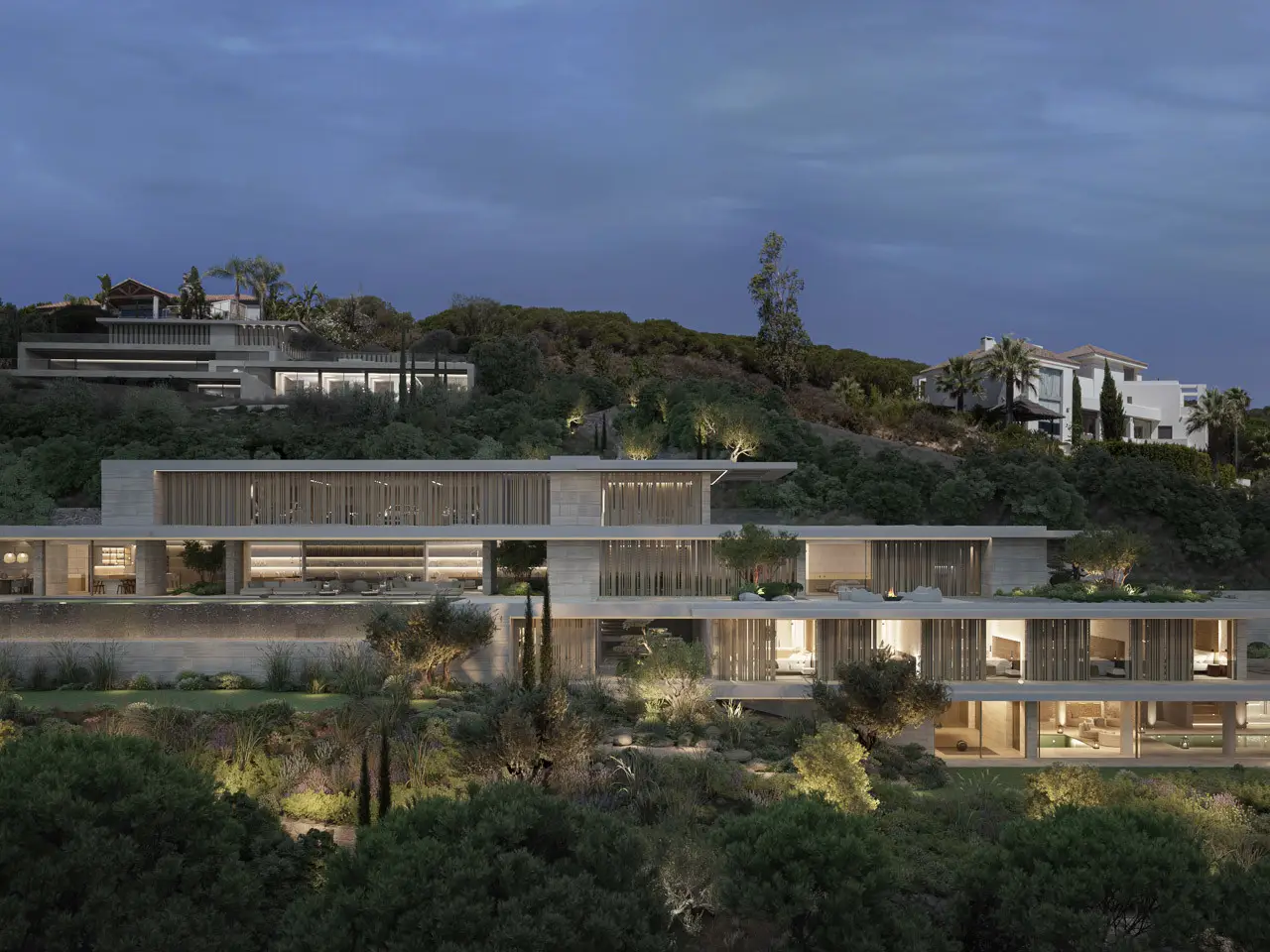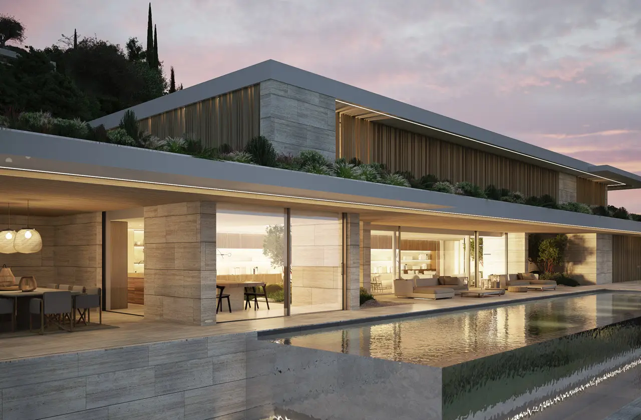 A timeless retreat crafted for those who seek an exceptional living experience. The Sanctuary stands at the heart of La Reserva de Sotogrande, embracing its landscape with an architecture defined by purity, light, and serenity. Set on a 4,405 m² plot, this newly completed residence features over 2,300 m² of refined interiors, designed to elevate the modern Mediterranean living experience. A sequence of terraces, patios, and panoramic glass façades dissolves boundaries between the home and its natural surroundings, creating an atmosphere of calm sophistication. The villa features 7 impeccably appointed suites—each conceived as a private sanctuary—along with an additional staff room. The main level flows effortlessly between grand reception spaces, a designer kitchen with Gaggenau appliances, a secondary service kitchen, and the showpiece 25-metre infinity pool, extending towards the horizon with sculptural elegance. On the wellness level, the home reveals its most indulgent side: an indoor spa with pool, massage room, sauna and steam room, relaxation lounges, a 52 m² gym and a cinema/TV room, all opening to landscaped gardens and shaded terraces. Materials have been curated with meticulous attention: Moca limestone and silver travertine, custom stone bathrooms with Villeroy & Boch fittings, slimline aluminium frames, underfloor heating and high-efficiency climate systems—every detail chosen for beauty, comfort and lasting quality. The outdoor areas echo the villa’s serenity with Mediterranean gardens, two pools, a jacuzzi, and multiple spaces for relaxation, dining and contemplation. The Sanctuary is more than a residence; it is an expression of contemporary luxury shaped for those who value privacy, space and exceptional design.