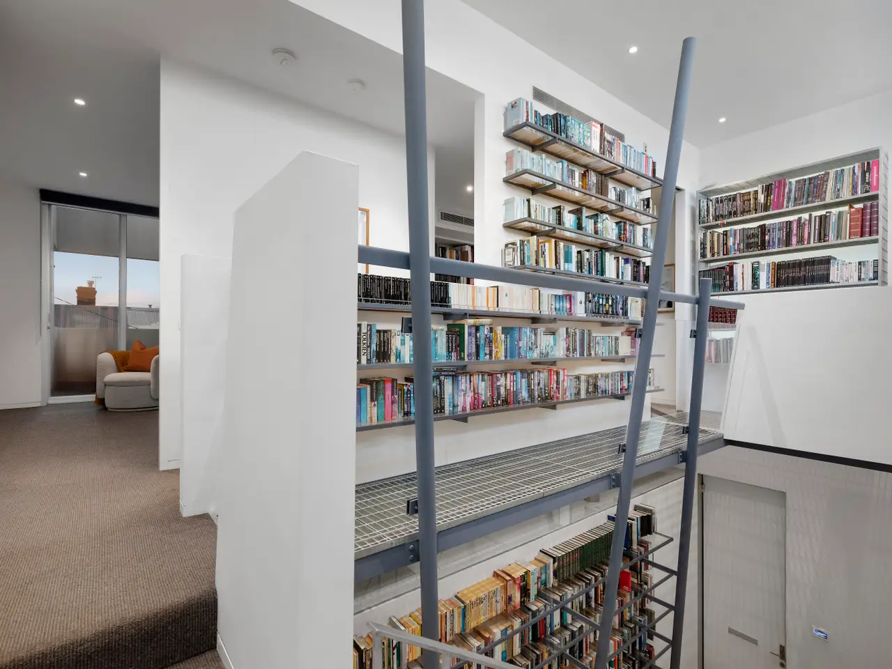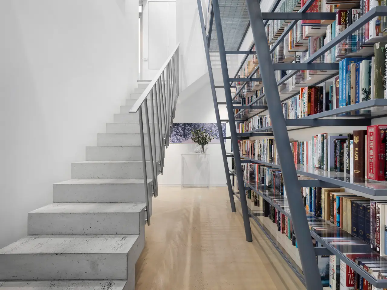 Steel-framed bookshelves