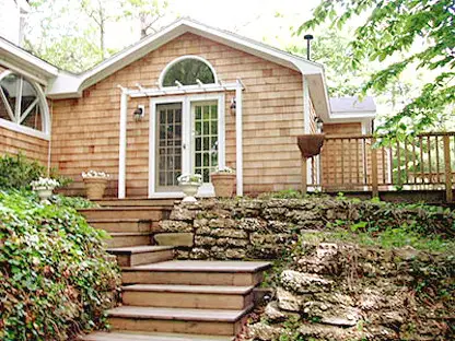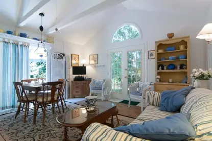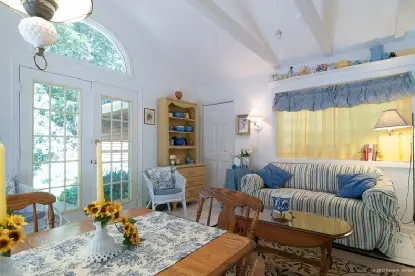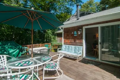 RP# 240813. Traditional one-bedroom cottage with a large living room, cable TV, washer and dryer, mahogany deck with a gas grill, deck, 20'x40' shared gunite swimming pool and an outdoor shower. Listing ID: 738365