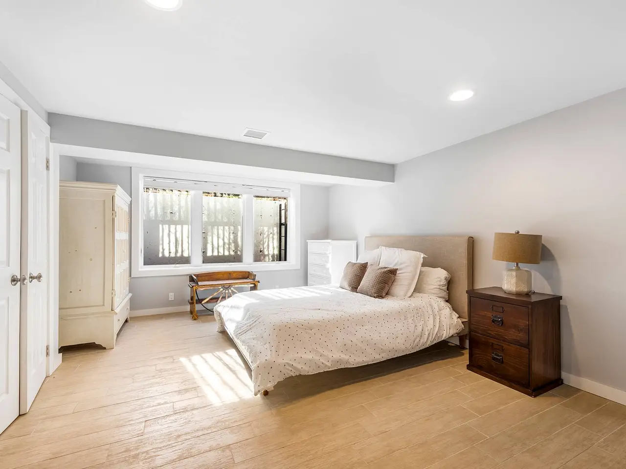 A rare find with pool, tennis and basketball. This newly-renovated and expanded, sun-drenched, six bedroom home, including two first floor en suite masters, five bathrooms and two laundry rooms is perfect for all occasions. In close proximity to the beach and the Village of Southampton, this should not be missed. Relax on the expansive mahogany deck with pool and spa, surrounded by three acres of beautifully landscaped grounds. The perfect entertaining home and ultimate sanctuary. Designer-decorated and meticulously-appointed spaces complete this perfect oasis with 4,500 square feet of living space. Additional periods available upon request.