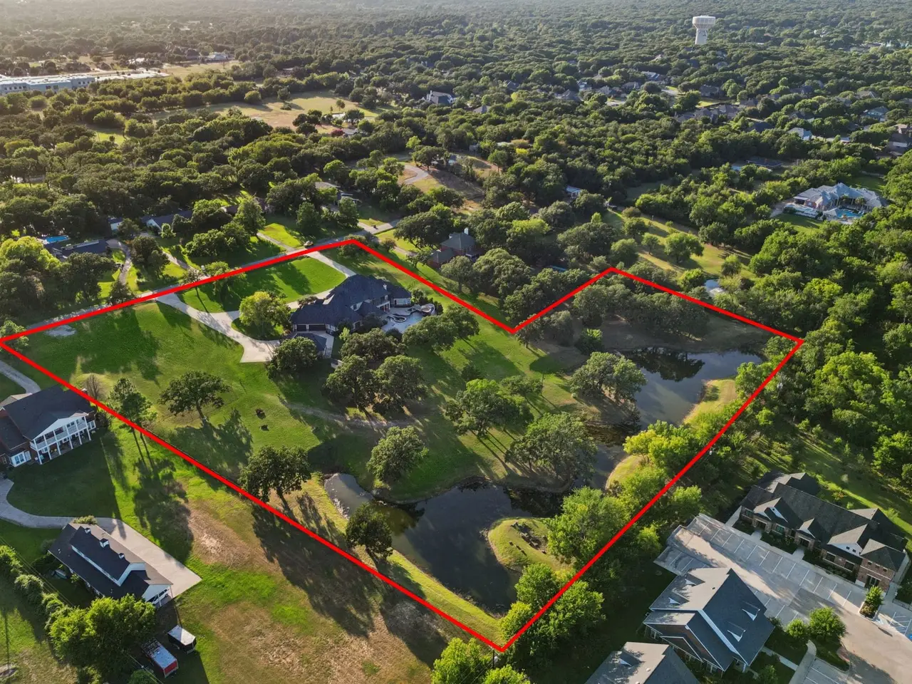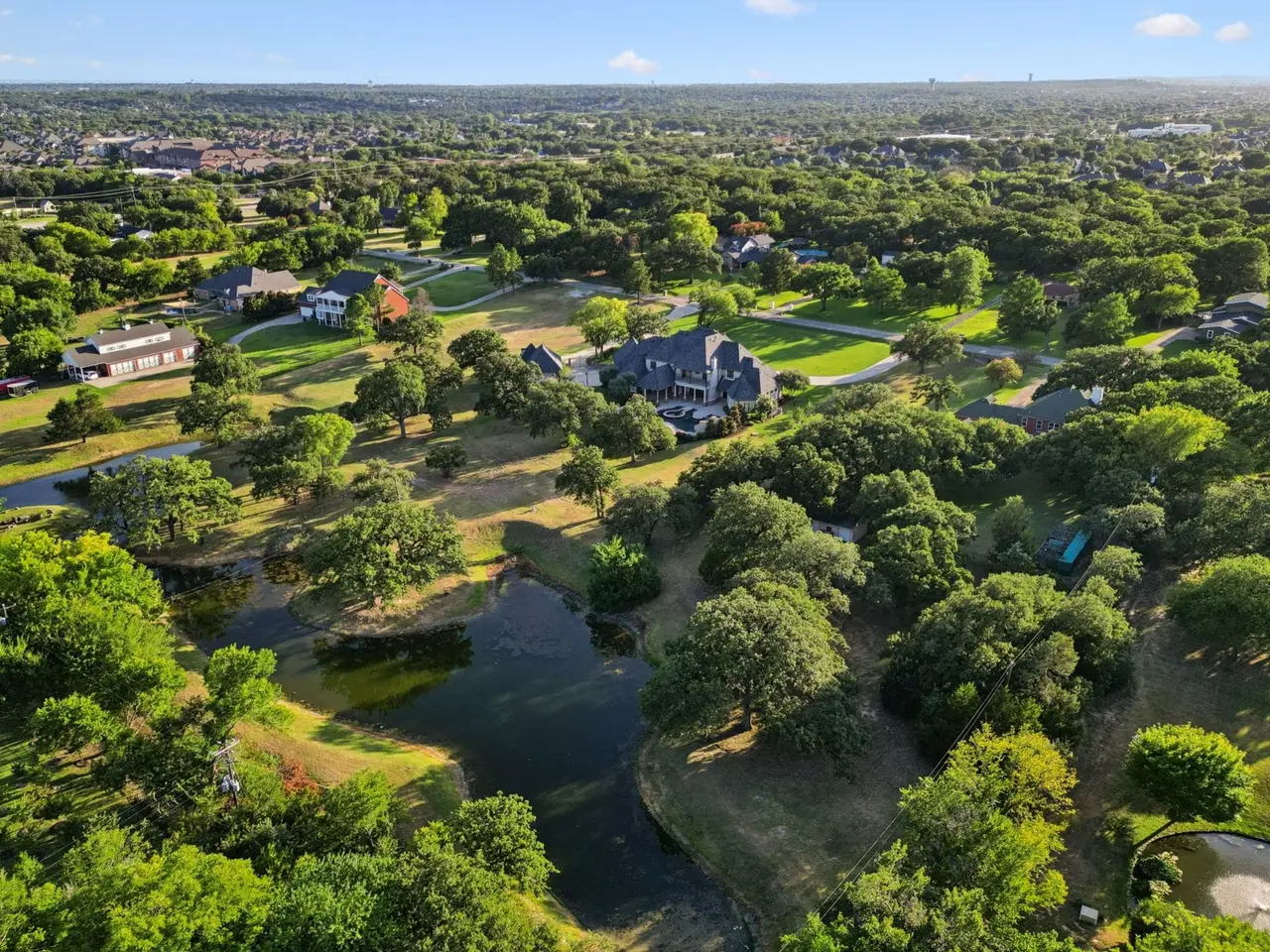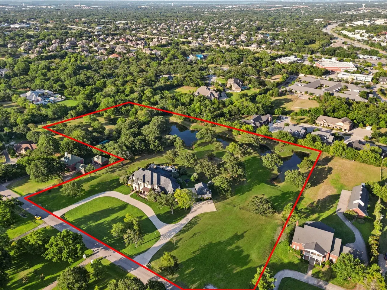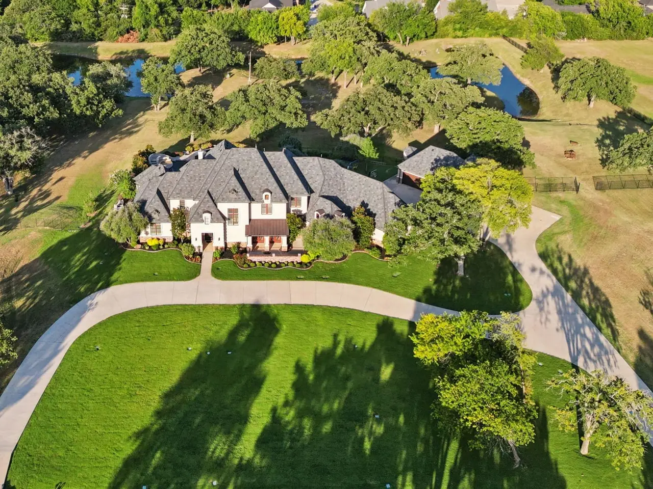 Welcome home to this amazing estate on seven acres of sprawling, tree-filled land and backing to its own private ponds. Enter the impressive circular drive, to approach this custom-built and fully updated home! Complete with modern finishes, designer hardware and lighting, freshly painted, refinished wood floors and spacious living spaces, this gorgeous home impresses at every turn. Large family room, open to the kitchen with large island and breakfast room with gorgeous custom cabinetry and laser cut marble backsplash! Huge 16x10 Prep Kitchen is complete with fridge-freezer, double oven and a dishwasher. Executive Study overlooks the incredible backyard, as does the Primary Suite with sitting area, dream spa bath and oversized closet. Private guest suite at the opposite end of the home along with a spacious game room just off of the outdoor living area. This six bedroom home delivers top-end finishes, including Thermador appliances and Miele coffee maker, designer selections, along with an oversized Wine Grotto to house your private collection. The 6th bedroom upstairs is currently being used as a Exercise room with commercial grade rubber floor and exercise mirrors. Vacation in your own backyard that boasts seven lush acres with two private stocked ponds, tons of mature trees, open grass space + the resort-style pool of your dreams with Waterfalls, a Spa, water features, lazy river area, and sunken fire pit that will surely impress all of your family and guests. The backyard also has a playground with in-ground trampoline, plus numerous stone pathways through the charming gardens. Four-car attached garage with an additional separate two-car garage. Gated backyard is like living in the country, but right in the heart of Southlake!!!