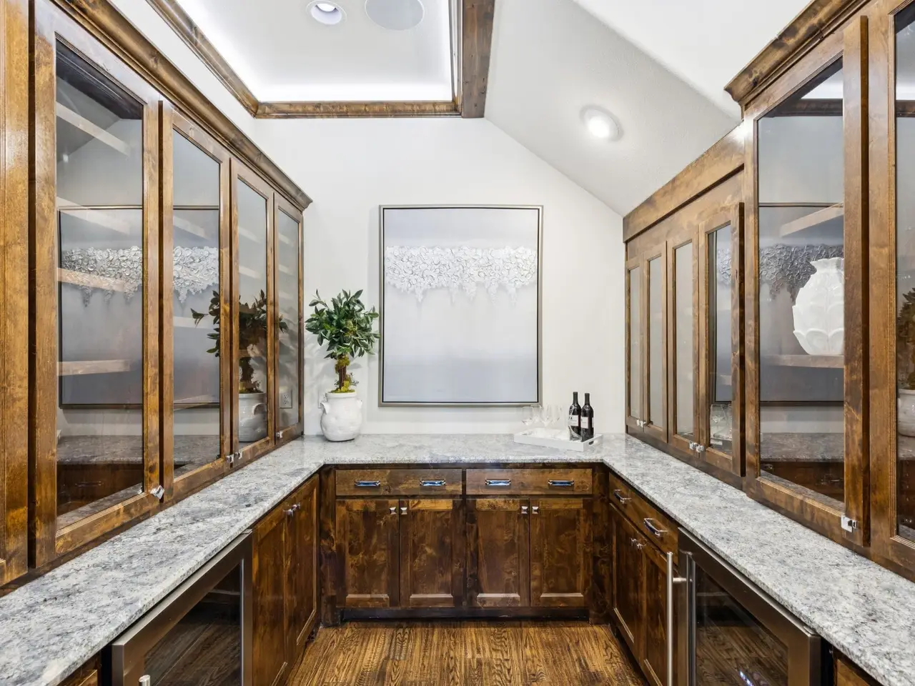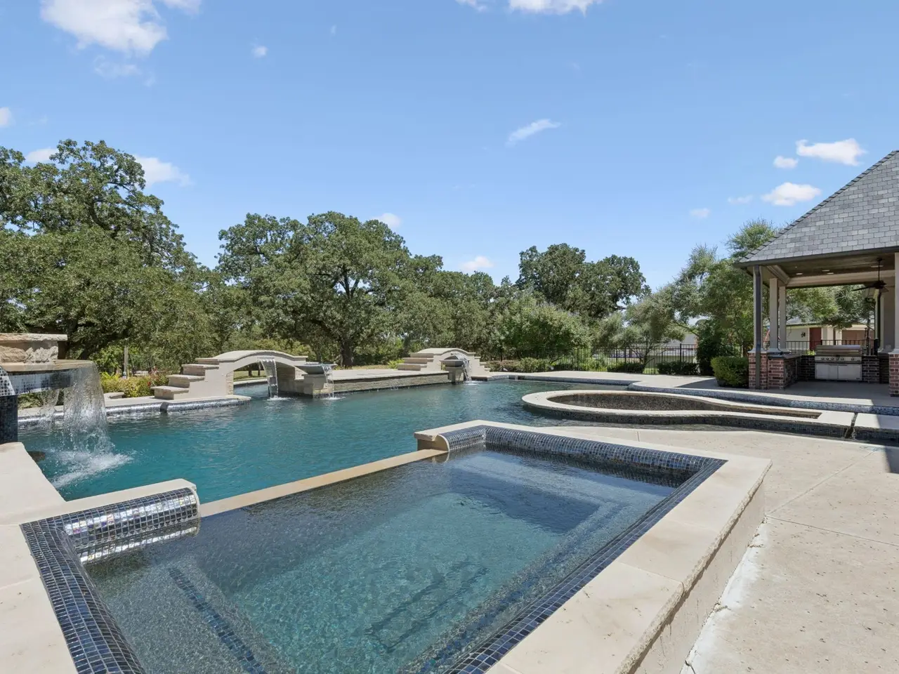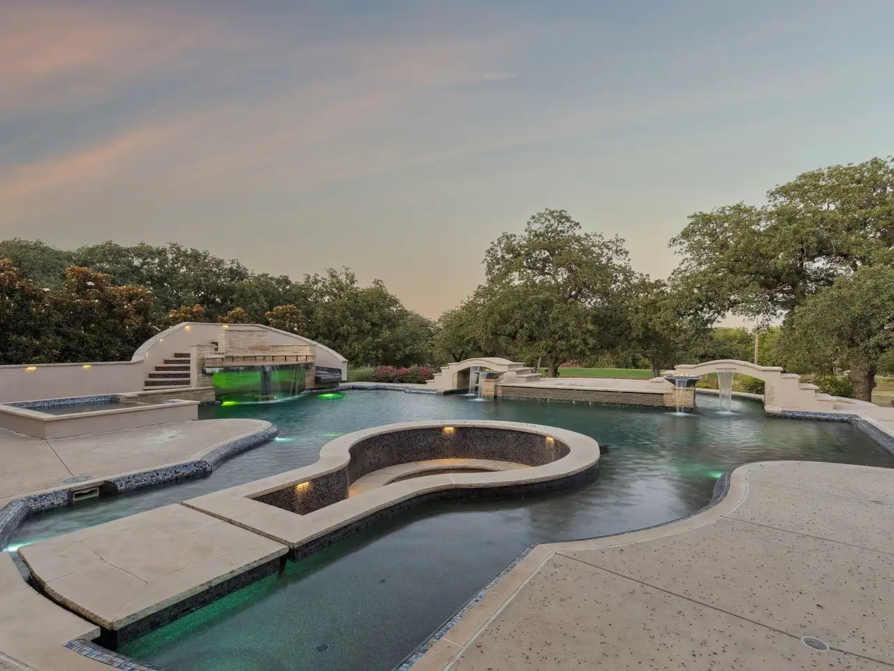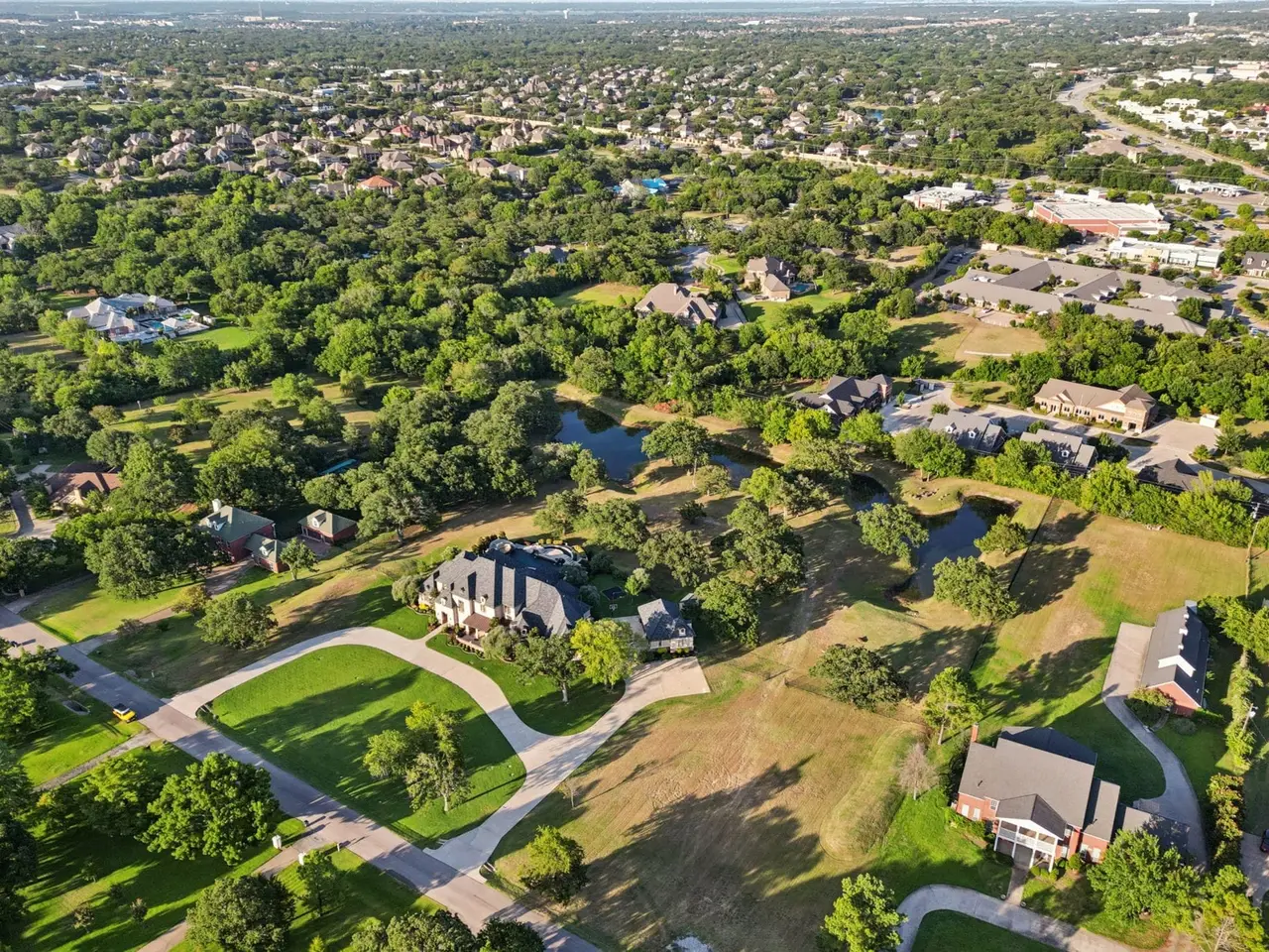 Welcome home to this amazing estate on seven acres of sprawling, tree-filled land and backing to its own private ponds. Enter the impressive circular drive, to approach this custom-built and fully updated home! Complete with modern finishes, designer hardware and lighting, freshly painted, refinished wood floors and spacious living spaces, this gorgeous home impresses at every turn. Large family room, open to the kitchen with large island and breakfast room with gorgeous custom cabinetry and laser cut marble backsplash! Huge 16x10 Prep Kitchen is complete with fridge-freezer, double oven and a dishwasher. Executive Study overlooks the incredible backyard, as does the Primary Suite with sitting area, dream spa bath and oversized closet. Private guest suite at the opposite end of the home along with a spacious game room just off of the outdoor living area. This six bedroom home delivers top-end finishes, including Thermador appliances and Miele coffee maker, designer selections, along with an oversized Wine Grotto to house your private collection. The 6th bedroom upstairs is currently being used as a Exercise room with commercial grade rubber floor and exercise mirrors. Vacation in your own backyard that boasts seven lush acres with two private stocked ponds, tons of mature trees, open grass space + the resort-style pool of your dreams with Waterfalls, a Spa, water features, lazy river area, and sunken fire pit that will surely impress all of your family and guests. The backyard also has a playground with in-ground trampoline, plus numerous stone pathways through the charming gardens. Four-car attached garage with an additional separate two-car garage. Gated backyard is like living in the country, but right in the heart of Southlake!!!