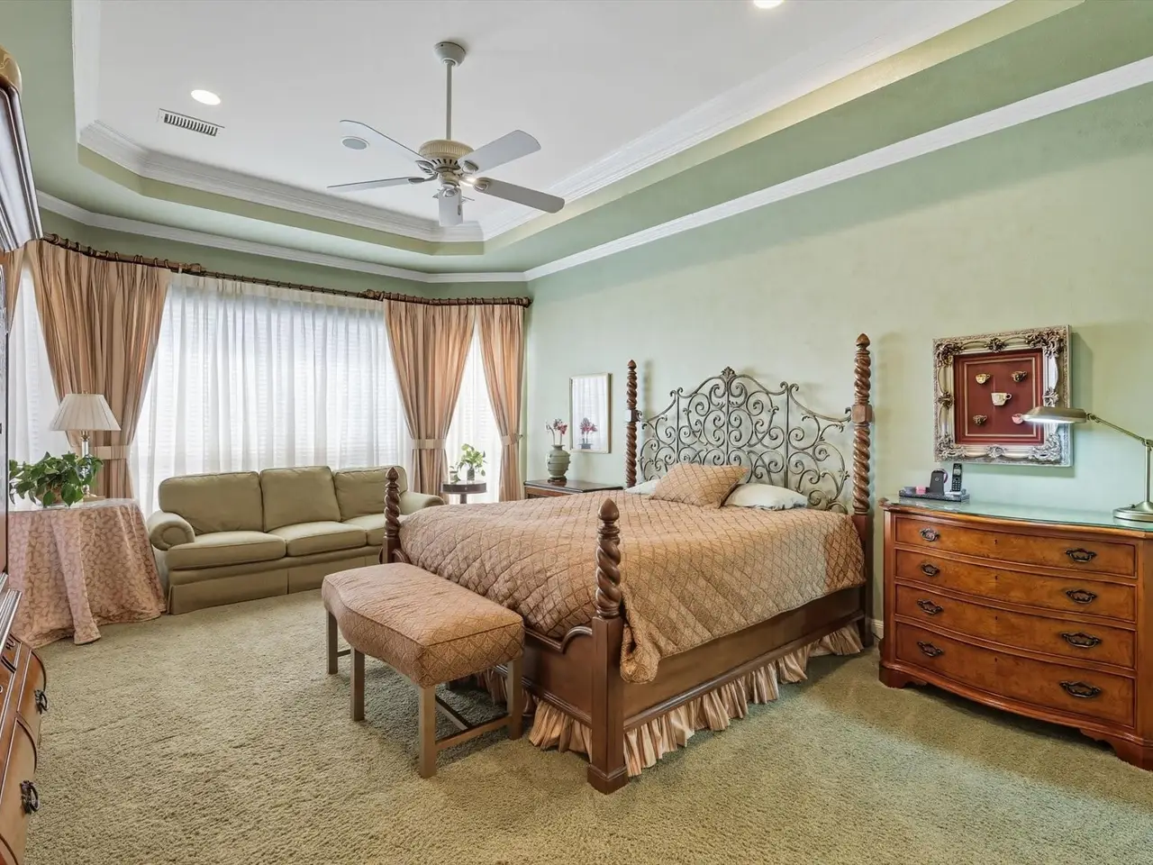 Immaculately maintained one-story home with fabulous curb appeal in the highly desirable Crescent Royale addition in Timarron. Hardwood floors throughout living areas, extra tall ceilings, and large living areas. Three bedrooms, three baths, two living areas and two dining areas. One bedroom currently being used as office. Lots of storage throughout. Spacious primary suite with huge bathroom, separate vanities, and large dual closets. Enjoy relaxing evenings in the stunning outdoor space with living area that includes summer kitchen with grill and burners, pergola, and soothing sounds of the rock waterfall and pond. Backyard features lush landscaping and easy maintenance and backs to green space for privacy. HOA maintains front yard. Roof replaced 8-25; water heaters replaced 2024, new fireplace 8-25.