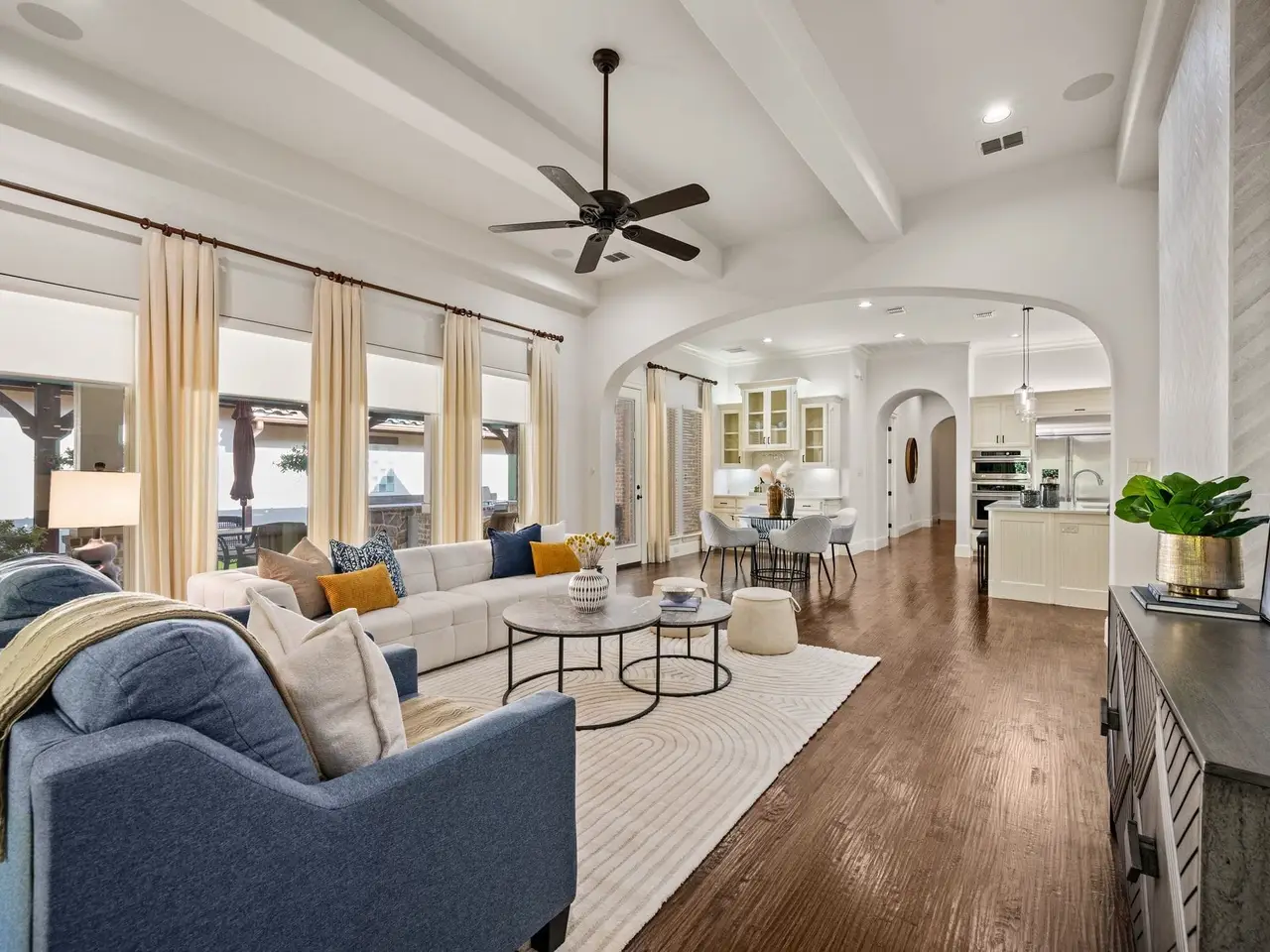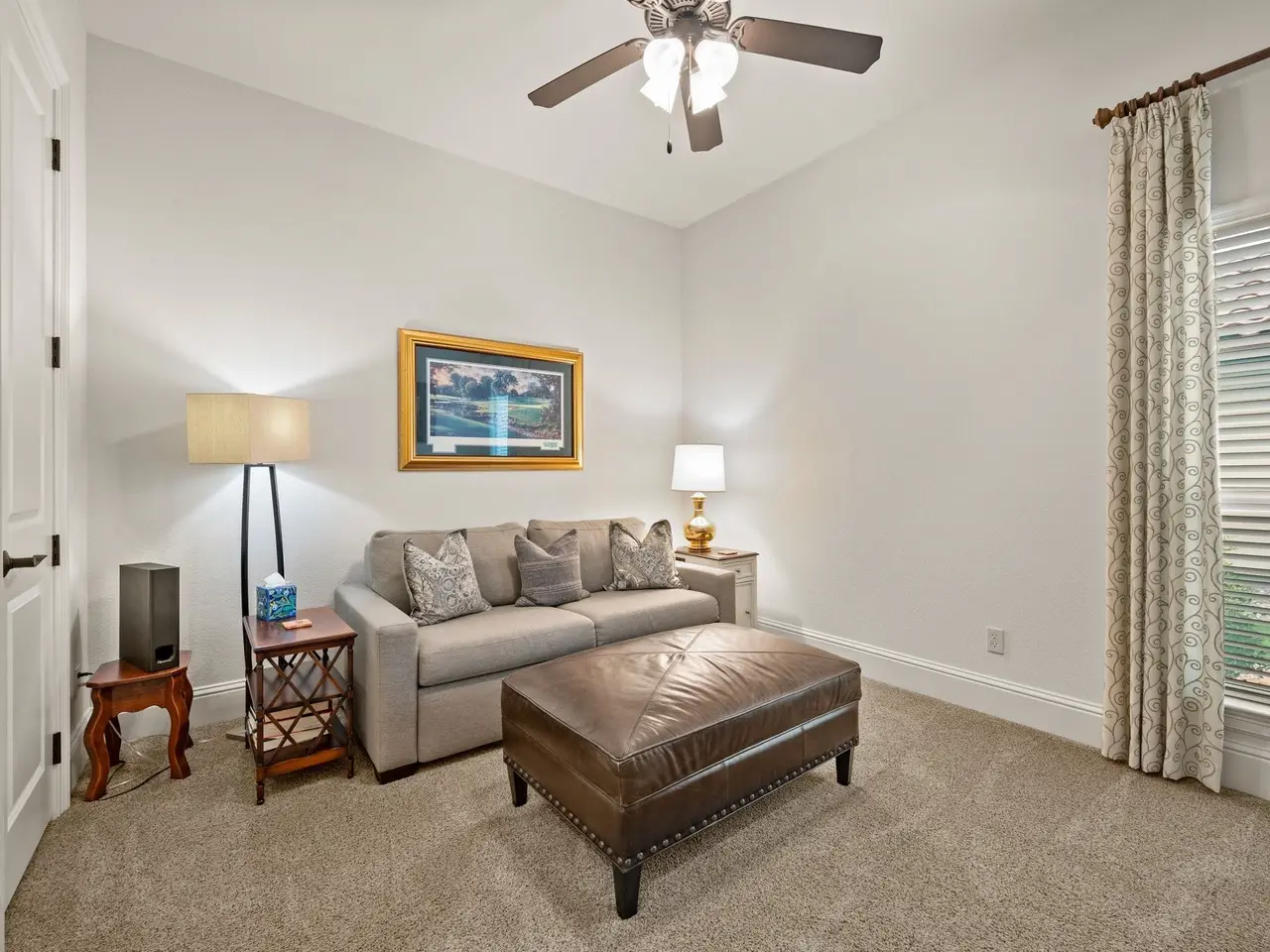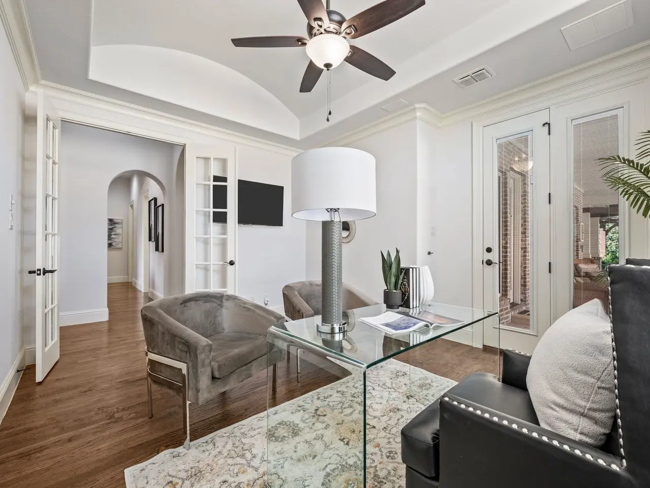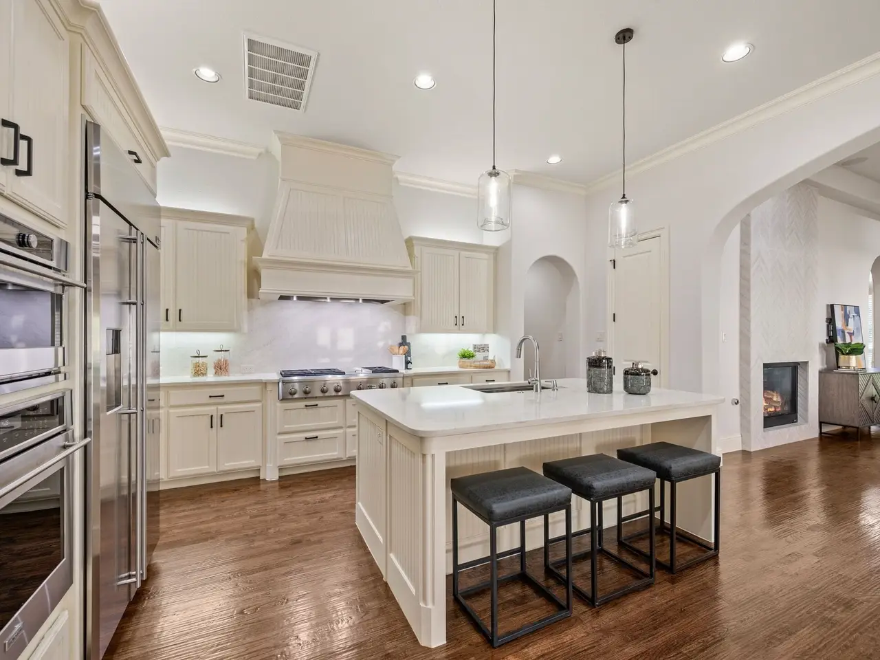 A RARE FIND! This ONE story home epitomizes quiet luxury & sophisticated comfort. Be greeted in foyer by gleaming hardwood floors, then passing by the dining room with a courtyard view. Timely kitchen updates include large island & quartz counters with full height backsplash & large island. A professional grade stainless steel kitchen includes 6 burner gas cooktop & vent, built-in frig, and a pantry designed by Container Store. The heart of the home is the open-concept living area distinguished by a soaring beamed ceiling & a magnificent floor-to-ceiling fireplace with modern herringbone tile design. An abundance of natural light streams from 2 walls of windows offering serene views of the lush backyard. The office has French doors with easy access to patio for a work break. A bonus room for a second living area or second office, adjoins the spacious primary bedroom with amazing closet designed and installed by Closets by Design. Primary bath provides dual sinks & vanities, a garden tub with walk-in shower and is across the hall from the utility for ease of access. Two split secondary bedrooms & improved bathroom counters provide privacy & comfort for all. The 3 car tandem garage is special with epoxy floors, built in storage system & workbench, also including a Lift to carry boxes etc to the attic so you don't have to! Extending the living space, the backyard becomes a private oasis with a sprawling covered patio complete with cozy fireplace and outdoor grill. The wooden pergola creates an enchanting area for relaxing or dining al fresco amidst the beautifully landscaped grounds and lawn. This remarkable home has been carefully curated to create living in comfort, style, & tranquility. This sparkling home is in sparkling condition and a must see! Ask your agent for the Information & Improvements sheet and the link to 3D floorplan. KISD schools or residents can apply to Southlake Carroll ISD open enrollment. This NOT an over 55 community.