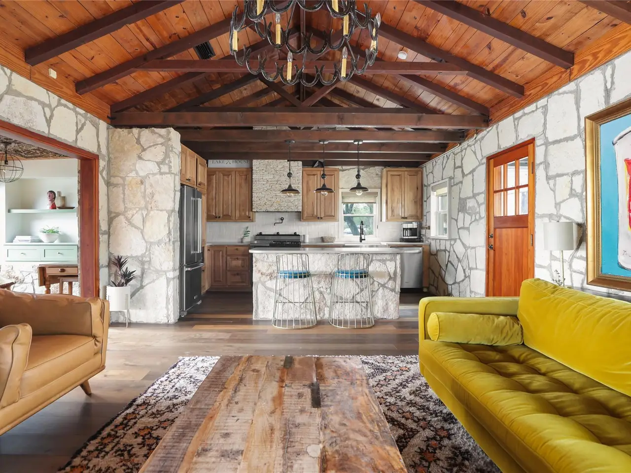 The beauty of lakeside living comes to life in this rare Lake Travis waterfront gem. Nestled on nearly an acre of manicured land, 19745 Lakehurst Loop is a stunning retreat tucked along the tranquil shores of a cove on Lake Travis. Towering oak trees provide shade and serenity, while a gentle slope leads to the water's edge, where a private boat dock invites effortless days on the lake. Featuring double stone wall construction, this home seamlessly blends timeless craftsmanship with modern comfort. Oak and Saltillo tile floors add warmth and character, while the kitchen pairs classic design with high-end functionality, featuring Craftsman-style stained cabinets, a Wolf range, a Sub-Zero refrigerator, and a stainless steel farm sink. Expansive windows bathe the living spaces in natural light, framing breathtaking lake views. The primary suite offers a peaceful retreat, while the second bedroom provides flexibility--perfect for a bunk room, full bedroom, or home office to suit your needs. Beyond the home, a detached workshop provides the perfect spot to take in picturesque lake views and breathtaking sunsets, making it an inspiring retreat for creativity or relaxation. With no HOA, a low tax rate, and short-term rentals allowed, this home offers exceptional flexibility. Located on the western edge of Lakeway, TX, it's just minutes from Rough Hollow, Hill Country Galleria, Lakeway's vibrant shopping and dining scene, top-rated Lake Travis ISD schools, and premier golf courses. A true waterfront retreat, this exceptional property captures the essence of Lake Travis living--where natural beauty, timeless charm, and modern convenience come together in perfect harmony.