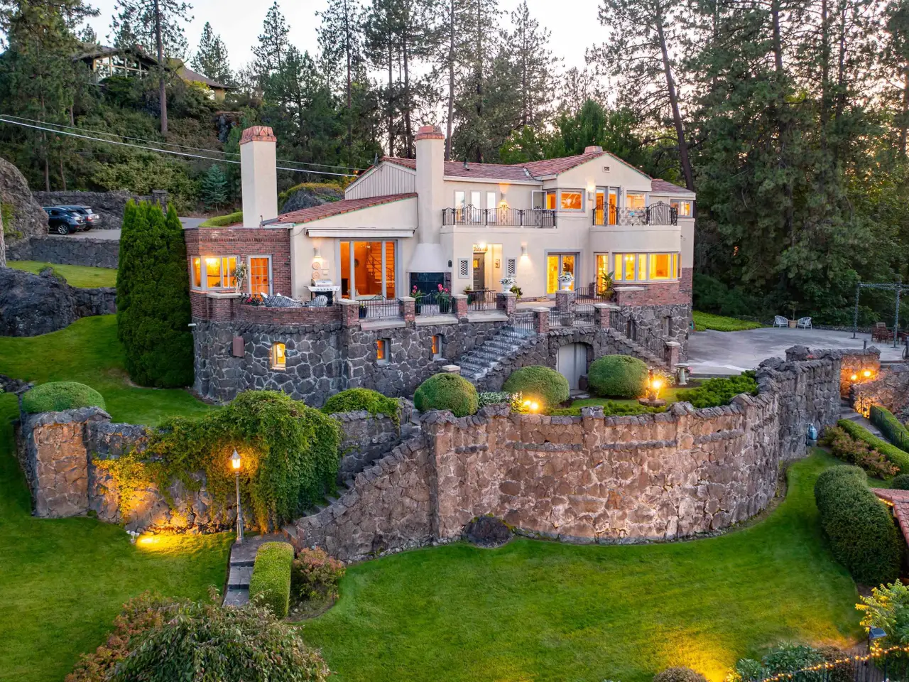 The Victor & Georges Dessert House is a landmark estate in Spokane's historic Rockwood neighborhood - privately sited on 1.32 acres with sweeping 270-degree views. Built in 1936, this Spanish Eclectic masterpiece by architect G.A. Pehrson is listed on both the National and Spokane Registers of Historic Places. With over 7,500 square feet, the home features four bedrooms, five bathrooms, three kitchens, a sun room with wet bar, wine cellar, and two private decks. Recent upgrades include a whole-house generator, on-demand water heater, and pool renovations. A resort-style tiled gunite pool - with a hand-laid rose mosaic at its center - anchors the grounds, alongside a full outdoor kitchen, fireplace, cabana, and gazebo. A showcase of masterful design and enduring craftsmanship, this estate stands as one of Spokane's most architecturally significant homes.