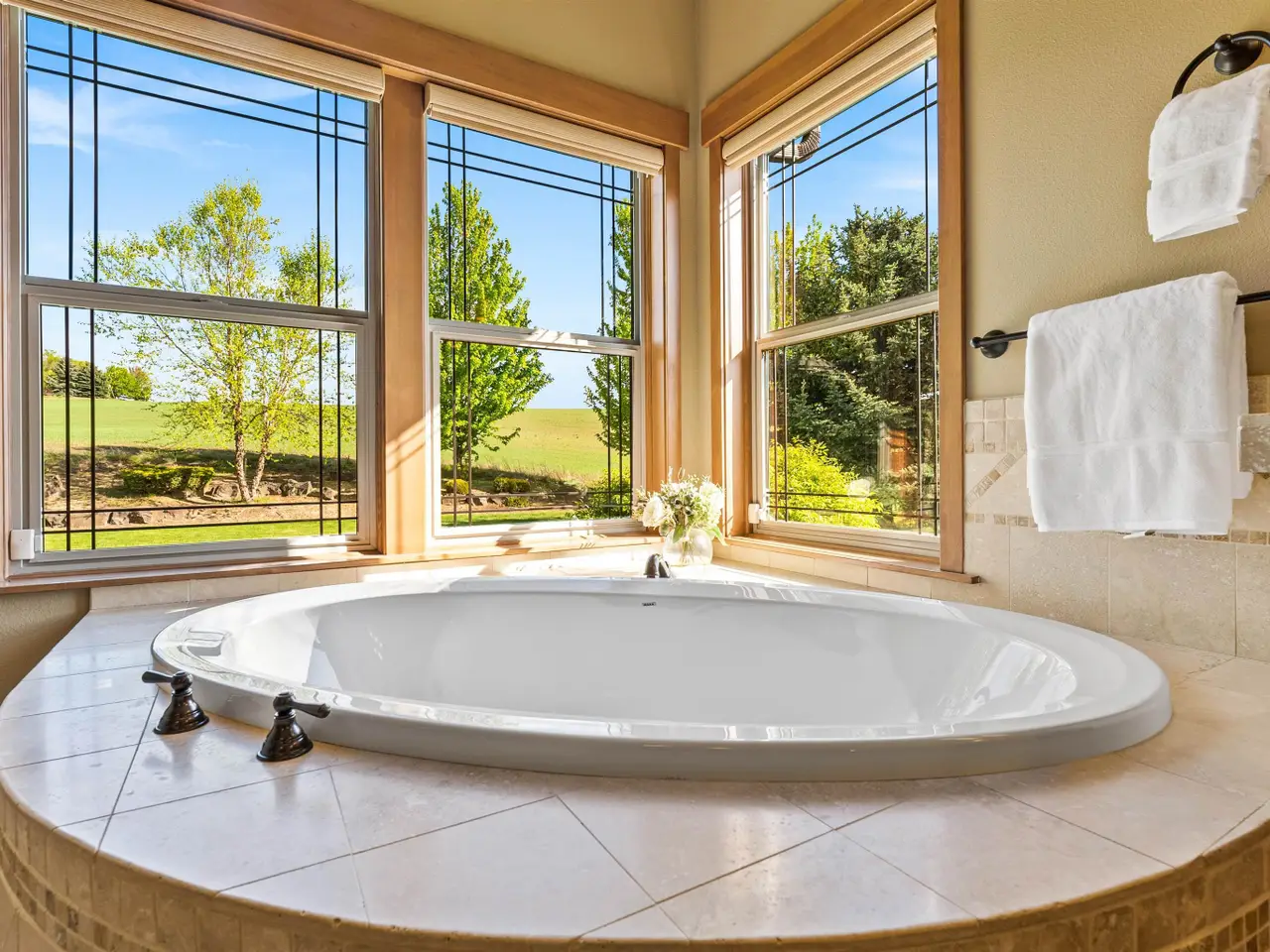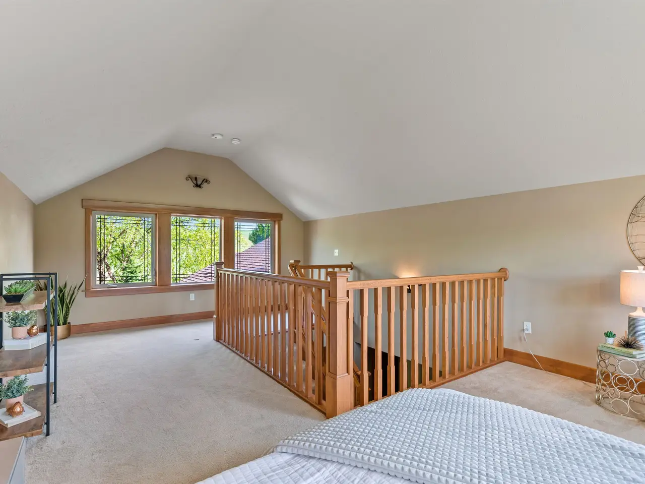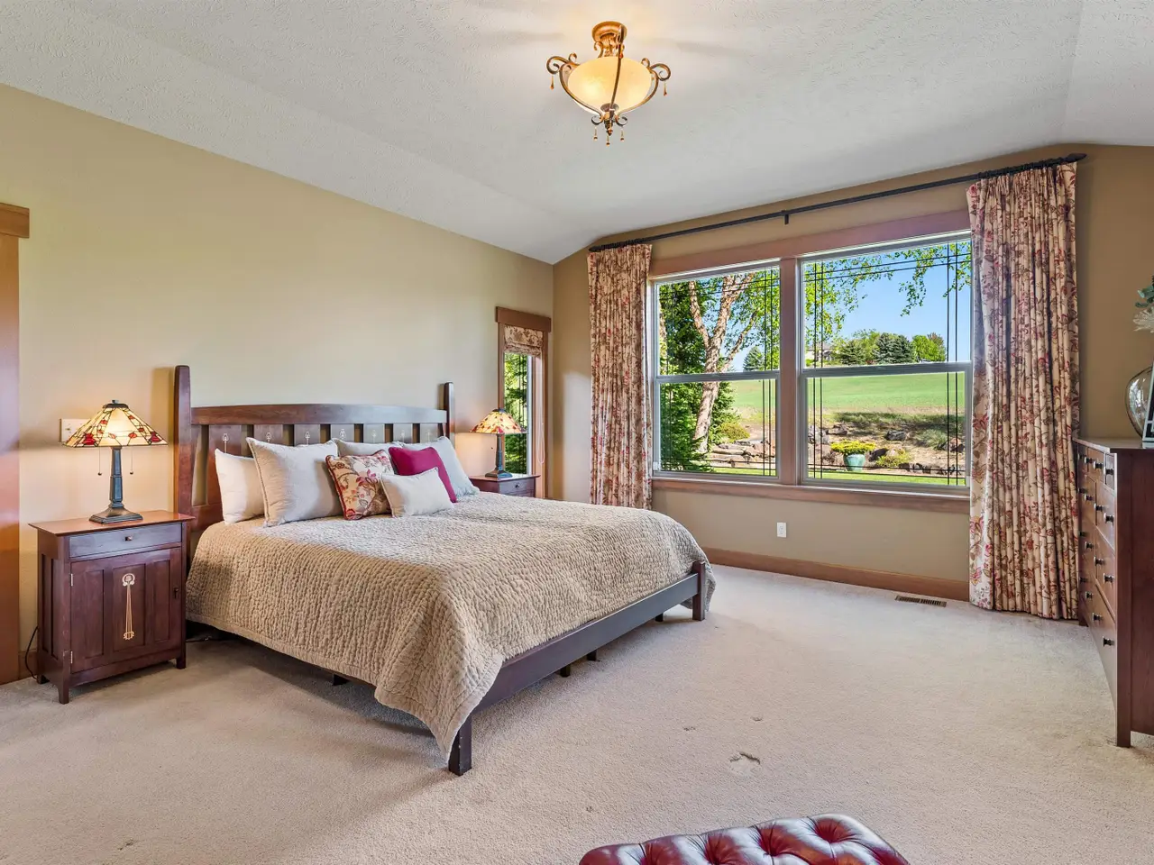 This stunning modern craftsman home, set on 10 acres, offers a unique blend of craftsmanship and contemporary design, creating a stylish yet functional living space while preserving the charm of the original style. An abundance of windows throughout showcases beautiful pastoral views, complemented by professional landscaping, fresh exterior paint, & breathtaking sunsets. The cozy atmosphere is enhanced by a striking stone fireplace, hardwood floors, exposed beams, and natural wood trim. The living, dining, and kitchen areas flow together seamlessly. The culinary kitchen boasts high-end stainless steel appliances, stone counters, two sinks, and a gas range. Main floor living includes a primary suite with doors leading to a patio, and an expansive laundry room offers ample storage. Upstairs, a versatile loft serves as an extra bedroom or reading nook, while the daylight lower level features two additional bedrooms, rec room, bar area and more storage. This remarkable home is a must-see!!