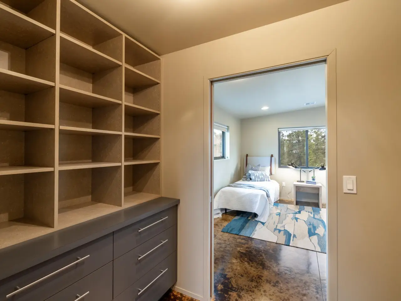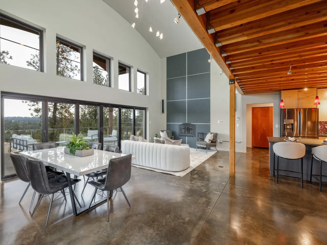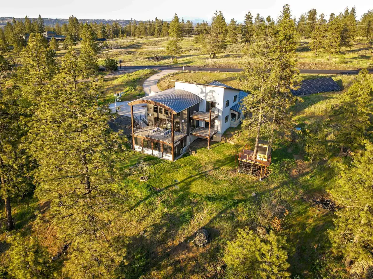 Intentional design of beauty, environment & nature. 85 acre natural area with miles of trails. Amazing property updates include brand new ext paint, new custom garage door & new gutters. Designed for the environment - solar panels, polished radiant heat concrete floors throughout, induction stove, central vac, metal roof, cement hardy board siding, & high efficiency windows & doors. Perfect blend of quality & style w/ a bright & open floor plan. Handcrafted wood & metal work. Spacious kitchen w/ oversized island, flamed granite counter tops, stainless steel appliances & ample cabinet space. Marvelous great room w/ accordion glass doors to full covered deck. Breathtaking views from every room. Main floor primary suite with private covered deck, large bath, walk-in shower, custom tub w/ walk-through closet leading to conveniently located main floor laundry & mud room. Every aspect of home built w/ quality & efficiency! A rare find close to downtown, airport & mother nature!