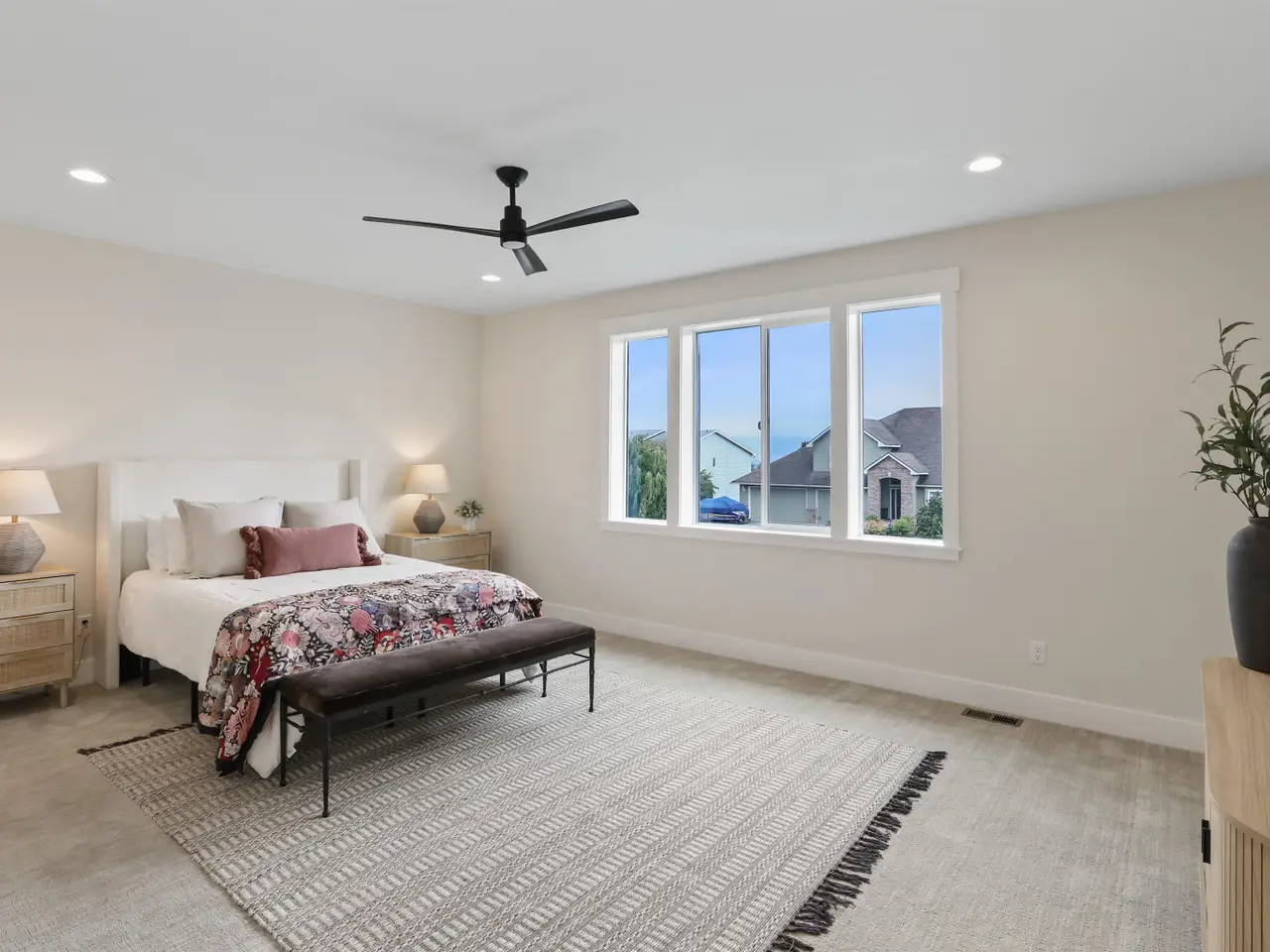 FALL FESTIVAL 2025! Brand New & Move-in Ready!! Introducing this contemporary daylight ranch home with stunning valley city light views from both levels. This professionally designed home features 3 bedrooms Plus an office on the main level. The gourmet kitchen boasts high-end Signature Kitchen Suite appliances, an island, pantry, and seamless flow to the living area. The spacious primary suite offers large double walk-in closets, dual vanities, freestanding soaking tub, walk-in shower, and direct access to the laundry room. Additional features include energy-efficient solar panels and Zip system construction for enhanced energy cost savings. The unfinished basement is framed, insulated, wired, ready for your personal touch. Home also is fully landscaped. MUST SEE! Finishing the basement would make a nice sized 5 bedroom, 3 bath home with room for theater room, family room and possible kitchenette.