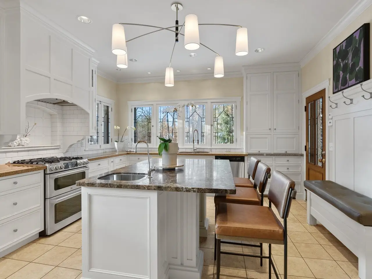 When it comes to location, this home has it, in the most coveted area of Rockwood/Hutton School. With luxury home architecture, this home is far from cookie-cutter & this home's uniqueness adds to the property value in spades. The manicured yard w/2 half circle driveways. The gorgeous entry, hand carved wood staircase, extensive molding, high ceilings & leaded glass windows. The woodwork in this house is art in of itself. Large den leads you into the living area through solid wood pocket doors. Living Room w/marble fireplace, custom drapery, wood floors & dental molding. The heart of the home, the Chef's kitchen w/high end appliances, granite & stone floors, adjoins the dining & family room. Outside is your backyard oasis, south facing paradise w/stretched patio. 2 staircases. Light & bright upstairs, w/wide halls & 5 huge bedrooms & 2 baths, Primary has en-suite bath w/walk-in closet. Basement has storage, rec room, updated laundry & bathroom with new floor, paint & light fixtures. This home is one of a kind!