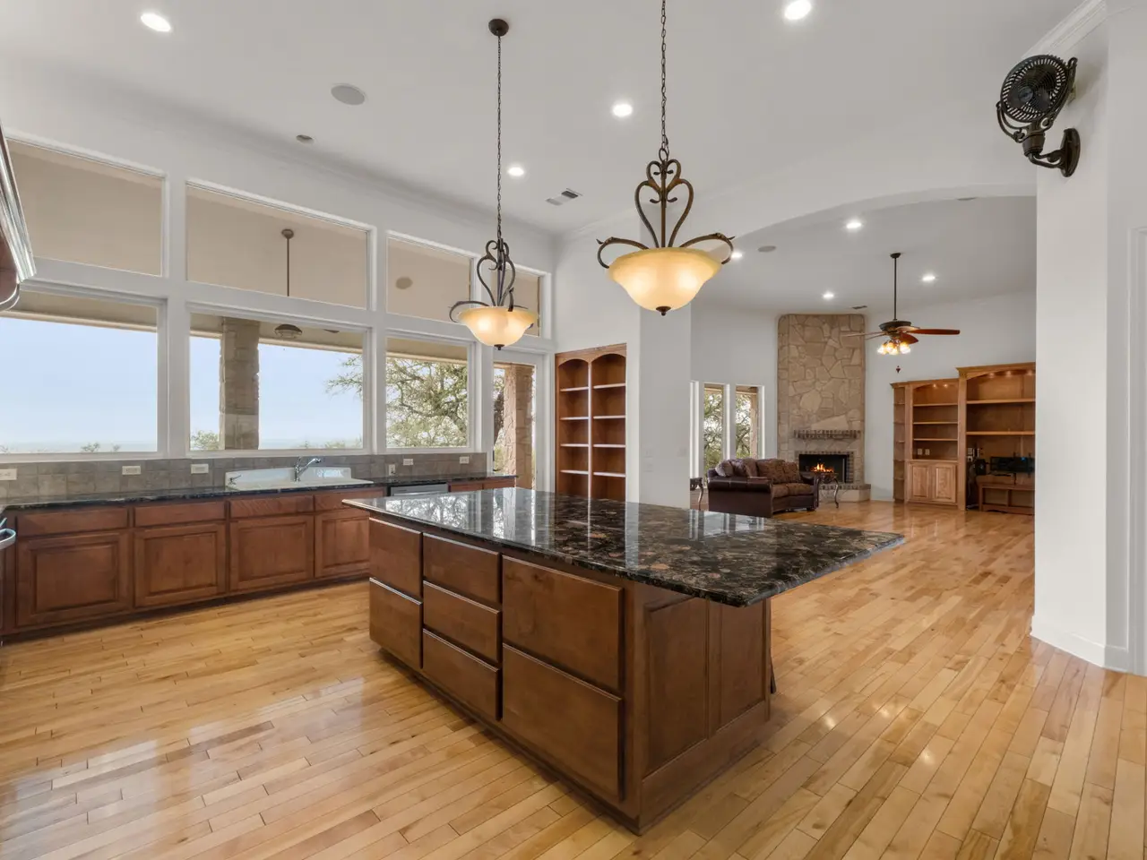 • Custom rock gas fireplace