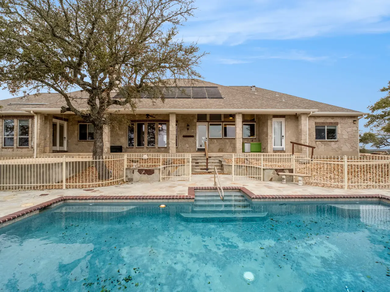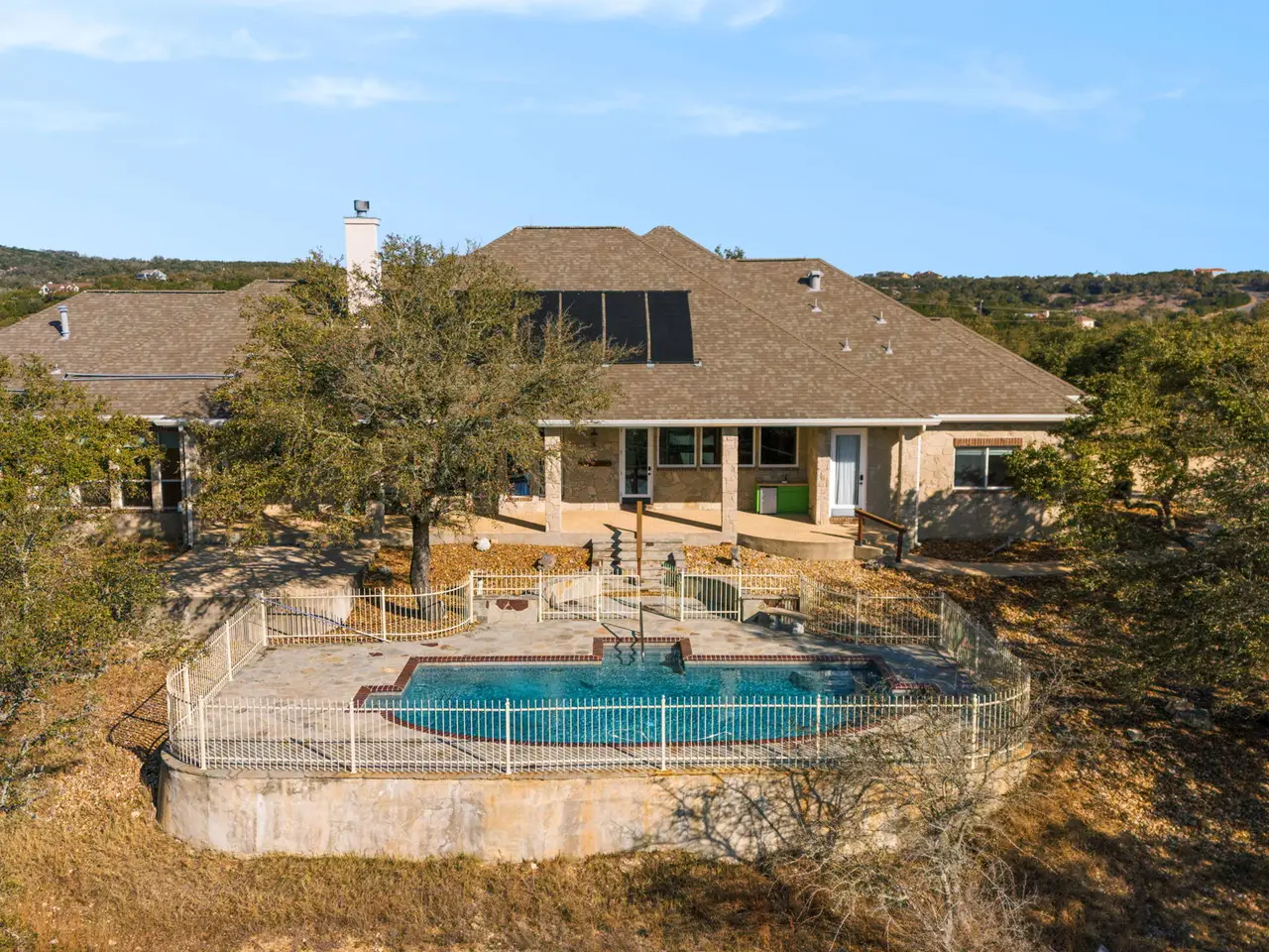 Tucked away in the rolling landscapes of Spring Branch, Texas, this Mike Dawson Custom Home is a symphony of luxury, comfort, and Hill Country charm. Set on over five private acres, this estate is designed for those who seek serenity without sacrificing sophistication. As you approach, the beauty of the natural surroundings sets the stage, offering a sense of peace and exclusivity. Step inside, and you®re greeted by soaring ceilings, pristine oak wood flooring, and walls of windows, flooding the space with natural light and framing breathtaking views of the rolling Hill Country terrain. The open-concept design creates a seamless flow-perfect for both grand entertaining and intimate family moments. The heart of the home is its gourmet kitchen, a culinary sanctuary thoughtfully designed for those who love to cook and entertain. Outfitted with a Five Star six-burner gas range, stainless steel double-door refrigerator, two dishwashers, and a built-in wine refrigerator, this kitchen blends high-end functionality with refined aesthetics. Granite countertops provide an elegant workspace, while the sink overlooks serene views of the resort-style pool and rolling Hill Country landscape. Just beyond, the formal dining room elevates every meal with its tray ceiling and refined ambiance, creating the perfect setting for intimate dinners or grand social gatherings. The main living area is nothing short of spectacular. Anchored by a custom rock gas fireplace, it exudes warmth and elegance, inviting gatherings, conversations, and cozy evenings by the fire. Thoughtfully designed custom built-ins add both character and functionality, while a state-of-the-art intercom system ensures effortless connectivity throughout the home. For those who cherish entertainment, the media room with a projector setup offers the ultimate retreat for movie nights, game-day excitement, or fun-filled sleepovers-a dedicated space designed for pure enjoyment. The primary suite is a sanctuary unto itself-a masterfully designed retreat that indulges the senses. A dual-sided gas fireplace flickers softly between the bedroom and spa-like en-suite bath, setting the tone for romantic evenings and tranquil mornings. The oversized soaking tub, spacious walk-in shower, and dual vanities create a lavish, spa-inspired experience, while the expansive walk-in closet offers ample storage and organization, ensuring every detail is effortlessly in place. A beautifully appointed guest house provides a luxurious yet inviting space for friends and family, featuring three bedrooms and two bathrooms, including a Jack-and-Jill bath with a glass-enclosed shower. Whether hosting overnight visitors or extended stays, this separate retreat ensures comfort, privacy, and style. Stepping outside, the true magic of this estate unfolds. With its rolling topography, mature live oak trees, and resort-style pool, this home offers an unparalleled connection to nature. Spend mornings savoring coffee on the covered patio, afternoons basking in the Texas sun by the pool, and evenings unwinding beneath a canopy of stars. Beyond its secluded setting, this estate is perfectly positioned-offering both privacy and convenience, with dining, shopping, and entertainment just minutes away. A home of this caliber and craftsmanship is a rare find. From its timeless design to its breathtaking surroundings, 1069 Fawn River Dr. is a Texas Hill Country experience waiting to be embraced. - 7/31/2025 8:00:48 AM