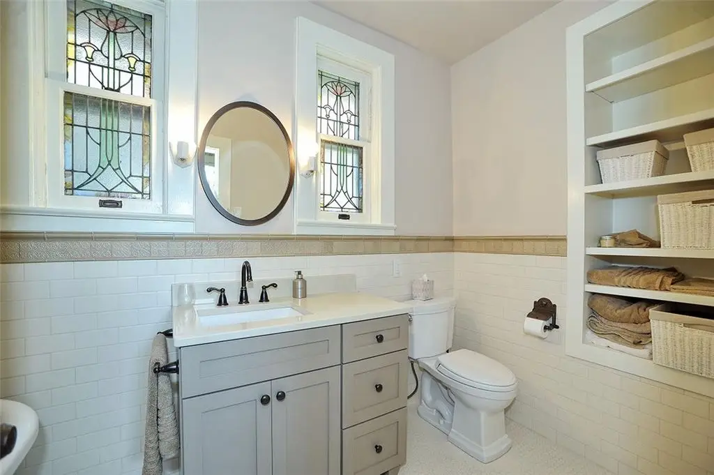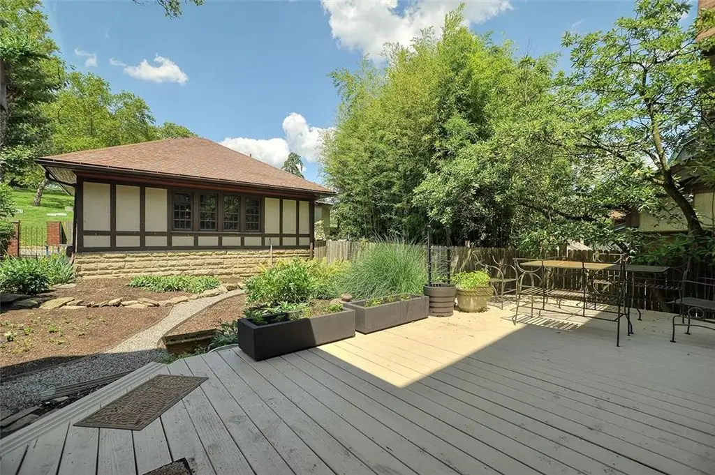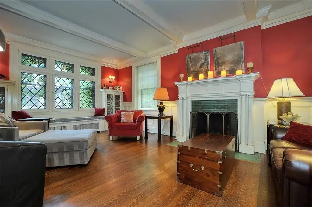 Stone & Stucco Tudor Residence features 6 BR's, 3.5 Baths, Tiled Vestibule Entry, Center Hall with Extensive Woodwork, Stained & Leaded Glass, Original Bronze & Glass Light Fixture; Handsome, Rich Woodwork w/Beamed Ceiling, Fireplaces, Built-in Cabinets w/Leaded Glass & window Seating; Natural woodwork, Wainscoting, & wood Paneled Walls. Kitchen Cherry Cabinets, Gas Cooktop, & SS Appliances. Kitchen opens to 1st Floor Family Room that opens to Outdoor Large Deck & Backyard; Pwd. Rm. on 1st floor too; NEW ROOF (2024); Charm & Character Abound throughout this Gracious home! 2nd floor (4) Bedrooms includes Updated Master Bath w/Oversized Walk-in Shower & Diamond Paned Windows; The fourth BR on this living level of the home offers a Fireplace w/Rockwood Tiles; Tooled & Painted Leather Mural. Sun Room & En-suite Remodeled Bath w/Claw Footed Tub, blt-in Shelving & Stained Glass Window! 3rd Floor three add'l rooms with Pine Floors and Natural Light! Oversized 2 Car Garage w/storage space!