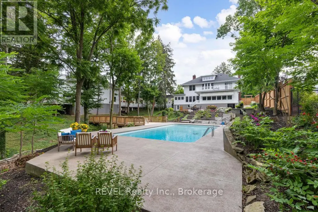 WELCOME TO YOUR LUXURY DREAM HOME IN NIAGARA! Stunning, private and exclusive Family Estate, set on fully fenced 2 acres in the heart of the City, has been beautifully updated throughout. Designed and built by Custom Builder Pym & Cooper PLUS rarely offered new Carriage House with 4 pad heated garage and lrg 2nd floor apartment w/ open design and soaring vaulted ceiling. This outstanding property is set on a beautiful sprawling ravine lot, with breathtaking nature and WATER views, your own private walking trails. Nestled amongst an enclave of Executive homes, backing onto 12 Mile Creek on prestigious Hillcrest Avenue, featuring the highest quality craftsmanship, exceptional millwork and luxurious design details. No expense has been spared! Main house with beautiful entry, large foyer and dramatic staircase, custom Chef's gourmet Kitchen and DR w/high end appl's, w-i pantry, quartz. Formal Living Room w/ custom cabinets, fireplace, white oak flooring thruout, custom lighting, French drs, Office with f.p., lrg Family rm w/custom bookshelves, wet bar, wall to wall windows overlooking spectacular water views, i.g. heated pool, scenic nature. 4 lrg bedrooms including Primary suite with spa like ensuite, f.p, w/o to private balcony. 3rd floor Loft with pine vaulted ceiling. Impressive fin. LL w/ Recrm, f.p., walkout, wine cellar, 3 pc bath, and plenty of storage. Carriage House heated garage w/ kitchenette, powder rm, f.p., walkout to large patio. 2nd floor of Carriage House features large open Greatrm, full kitchen, large bedroom, 3 pc. bath, laundry and storage. This setting is irreplaceable and only steps to the City's vibrant downtown, St. Catharines Golf Club, Montebello Park, PAC, Meridian Arena. Close to major highways, Ridley College, Brock U, Niagara Wine Region, Hospital, scenic parks, hiking and cycling trails, major airports. Perfect for family living and entertaining. Live your dream!