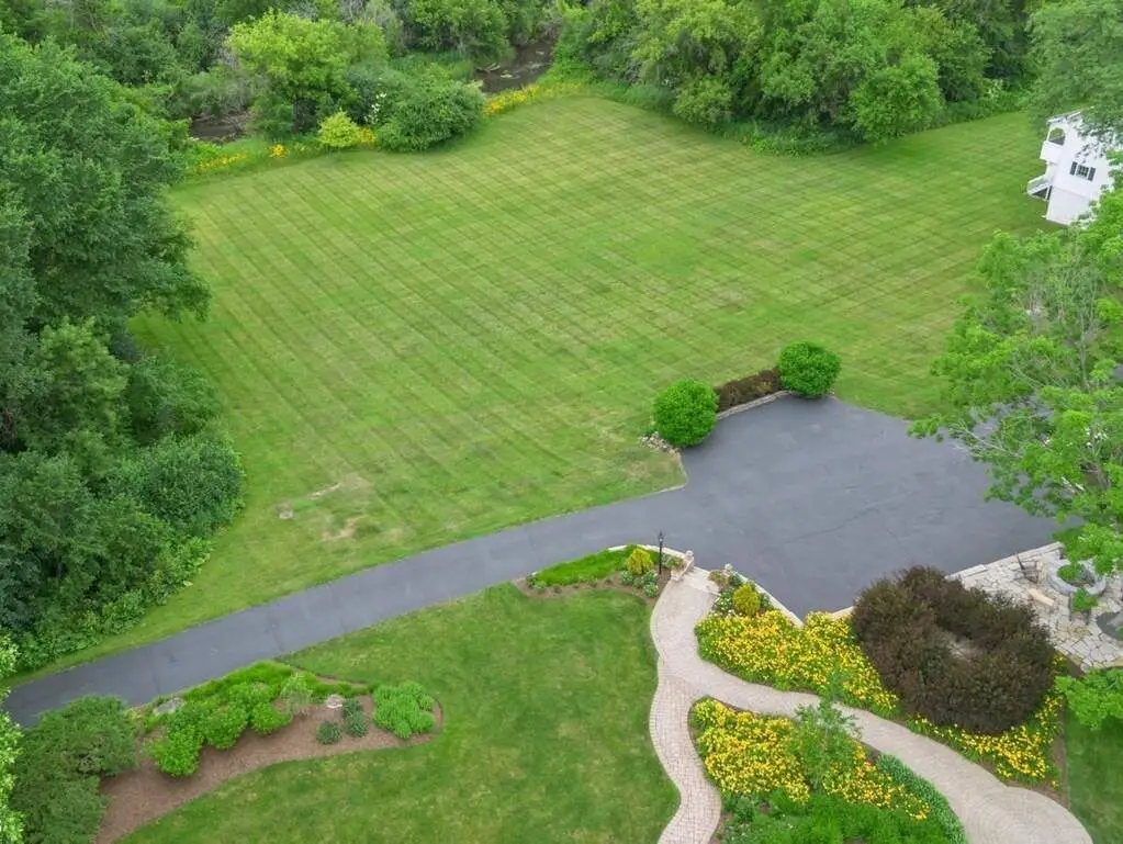An Architectural Masterpiece in the heart of St. Charles - Step into glamour and sophistication at the illustrious Masco Estate-an exquisite residence envisioned by renowned architect, Scholz Design, and masterfully constructed in 2003, this estate is perfectly positioned just 35 miles west of Chicago, this stately sanctuary is nestled in the storybook landscape of St. Charles, Illinois. Approach via a secluded private lane, crossing a picturesque bridge over the tranquil Ferson Creek, and pass through elegant wrought iron gates into a world of splendor. Set on over 9 lush acres of manicured grounds and flourishing gardens, this distinguished Burr Road estate presents an unmatched lifestyle offering both grandeur and serenity. At the heart of the property lies the principal residence, encompassing over 12,000 square feet of refined living across three impeccably finished levels, including a full walkout lower level. This estate artfully blends old-world craftsmanship with modern luxury. Upon entry, be captivated by a 22-foot soaring great room, framed by Palladian windows, adorned with two sparkling crystal chandeliers, and anchored by a stately fireplace set in rich marble. Gorgeous travertine flooring and woods flows throughout, guiding you into the bespoke gourmet kitchen-a chef's haven boasting extensive maple cabinetry, high-end appliances, gleaming granite countertops, and a sunlit breakfast nook with panoramic views. Architectural brilliance continues in the rotunda-style turret, showcasing a cozy fireplace and terrace access-perfect for intimate gatherings or quiet reflection. The lavish first-floor primary suite is a private retreat, complete with an opulent ensuite, sitting rooms, a wet bar, private patio, and a dedicated staircase descending to a private gym. The adjacent executive office/library is a study in refinement, featuring custom millwork, fireplace, and it's own tranquil and private patio overlooking the expansive side lawn-an ideal blend of form and function. Additional amenities include dual laundry rooms on the main and lower levels for effortless convenience. Upstairs, new wool carpeting leads to four generously proportioned ensuite bedrooms, each offering privacy and elegant finishes. An expansive covered veranda on this level provides sweeping views and a perfect setting for entertaining. The walkout lower level is a destination in itself-designed for hosting and relaxation with a handcrafted Irish-imported oak bar, climate-controlled wine cellar, recreation spaces, gym, vault room, two fireplaces, and a full bath. Outdoors, this estate is equally impressive. Lounge by the resort-style pool and hot tub (with new liner and cover in 2023), entertain on the two-tiered stone terrace and loggia, or gather around the cozy fire pit. For the sports enthusiast, enjoy tennis, basketball, and pickleball courts-resurfaced in 2025 for basketball, pickleball and tennis -- all within your own private grounds. A highlight of the estate is the remarkable 2,450-square-foot Bank Barn, ideal for a home business, studio, or future guesthouse. Once a single family home & office (has it's own address), this barn has five bedrooms, three bathrooms and two kitchens. Featuring 24-foot vaulted ceilings, a dramatic balcony with sunset views, walkout lower level, and an attached garage, the barn is a separate three-car garage with epoxy flooring, AC, and a finished loft. Perfectly positioned with two private entrances, this one-of-a-kind estate offers close proximity to PGA event courses such as Medinah Country Club, St. Charles Country Club, The Hawk Country Club, Dunham Woods Riding Club, Leroy Oaks Forest Preserve, the Randall Road corridor, and the private DuPage Airport-all within the acclaimed St. Charles School District 303. This is more than a home-it's a legacy property and a rare opportunity to own one of St. Charles' most iconic estates. Call to schedule your private showing today.