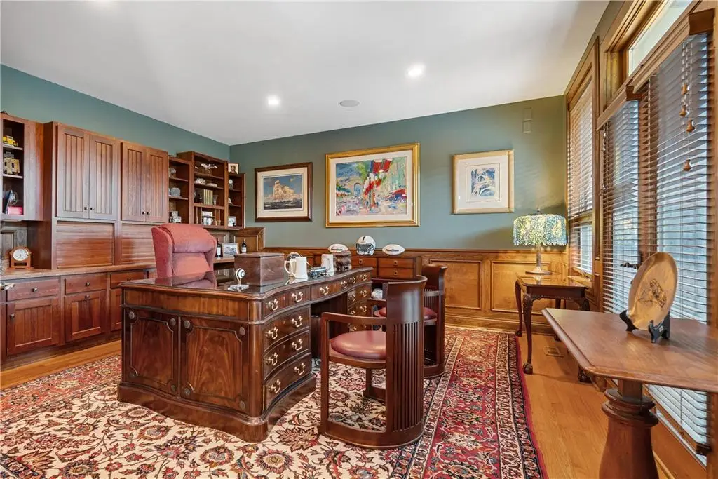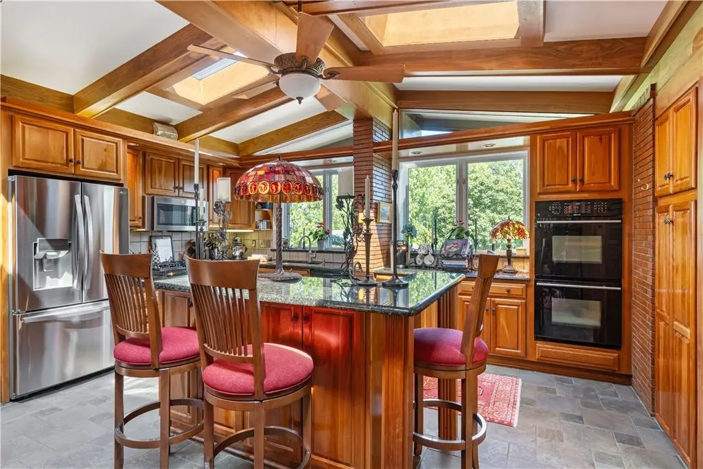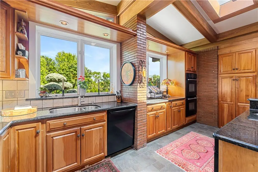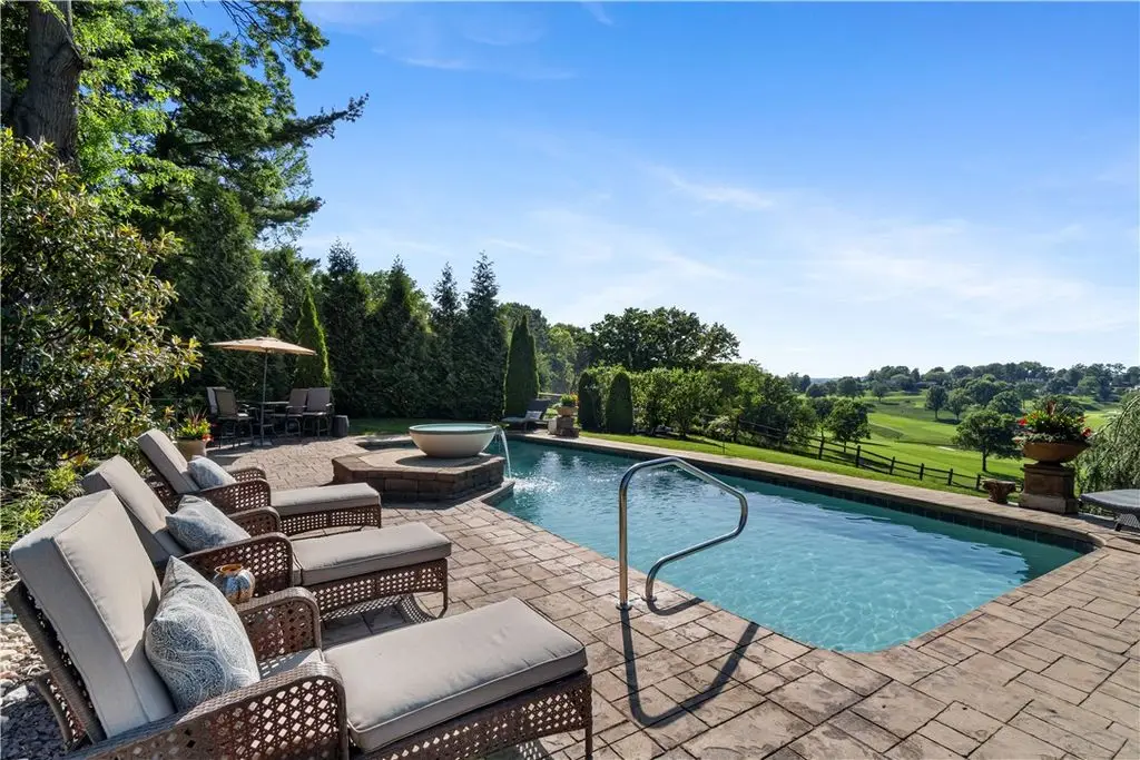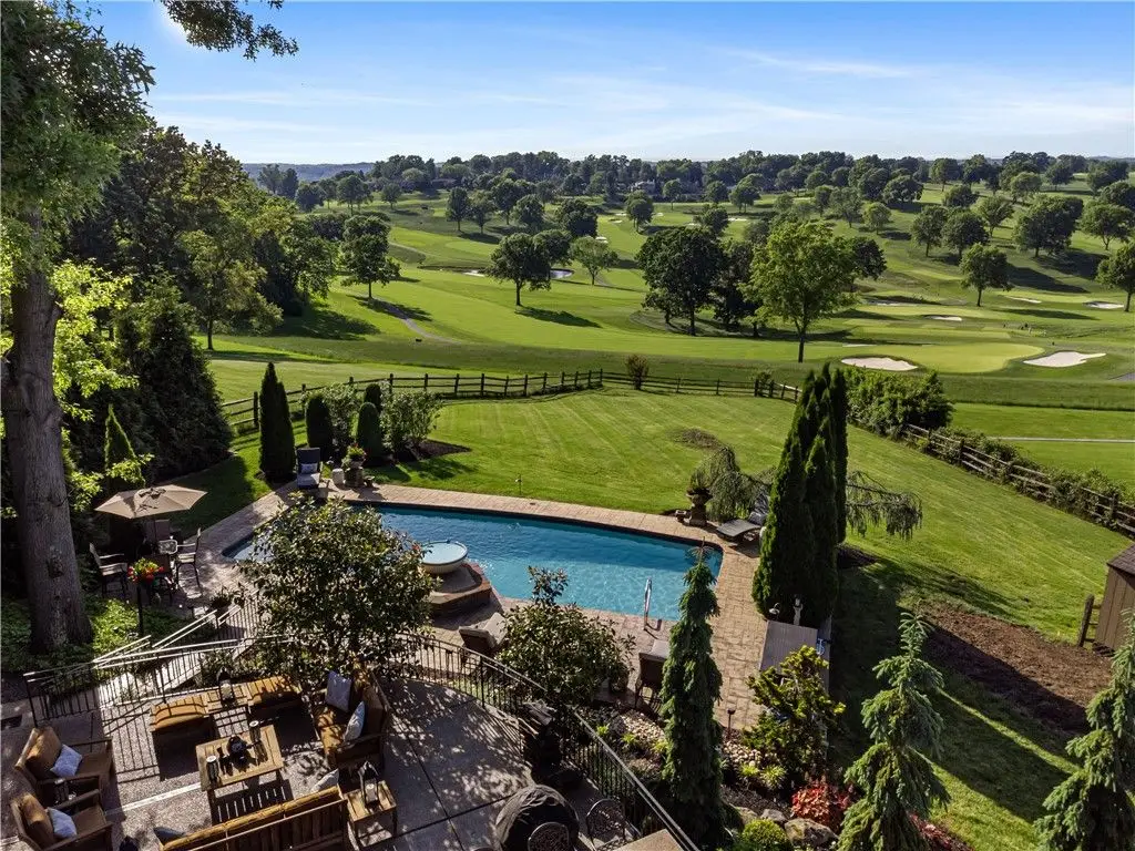 Perched overlooking St. Clair Country Club, this luxurious listing offers unparalleled views. Inspired by the iconic architectural style of Frank Lloyd Wright, the home exudes sophistication. Set on over an acre of land, the home boasts professionally landscaped gardens creating a picturesque setting for entertaining. Step down to the saltwater pool with stunning westerly views of the golf course and front-row seats for 4th of July fireworks. The home's open floor plan effortlessly blends living, dining, and kitchen areas, creating an optimal living/entertaining footprint. A copper fireplace serves as a focal point in the living area, adding warmth and charm. Expansive windows flood the interior with natural light. Retreat to the master suite with gas FP, multiple walk-in closets and a vast bath. The LL game room, with wet bar/home theater, provides the perfect setting for entertaining or family nights. Enjoy working from home in the beautiful office space overlooking private patio.