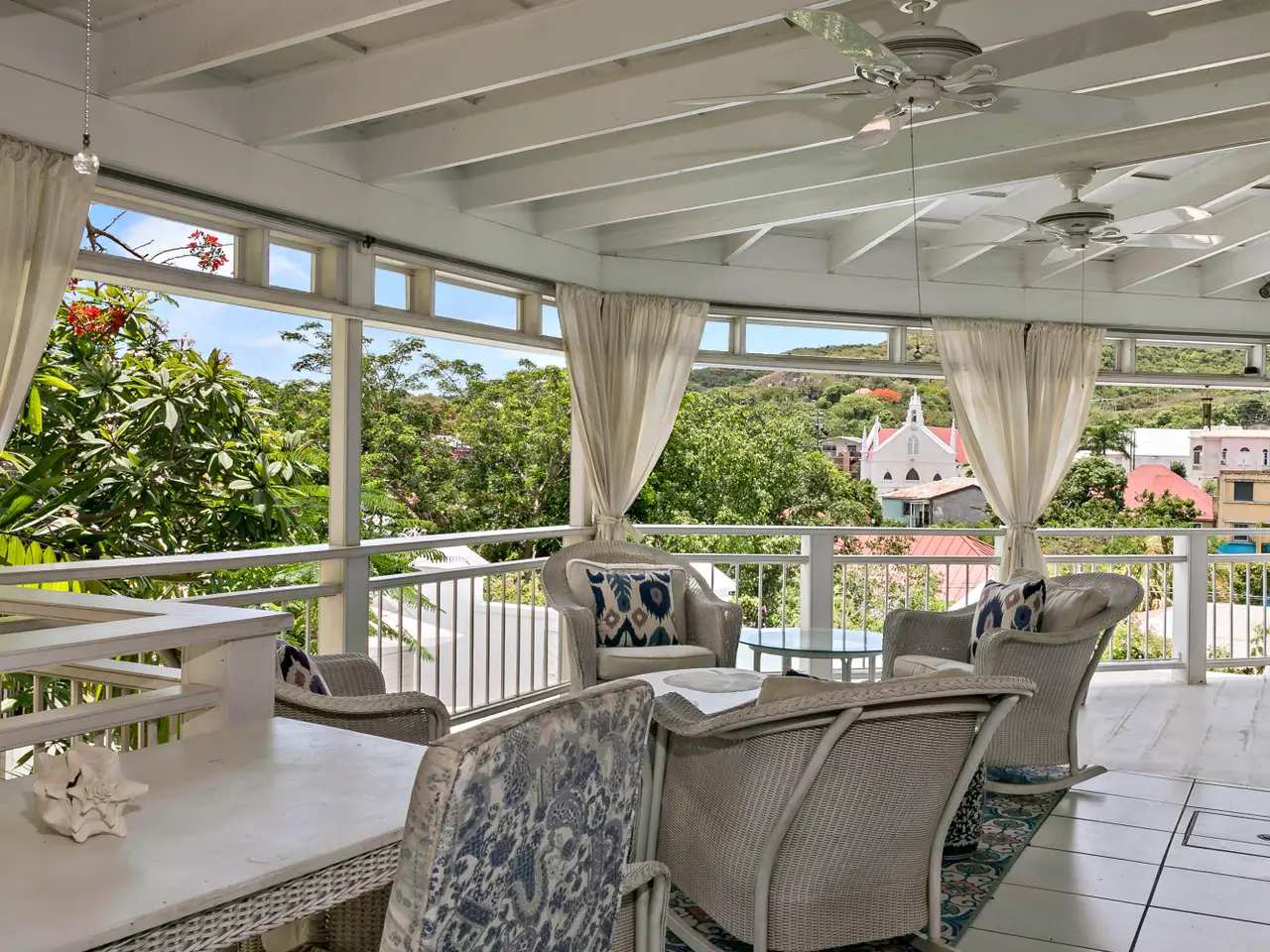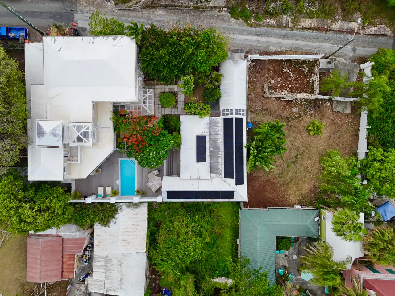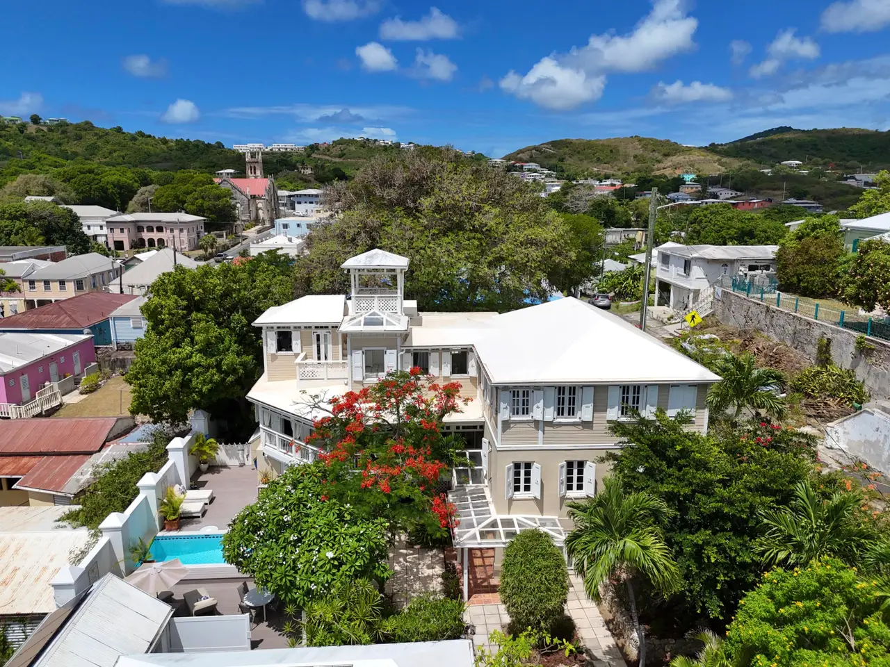 A rare chance to own a historic retreat in Christiansted with sweeping harbor views and timeless appeal. The main house dates to the early 1800s, and the guest house to the mid 1700's. This spacious one-of-a-kind property blends rich character with unmatched potential and the beautifully landscaped courtyard with pool area ties it all together. Unique construction details include repurposed ship timber beams and brickwork made from ship ballast. Zoned for commercial use, it features over 6,000 sq ft of flexible interior space--perfect for a boutique hotel, spa, office suites, or creative retail concepts. Features include garage, solar w/ batteries and lots of storage space. The extra lot can be redeveloped; or used for parking. Architectural plans are included.Welcome to a truly exceptional property in the heart of Christiansted an elevated historic estate that masterfully combines old-world craftsmanship with flexible, modern-day commercial and residential potential. With a commanding position above the town, no downtown parking hassle, this 1800s-era property offers panoramic views of Christiansted Harbor, just around the corner from the vibrant waterfront, fine dining, galleries, and historic landmarks that define St. Croix's charm.