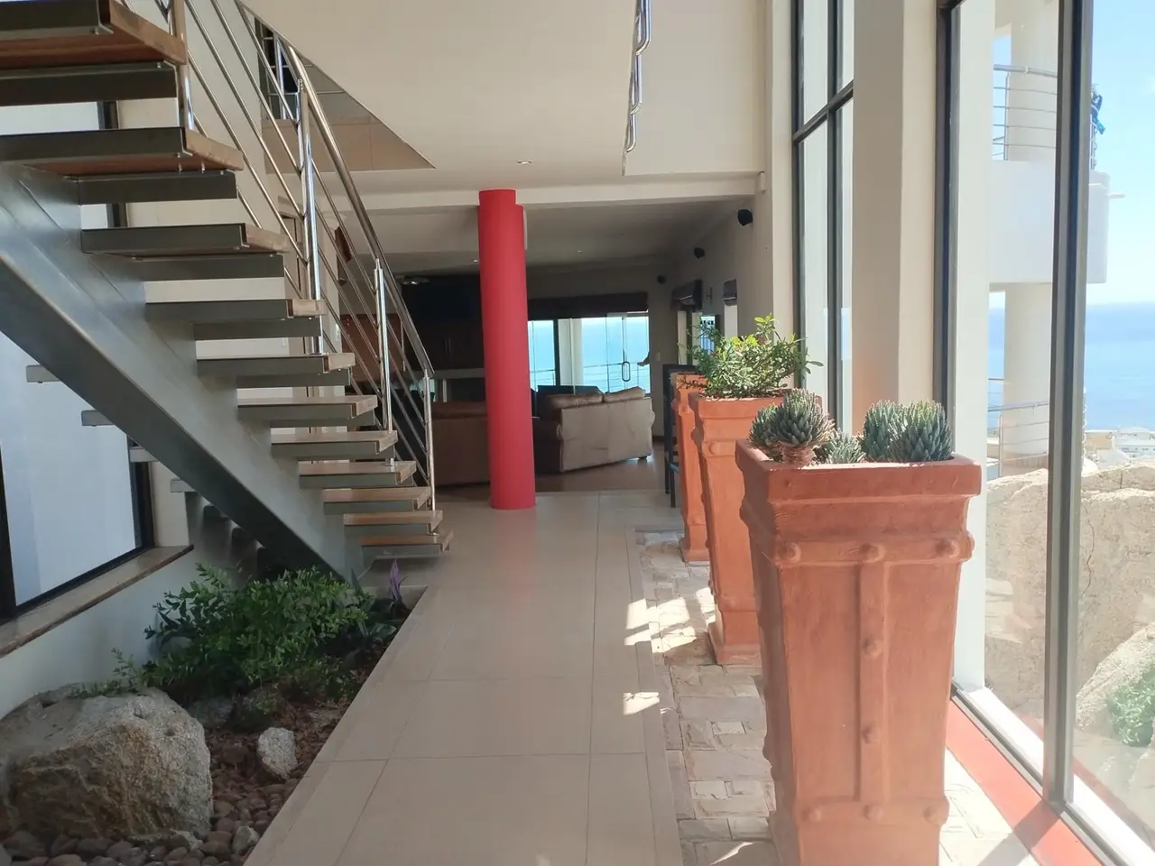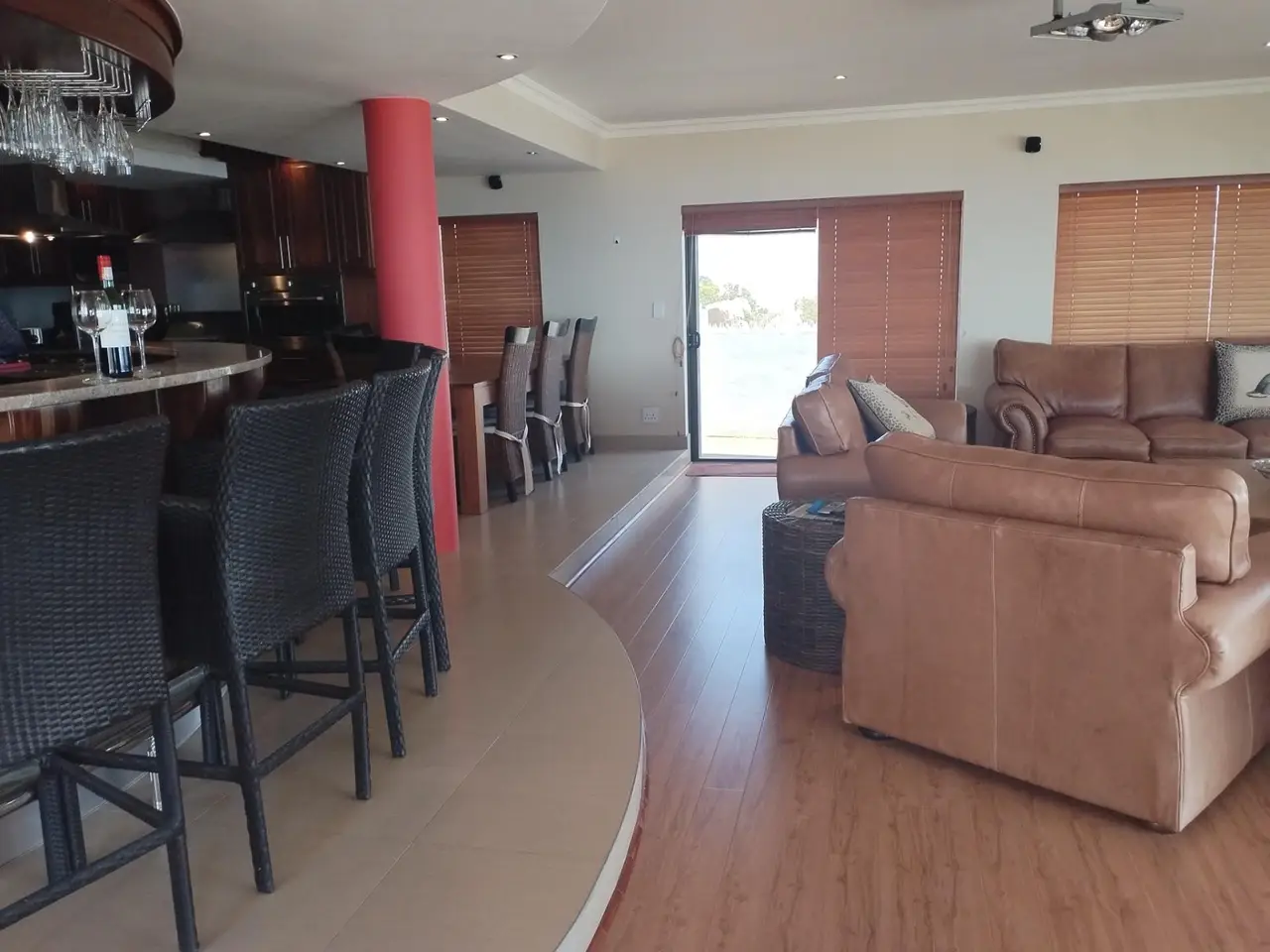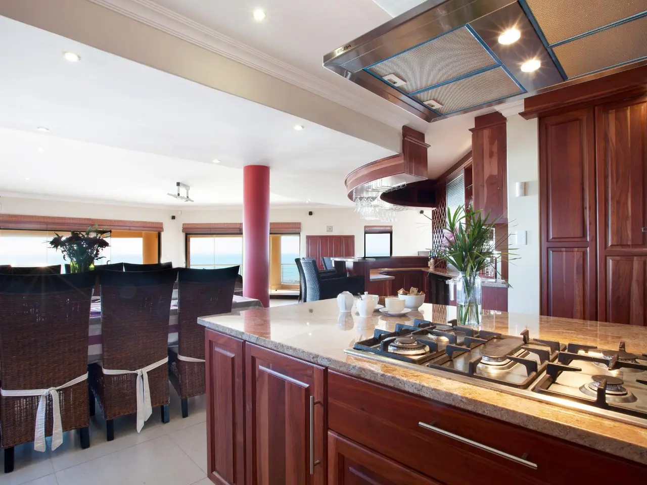 This is a dream coastal retreat featuring indescribably breathtaking ocean views. Where the Pacific Meets Perfection with Unrivaled Ocean Panoramas. This architecturally brilliant home was designed for the view, with a seamless layout in every room to maximize the breathtaking scenery. The breathtaking views are beautifully complemented by the stylish design and modern finishes inside. When stepping inside, the breathtaking views immediately command your attention through a magnificent, feature-sized window. Seamlessly connecting from the entry, the open-plan living area is an entertainer's paradise. It features a fitted bar and a central, double-sided built-in braai that effortlessly serves both the interior and exterior, making it an ideal entertainment hub. Settle in and enjoy the magnificent views as a modern gas fireplace provides the perfect warmth and cozy ambiance for your winter evenings. The gourmet kitchen effortlessly blends into this space, showcasing elegant granite countertops, a five-burner gas hob, rotisserie, and a built-in grill paired with an Elba gas oven. With all these extra appliances at your disposal, you'll be perfectly equipped to create a culinary feast. Chefs will appreciate the oversized, hidden scullery, keeping the main entertaining kitchen pristine and ready for guests. Separated only by stylish glass windows, the open-plan area flows seamlessly into the enclosed Jacuzzi space. This remarkable sanctuary is fit for royalty, allowing you to soak in luxury, sip your favorite drink, and enjoy the unbelievable views right from the tub. The journey upstairs, crossing the striking designer walkway, is rewarded with another awe-inspiring panoramic view. You'll discover four spacious bedrooms, each complete with its own private en suite bathroom. Four of the five bedrooms are appointed with fitted king-sized beds. The main bedroom is your personal sanctuary: a generous retreat with a luxurious, open-plan bath area. Here, you can indulge in the spa bath while the ocean vistas become your private backdrop. You will also find a luxurious fireplace, perfect for setting a cozy, upscale ambiance. This property also boasts a stylish flatlet, complete with open plan kitchen and bedroom with en suite bathroom. The expansive garage offers generous four-vehicle capacity, including an extra-tall door perfectly sized to accommodate a boat or RV. This is a turnkey property, sold complete with all high-quality furniture and appliances throughout the house, making your move effortless. Beyond the listed features, this property has an abundance of extras that truly enhance the offering. The layout and features make this an ideal property for operating a guesthouse. Chas Everitt Shared Mandate Viewings by appointment only.