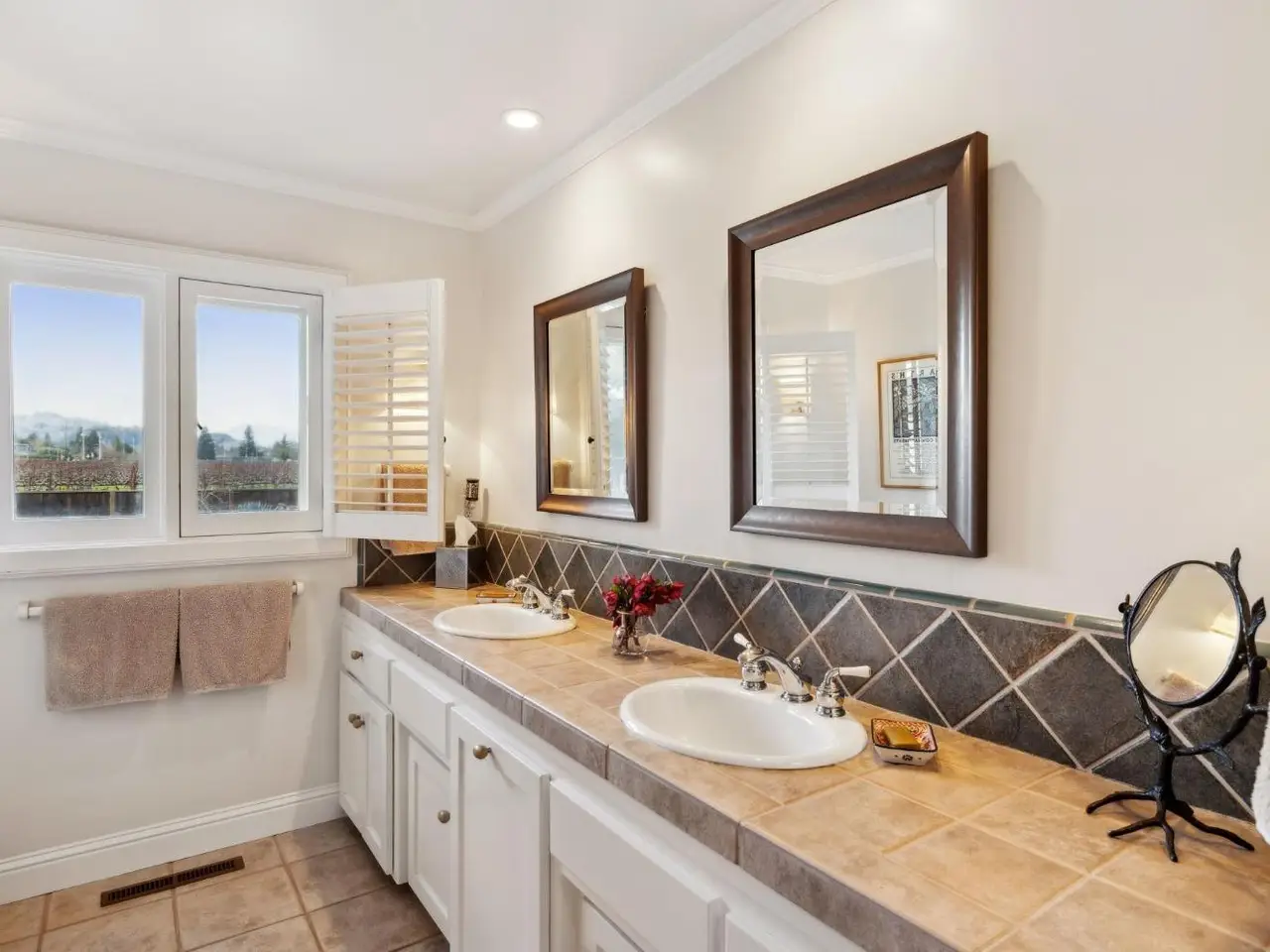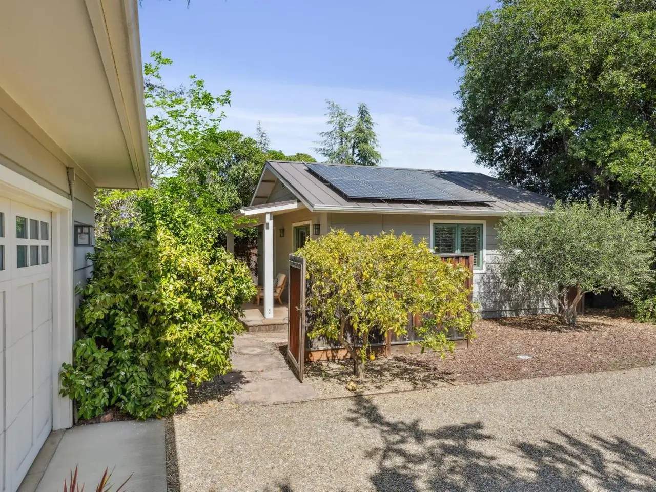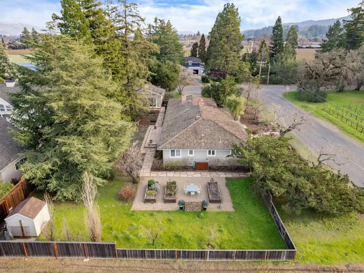 Nestled in an ideal St. Helena location, this beautiful single-story home offers panoramic vineyard and valley views on a spacious half acre lot. Thoughtfully designed for both comfort and style, this property blends modern upgrades with timeless charm. Step inside to a bright living room, where a custom ceramic fireplace sets the perfect ambiance for cozy evenings. The beautifully remodeled kitchen has elegant granite countertops and ample space for cooking. Designed with energy efficiency in mind, this home features SunPower solar panels and back up battery, keeping PG&E bills to a minimum. The oversized two-car garage includes an electric vehicle charger, while the side yard offers raised vegetable beds, an ideal retreat for gardening enthusiasts. Host gatherings in the formal dining room, which opens through double doors to a spacious covered flagstone patio, perfect for dining and soaking in the serene surroundings with redwood trees and vineyard views. The main house includes 3 bedrooms and 2.5 bathrooms, providing a comfortable and functional layout for everyday living. There is also a detached 1 Bedroom/1 Bath guest house with full kitchen & family room -ideal for visitors, extended family, or potential rental income.This is an exceptional home in the heart of St. Helena!