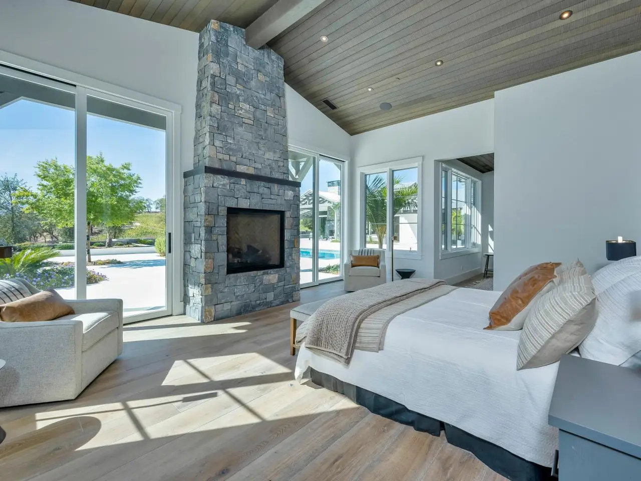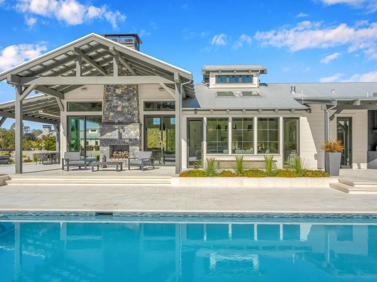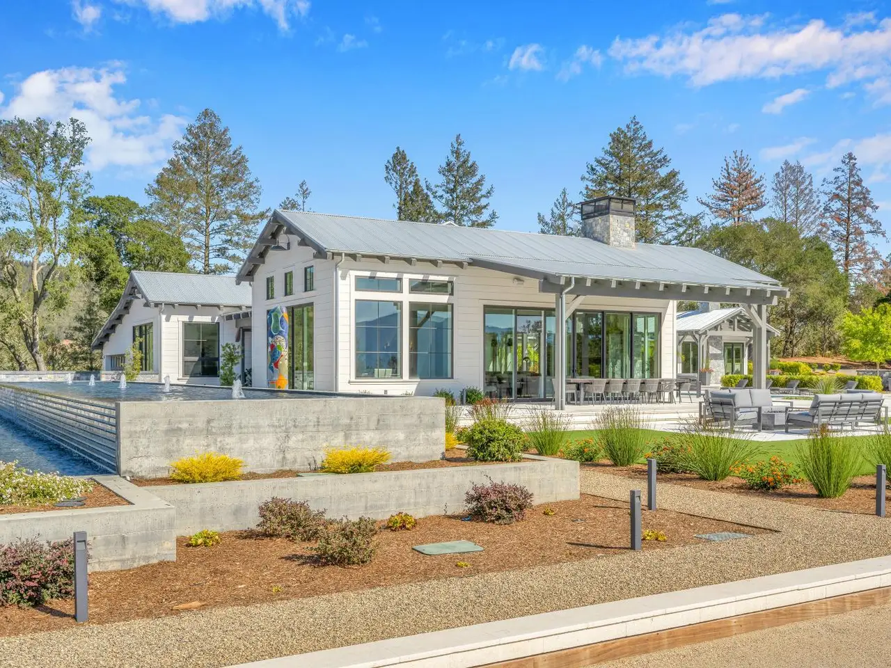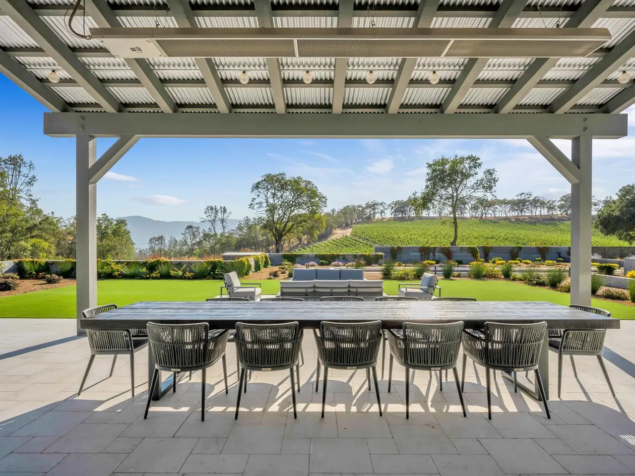 A luxury estate set on 8.04 acres across from the famed upper ridge vineyards of Joseph Phelps, this property has been meticulously designed to maximize privacy, capture vineyard vistas, and harmonize with the surrounding topography. The 7,920 sq. ft. main residence showcases four bedrooms and is constructed with the highest quality materials and finishes. Inside, the home features a dramatic great room, a true chef's kitchen, office/study, walk-in wine cellar, media lounge, and a primary suite with its own private entry lounge. A secondary 1,200 sq. ft. dwelling offers two bedrooms, a full kitchen, living room, and covered patios at both the front and back, providing ideal accommodations for guests. Outdoor living is equally compelling, with more than 2,600 sq. ft. of covered space designed for seamless indoor/outdoor living. Expansive limestone patios lead to a fully equipped outdoor kitchen with pizza oven, resort-style pool and spa, two firepits, an outdoor fireplace, and a bocce courtall thoughtfully crafted for both intimate gatherings and large-scale entertaining.