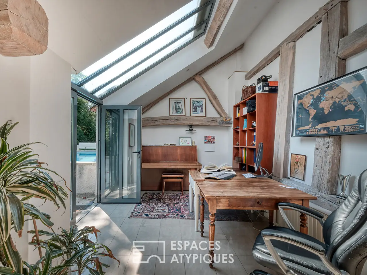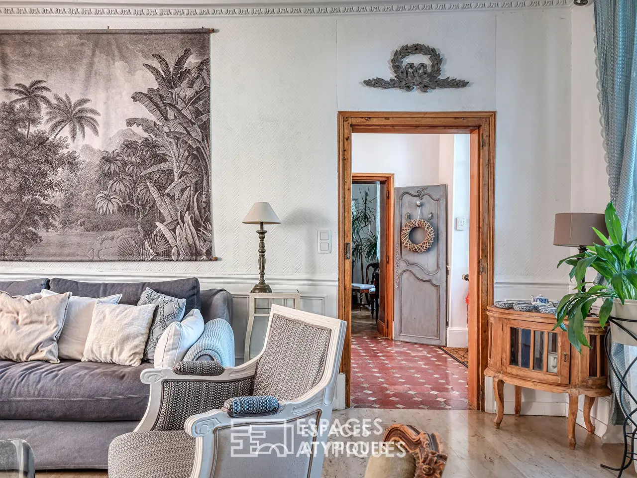 Nestled in Saint Jean Le Blanc in a green setting, this elegant 19th-century mansion and its renovated barn form a rare ensemble, at the crossroads between family life, a hospitality project or a charming second home, just 6 minutes from the center of Orleans. The main house, spread over three levels, reveals, as the visit progresses, a warm and refined atmosphere. From the entrance, the period floor tiles set the tone. The gaze rises, captures the volumes, the natural light, and lingers on the details: here, nothing has been left to chance. The intimate and bright living room seduces with its delicate moldings, its old fireplace and the softness of its ambiance. Continuing on, the dining room enhanced by a herringbone parquet floor leads us to the adjoining kitchen which combines aesthetics and functionality. Upstairs, a large landing leads to three bedrooms bathed in light and the bathroom, offering beautiful volumes and a peaceful atmosphere. The top level accommodates three additional bedrooms and a bathroom. This versatile floor can easily adapt to the needs of a large family or to more personal uses: master suite, office, games room or artist's studio. An old barn from the 22nd century, attached to the main house, has undergone an elegant transformation. Behind its preserved facade, it now hides a contemporary space with generous volumes. It has a kitchen and a master suite with its private bathroom, on the ground floor, then a living room and two bedrooms and a bathroom, upstairs. With a completely independent entrance, this second home adapts to all desires: welcoming family or friends in absolute comfort, hosting a tourist or professional project, or even imagining a place of creation. 6 minutes from the center of Orleans. 1 hour 45 minutes from Paris. ENERGY CLASS: D CLIMATE CLASS: D Estimated average amount of annual energy expenditure for standard use, established from energy prices for the years 2021, 2022, 2023: between EUR6,070 and EUR8,270 per year. Contact: Aurelie 07 85 68 18 28 Commercial Agent (EI) RSAC ORLEANS: 800 223 190 REF. 00730EAO Additional information * 12 rooms * 9 bedrooms * 4 bathrooms * Outdoor space : 4655 SQM * Property tax : 3 722 € Energy Performance Certificate Primary energy consumption d : 175 kWh/m2.year High performance housing