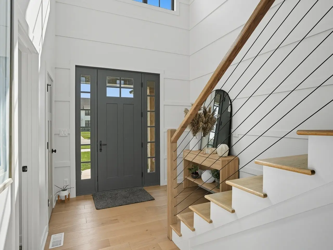 Why wait to build when you can move right into this nearly new showstopper of a home! Step through the foyer and be greeted by a striking modern staircase and custom accent wall. The heart of the home is the stunning 2-story great room, complete with a floor-to-ceiling fireplace, seamlessly flowing into the gourmet kitchen with an oversized island, stainless steel appliances, and a spacious walk-in pantry. The main-level primary suite offers a spa-like ensuite with an oversized shower and a custom walk-in closet. A laundry room, stylish half bath, and mudroom with custom designed bench complete the first floor. Upstairs, you'll find four generously sized bedrooms with walk-in closets, a versatile loft area, and a full bath. Step outside to the covered patio overlooking the large fenced-in yard-perfect for entertaining and relaxation. Additional highlights include a 3-car garage with epoxy floors, Aquasana whole-home water filtration, sump pump with WiFi battery backup, customized shades, casement windows, irrigation system, dual furnaces and AC units, and distinctive finishes throughout making this home truly one-of-a-kind!
