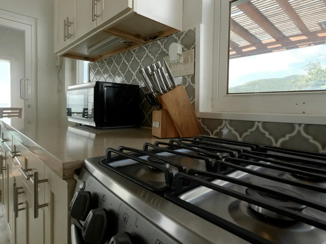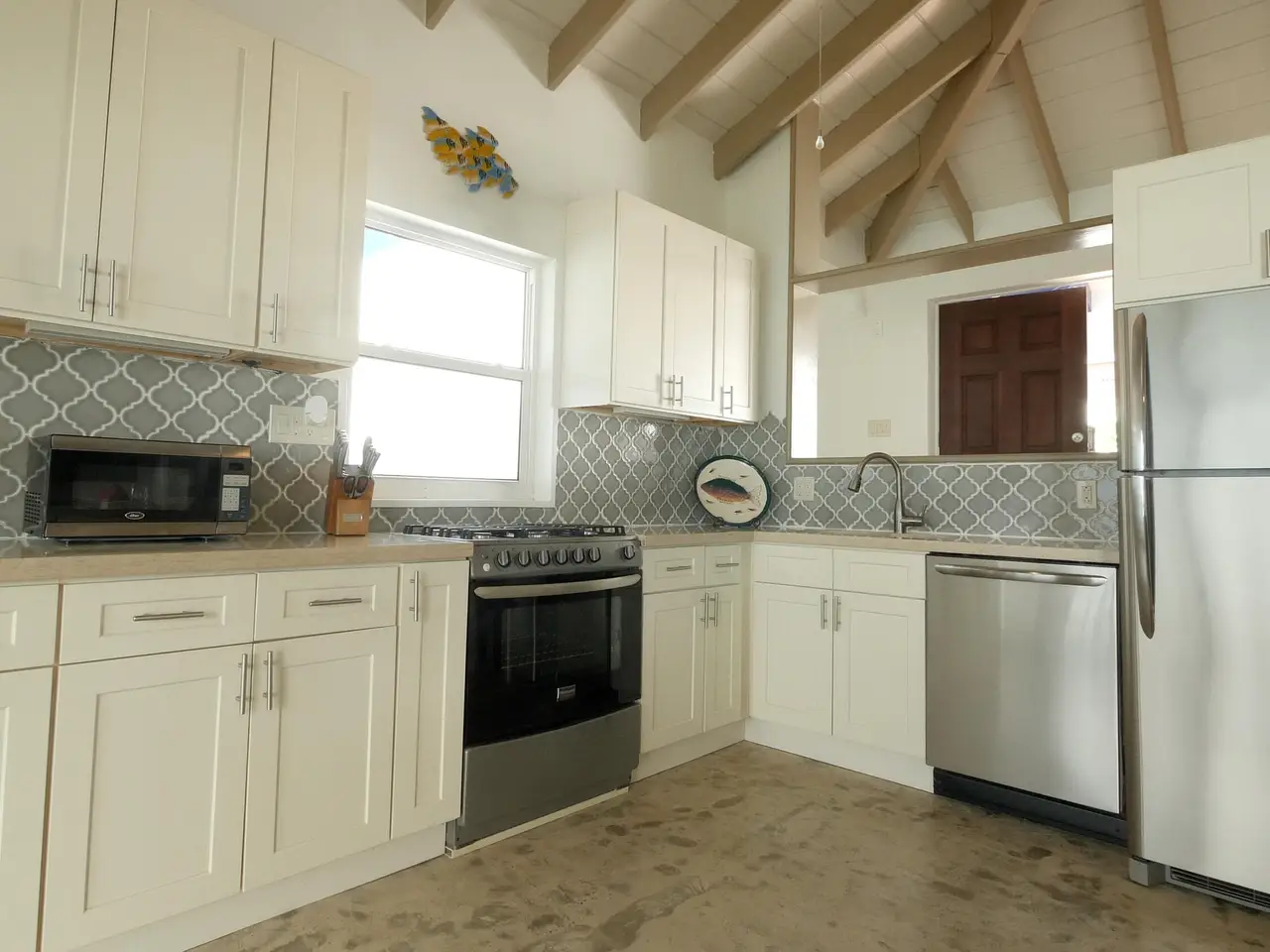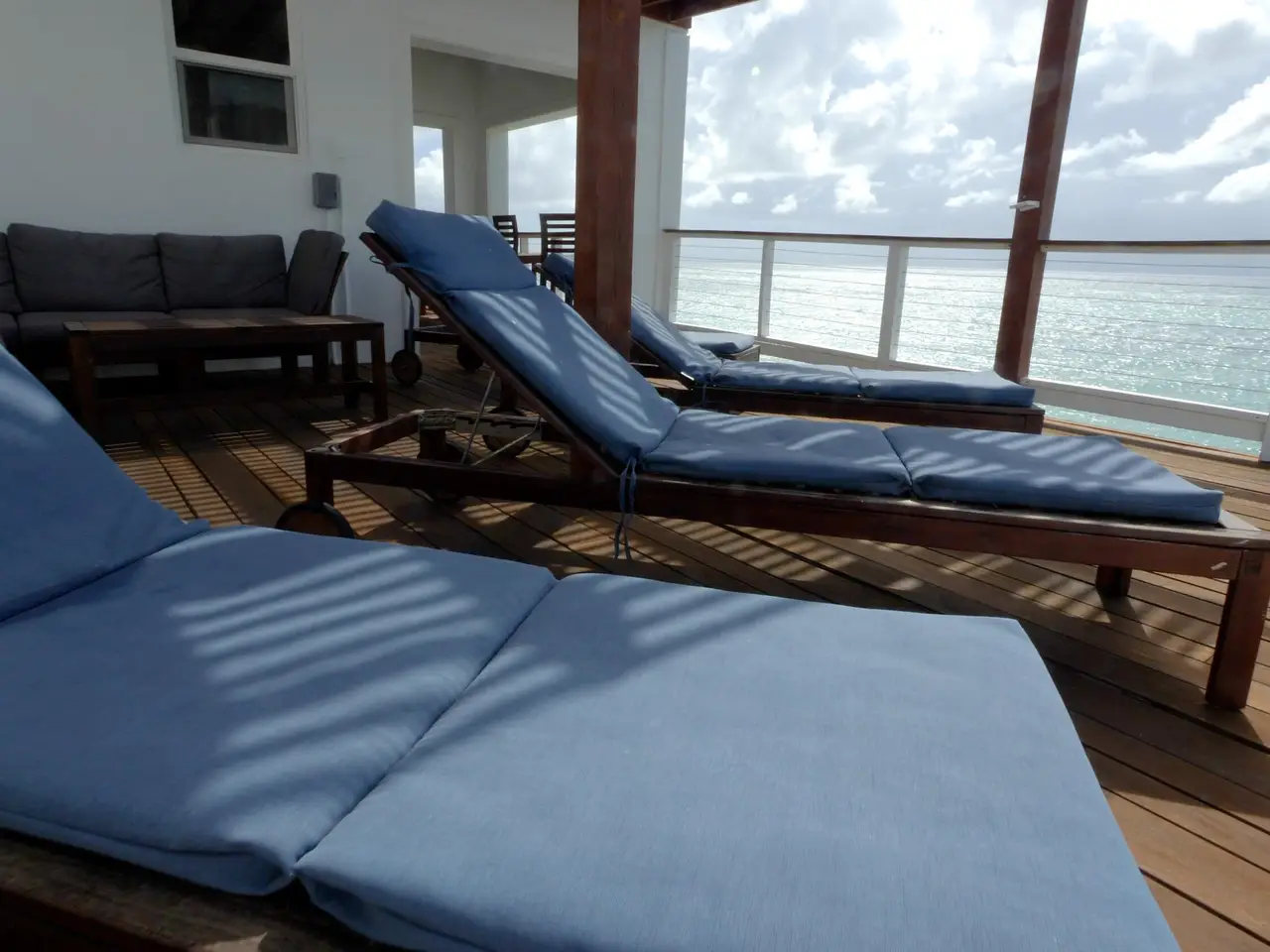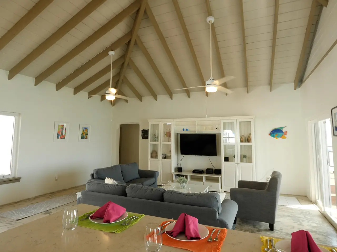 'Pelican Perch is lovelier than the photos online show...the villa is beautiful! More than that, waking up every morning to the sounds of the surf, sipping coffee out on the deck while watching the pelicans dive for fish and the sea turtles surfacing for air was PURE MAGIC!!' ...excerpt from recent guests' VRBO review... Clean lines and an elegantly simple island-style interior await you at Pelican Perch. Anchored by a breezy or air-conditioned bedroom and bath on either side of a comfortably casual open living/dining/kitchen space with soaring ceilings. Open the full wall of glass sliding doors to incorporate the breathtaking beauty of Mother Nature with the indoors...our dramatic setting ''on the rocks'' offers endless views beyond the horizon! Two-story guest cottage is a BONUS!
